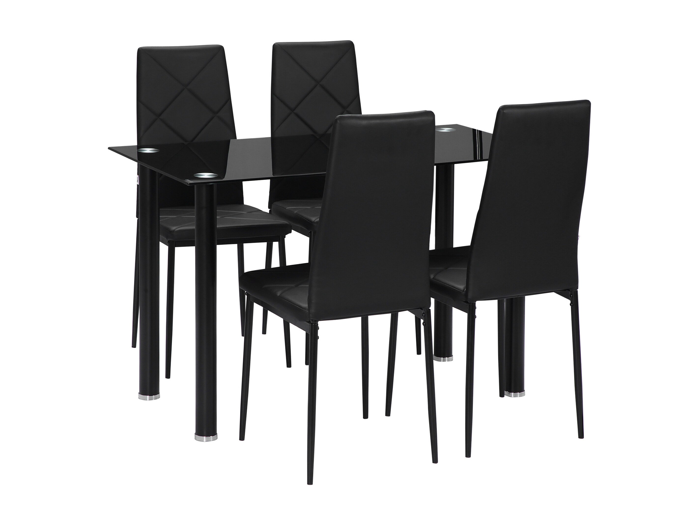 Table de salle à manger avec 4 chaises design contemporain Chesterfield acier plateau verre trempé PVC effet capitonné noir