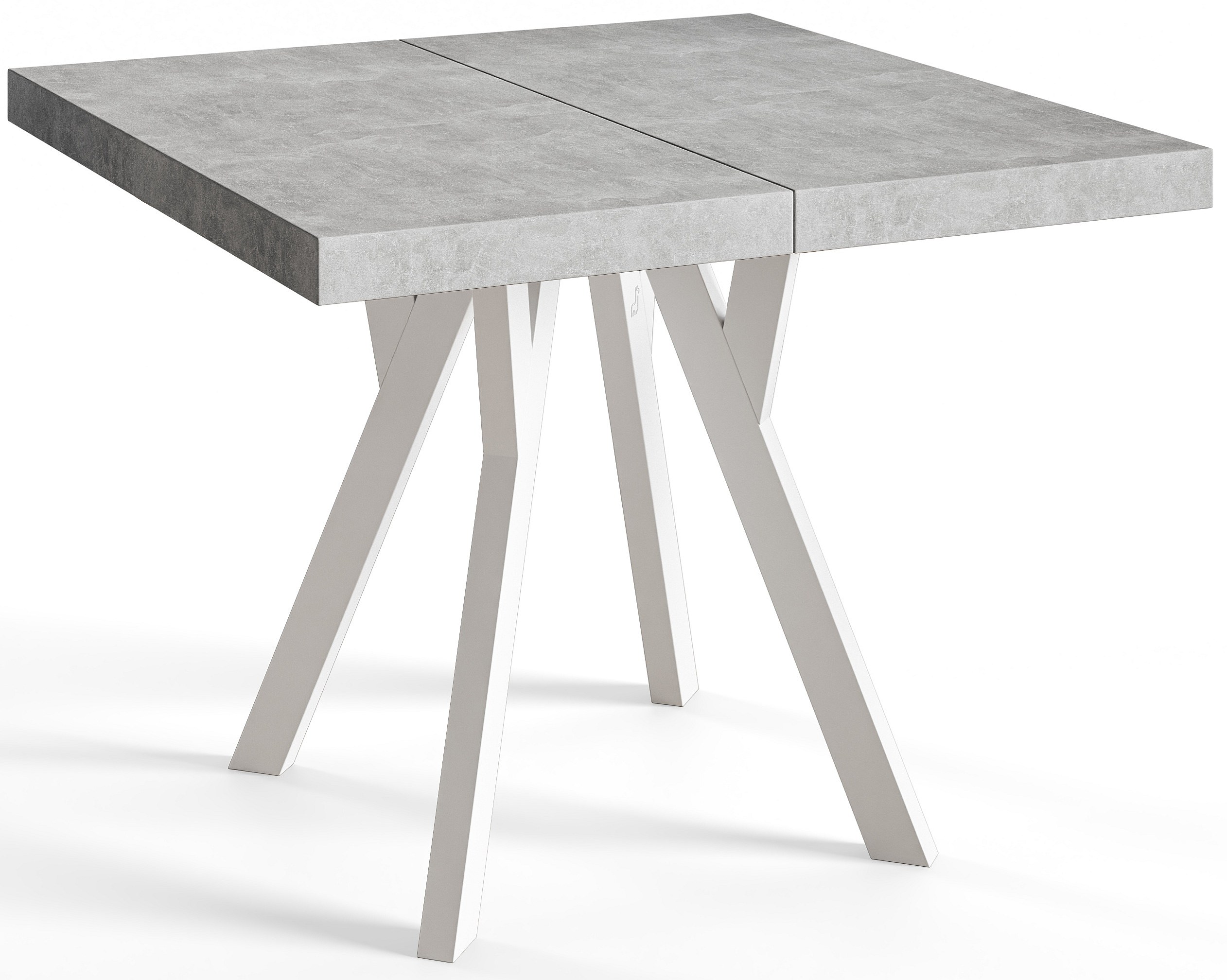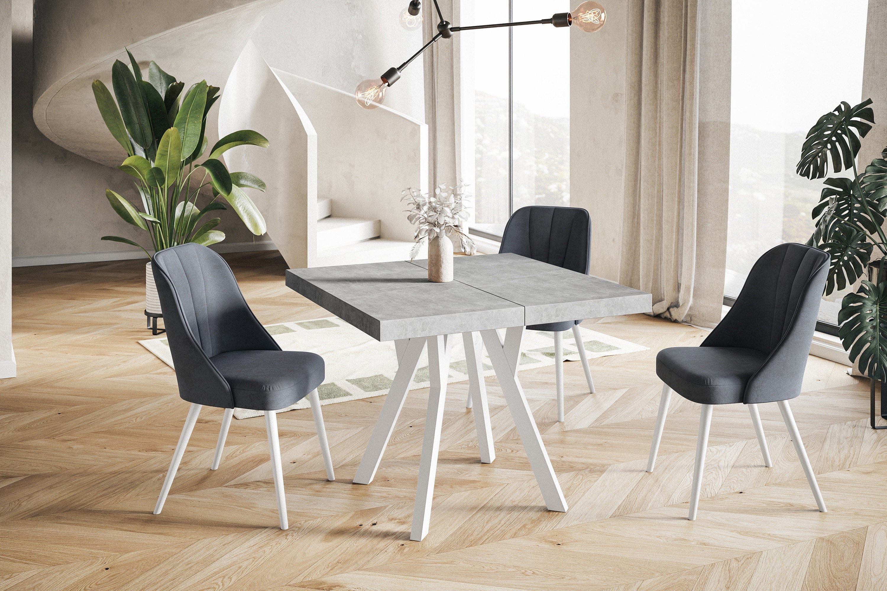 Table de salle à manger carrée RICO, table à rallonges, dimensions: 90-190X90X77 cm, couleur: graphite, avec pieds en bois de couleur blanche