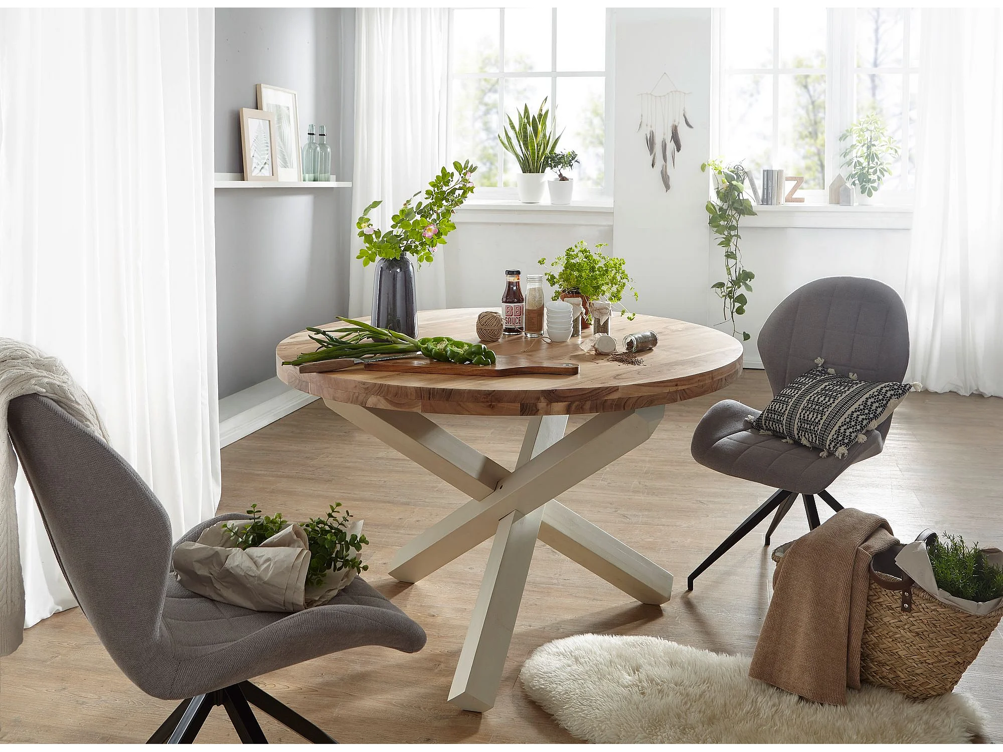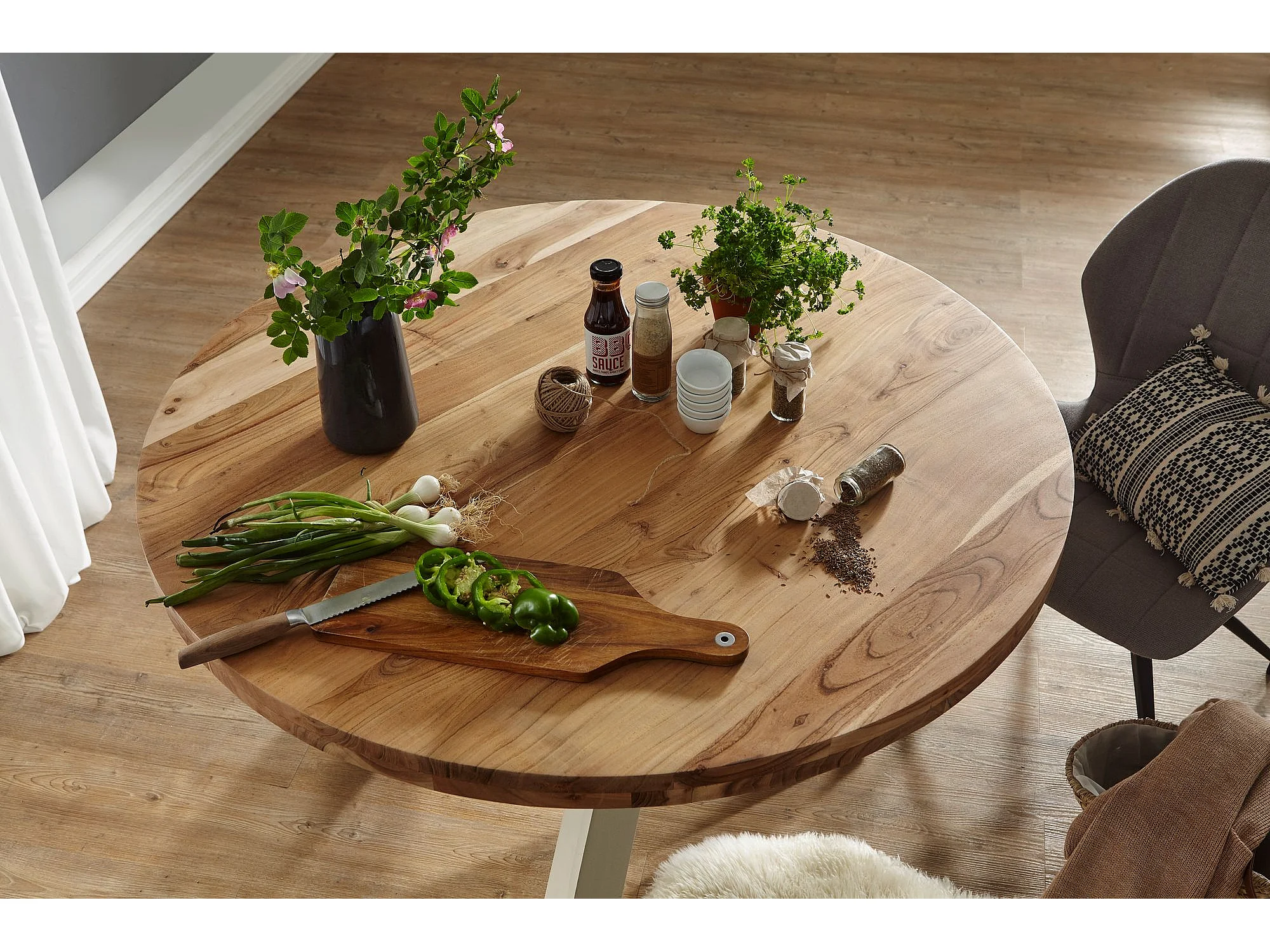 Table de Salle à Manger Cuisine 120 cm Bois Massif Petite Ronde Moderne