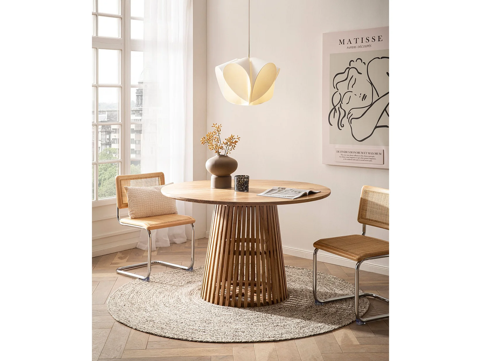 Table de Salle à Manger Cuisine 120 cm Bois Massif Petite Ronde Moderne