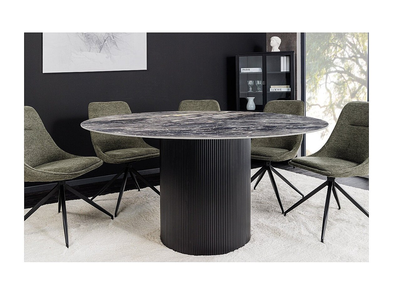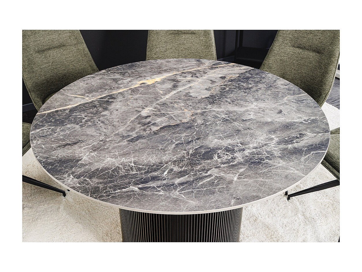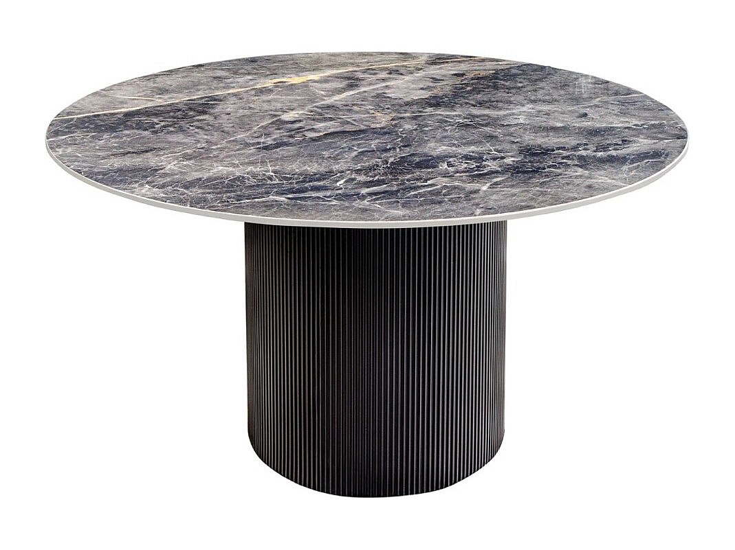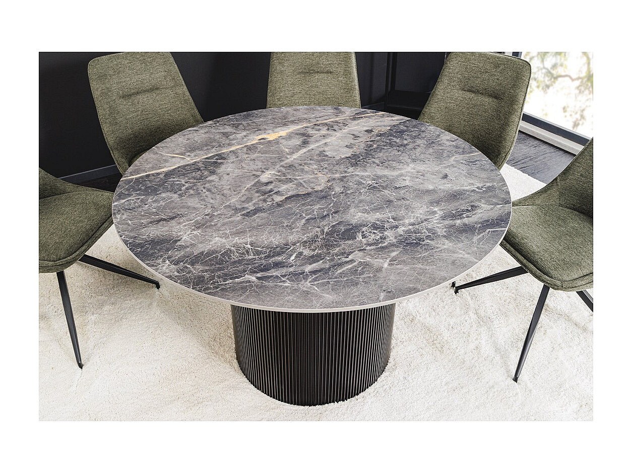 Table de salle à manger LUMEA – Ronde 120 cm – Effet marbre gris foncé – Pied central large – Style contemporain