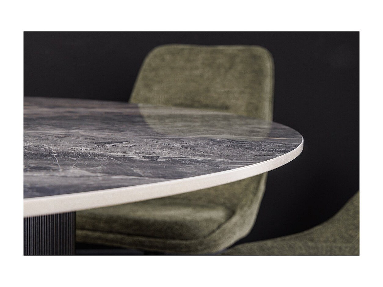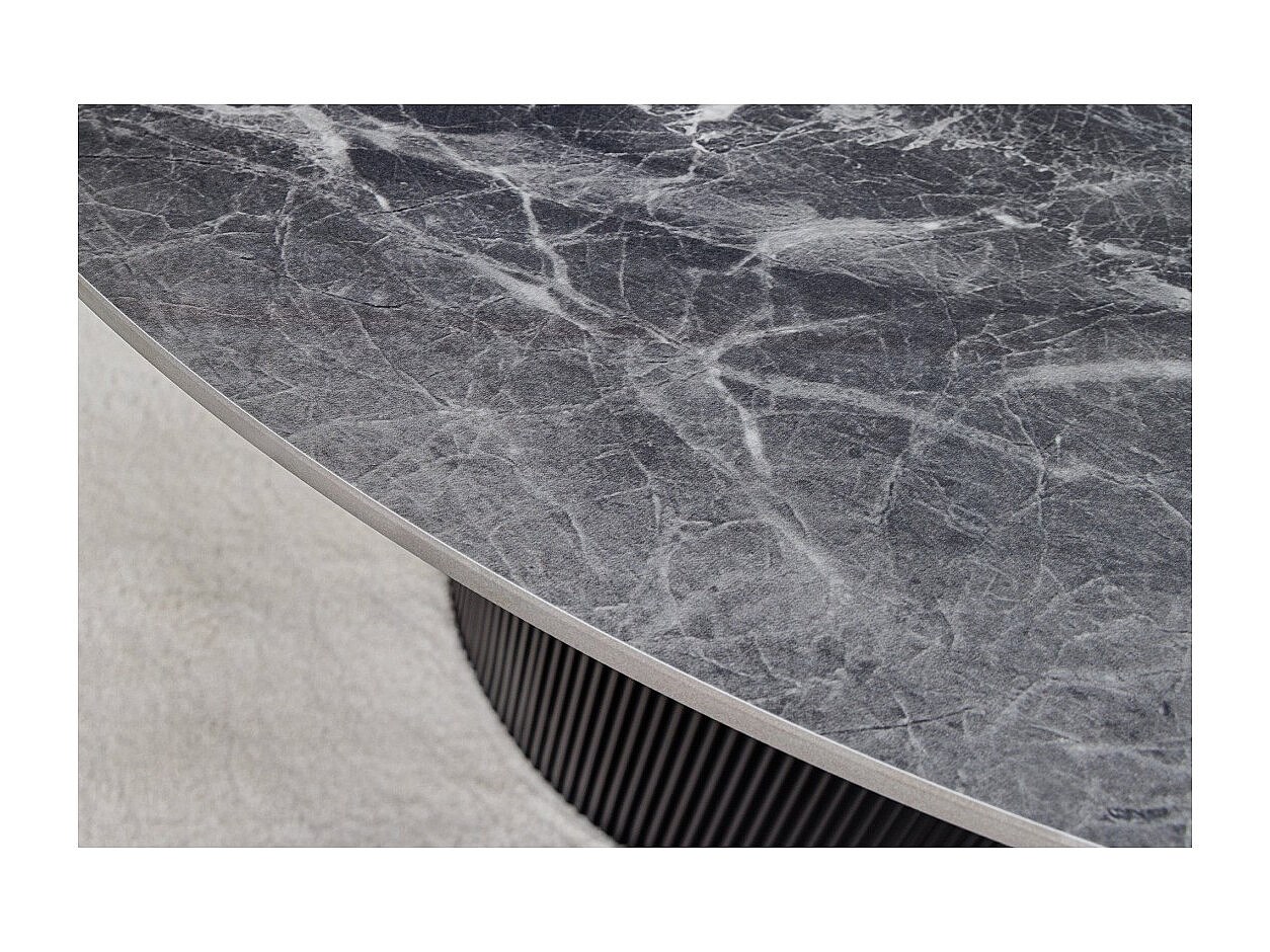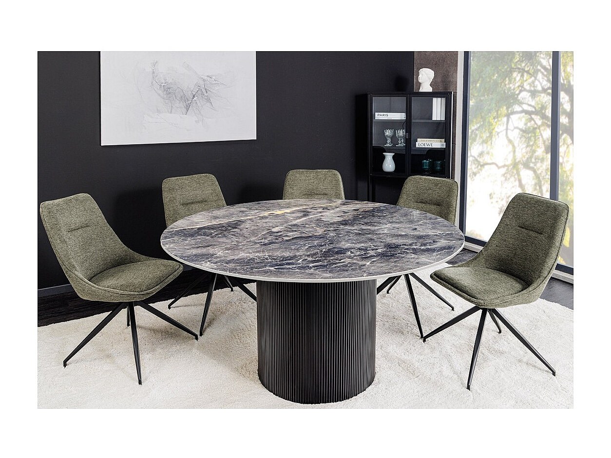 Table de salle à manger LUMEA – Ronde 120 cm – Effet marbre gris foncé – Pied central large – Style contemporain