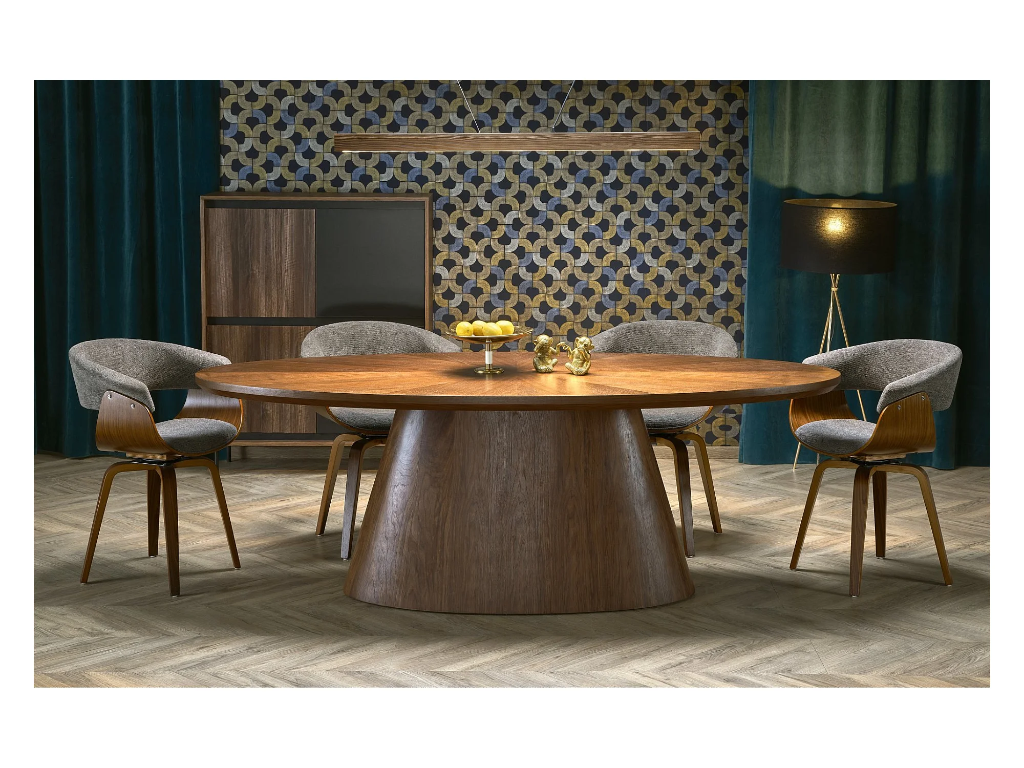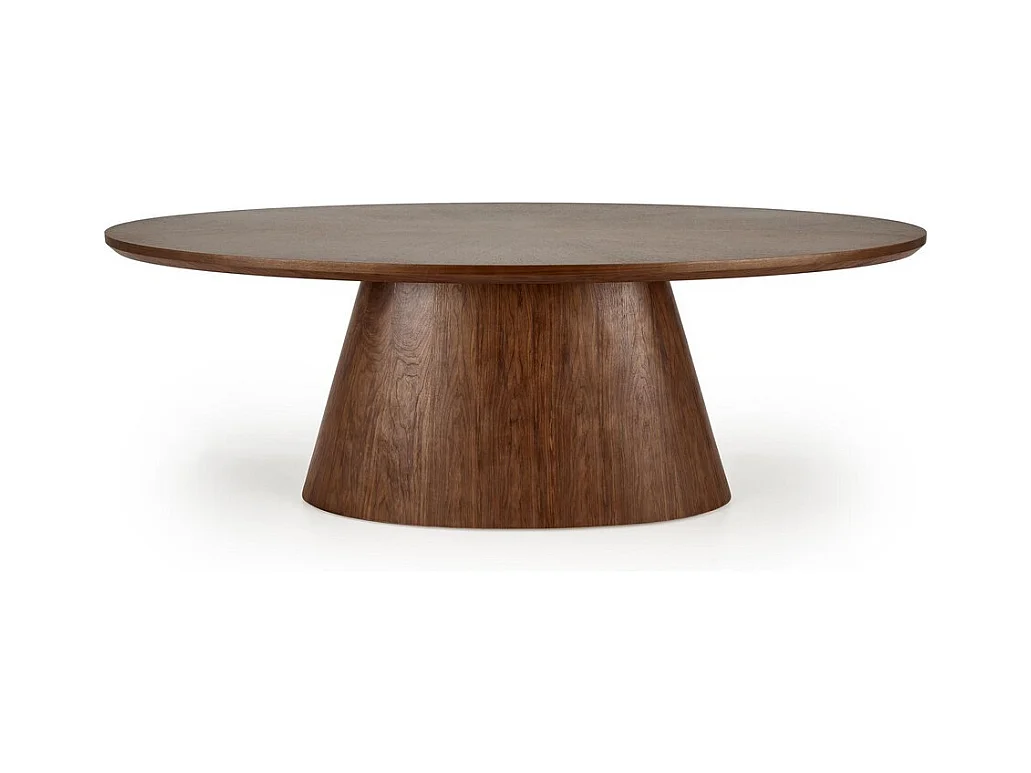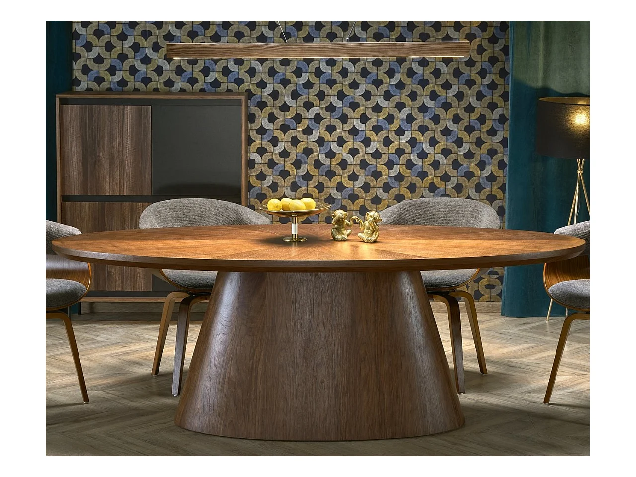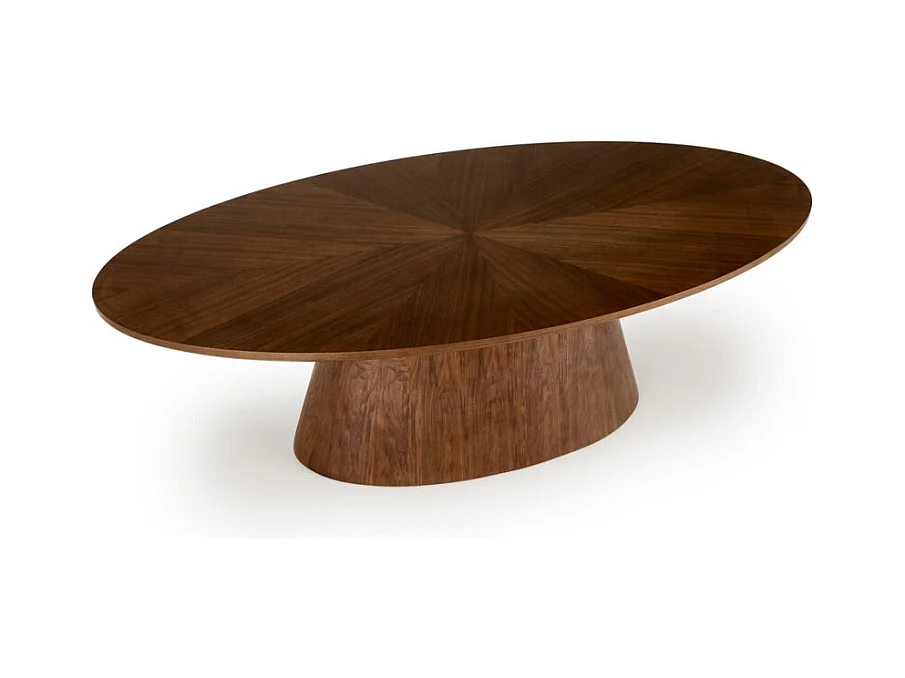 Table de salle à manger ovale plaqué noyer avec pied central Moonrise