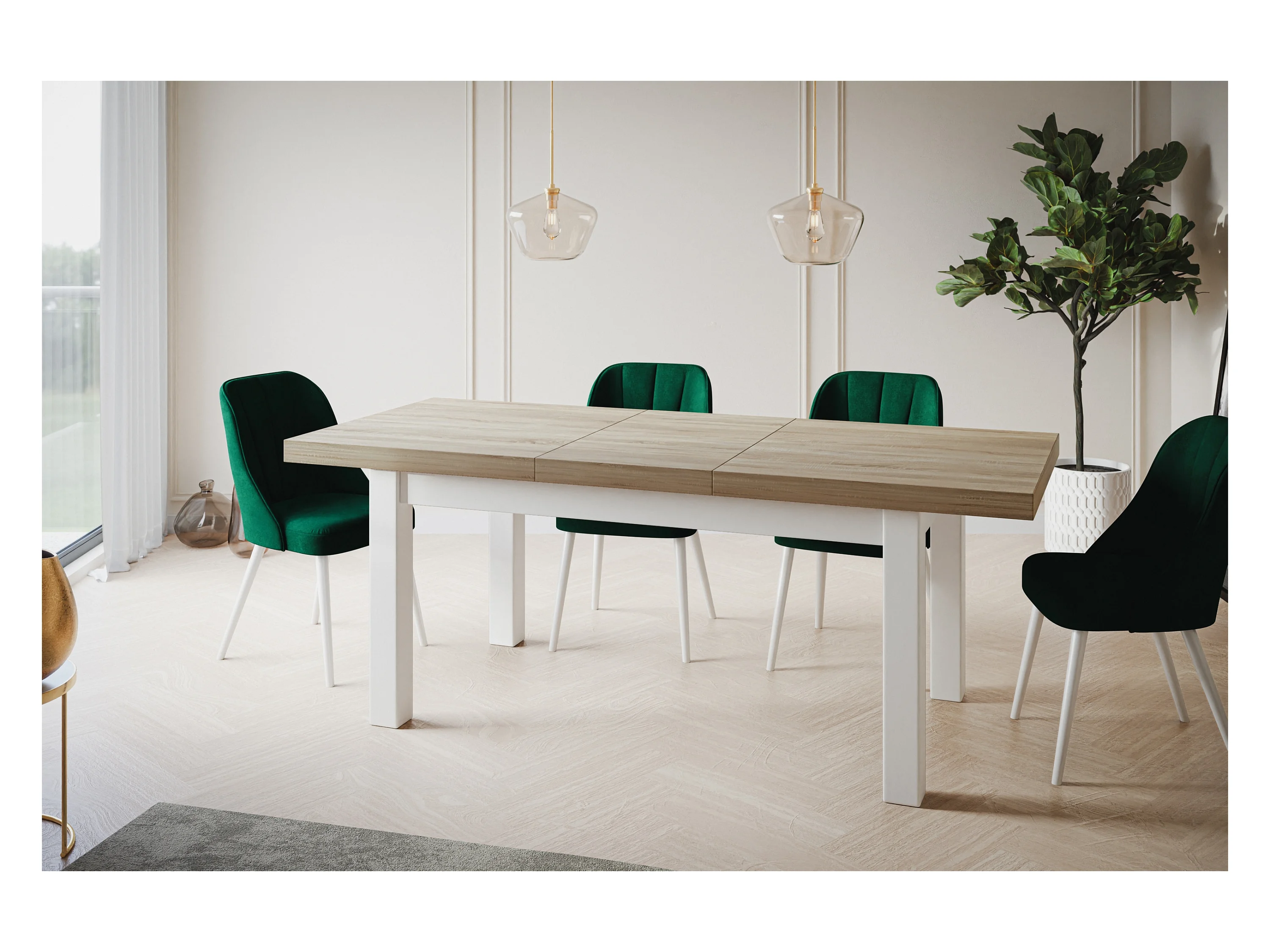 Table de salle à manger rectangulaire CLASSIC, table extensible, dimensions : 120-160X80X78 cm, couleur : SONOMA, avec pieds en bois de couleur blanche