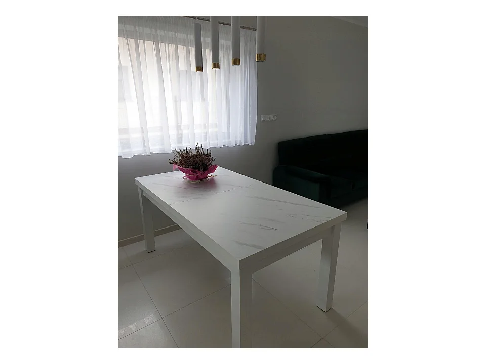 Table de salle à manger rectangulaire CLASSIC, table extensible, dimensions : 200-300X100X78 cm, couleur : MARMUR, avec pieds en bois de couleur blanche