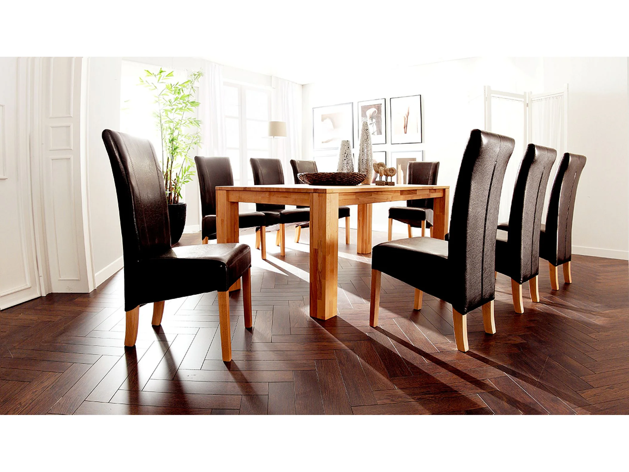 Table de salle à manger rectangulaire extensible en bois hêtre massif huilé coloris naturel - longueur 200-300 x hauteur 77 x profondeur 100 cm