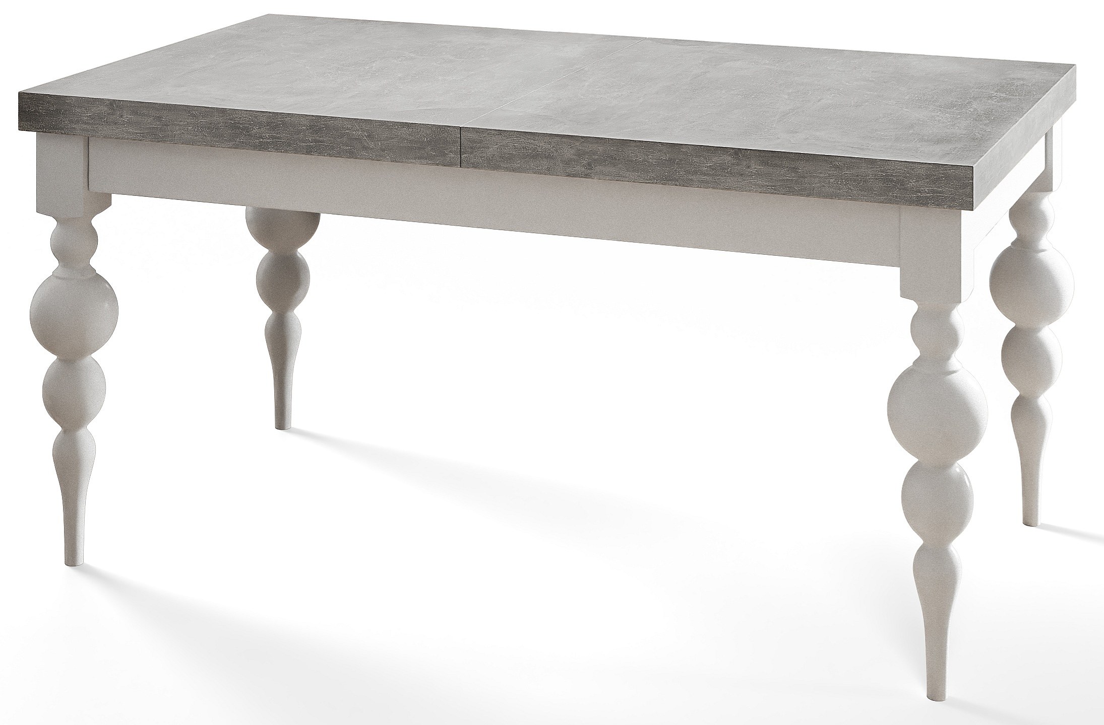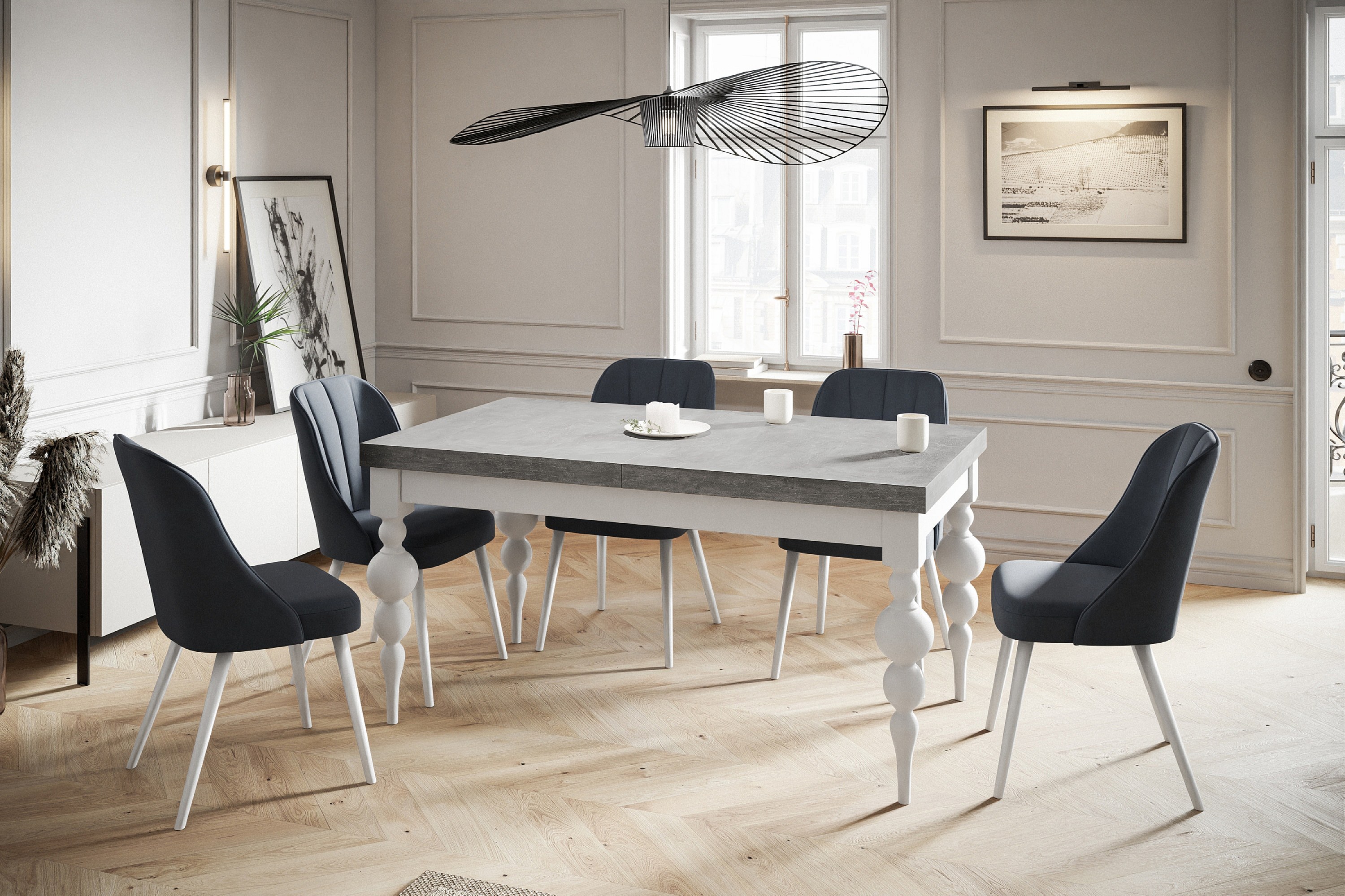 Table de salle à manger rectangulaire LENA, table à rallonges, dimensions: 200-300X100X78,5 cm, couleur: gris, avec pieds de table de couleur blanche