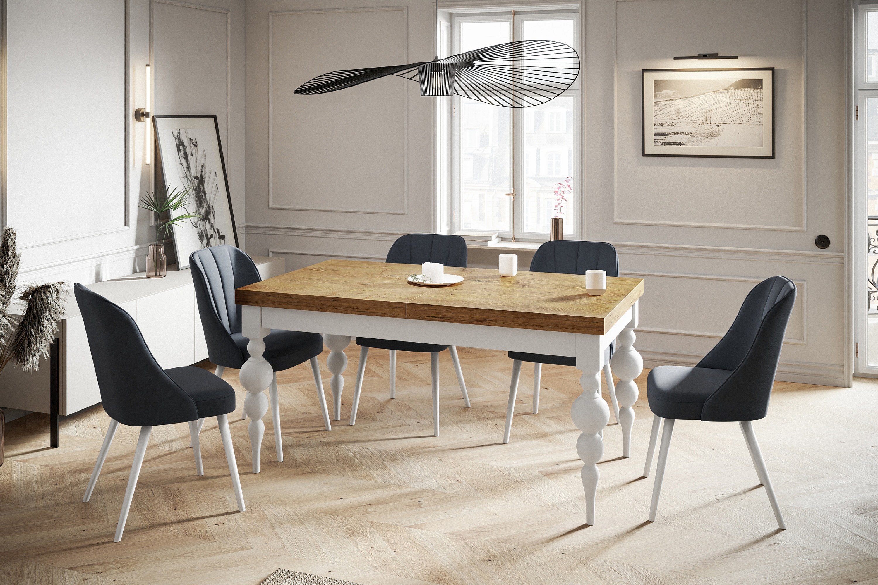 Table de salle à manger rectangulaire LENA, table à rallonges, dimensions: 200-300X100X78,5 cm, couleur: LANCELOT, avec pieds de table de couleur blanche