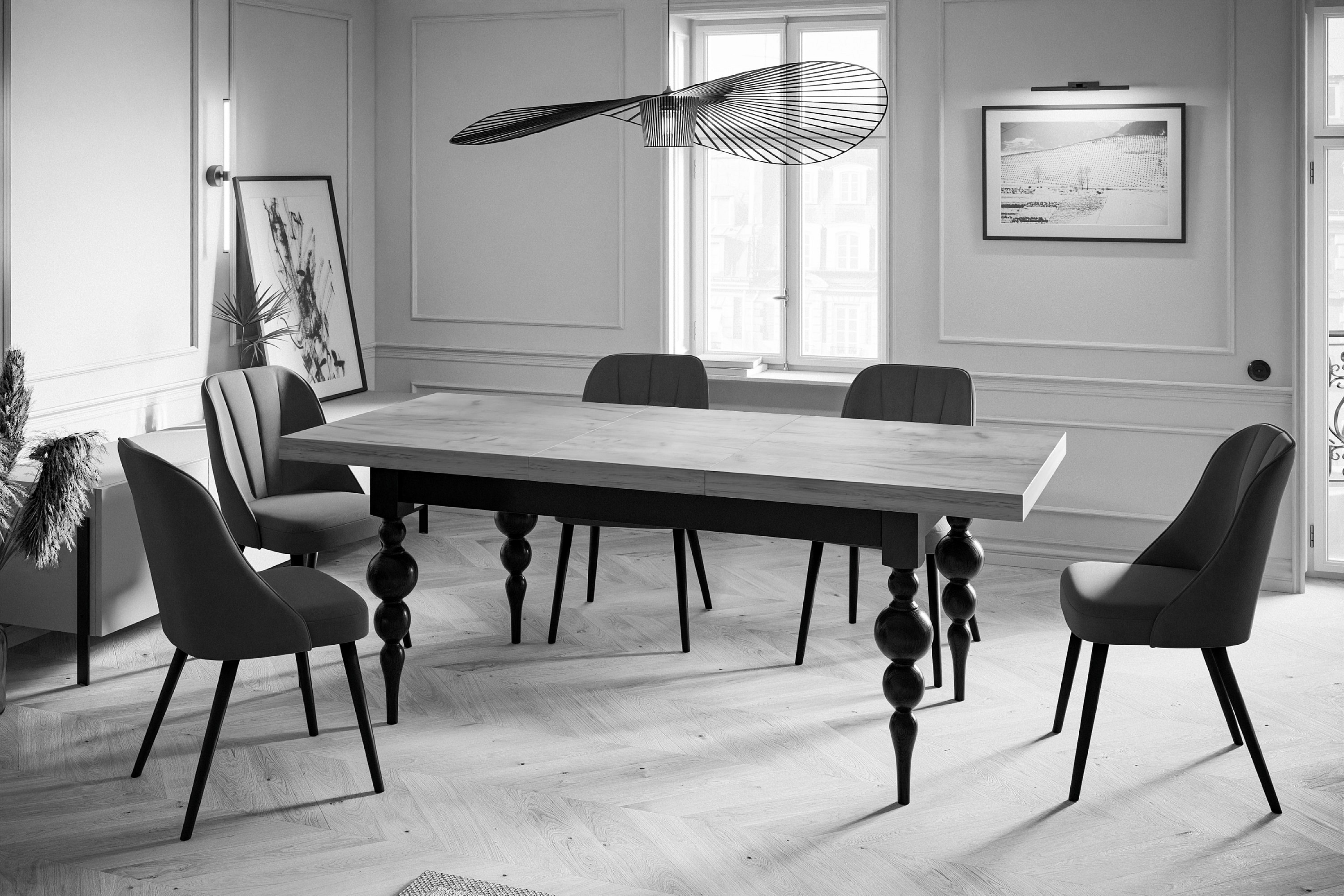 Table de salle à manger rectangulaire LENA, table à rallonges, dimensions: 200-300X100X78,5 cm, couleur: LEFKAS, avec pieds de table de couleur blanche