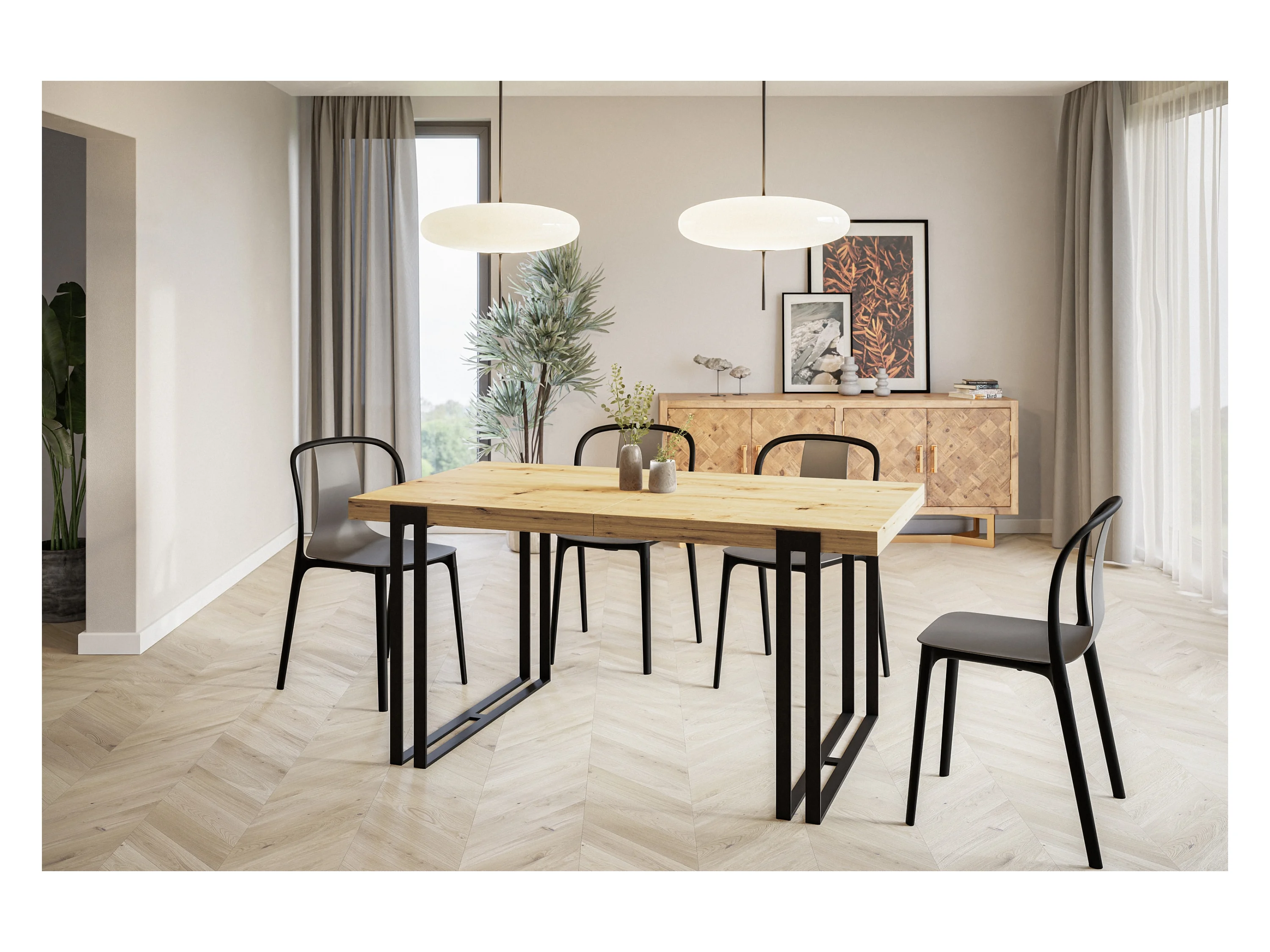 Table de salle à manger rectangulaire ROSA, table à rallonges, dimensions: 120-220X80X77 cm,couleur: ARTISAN, avec pieds métalliques couleur noir