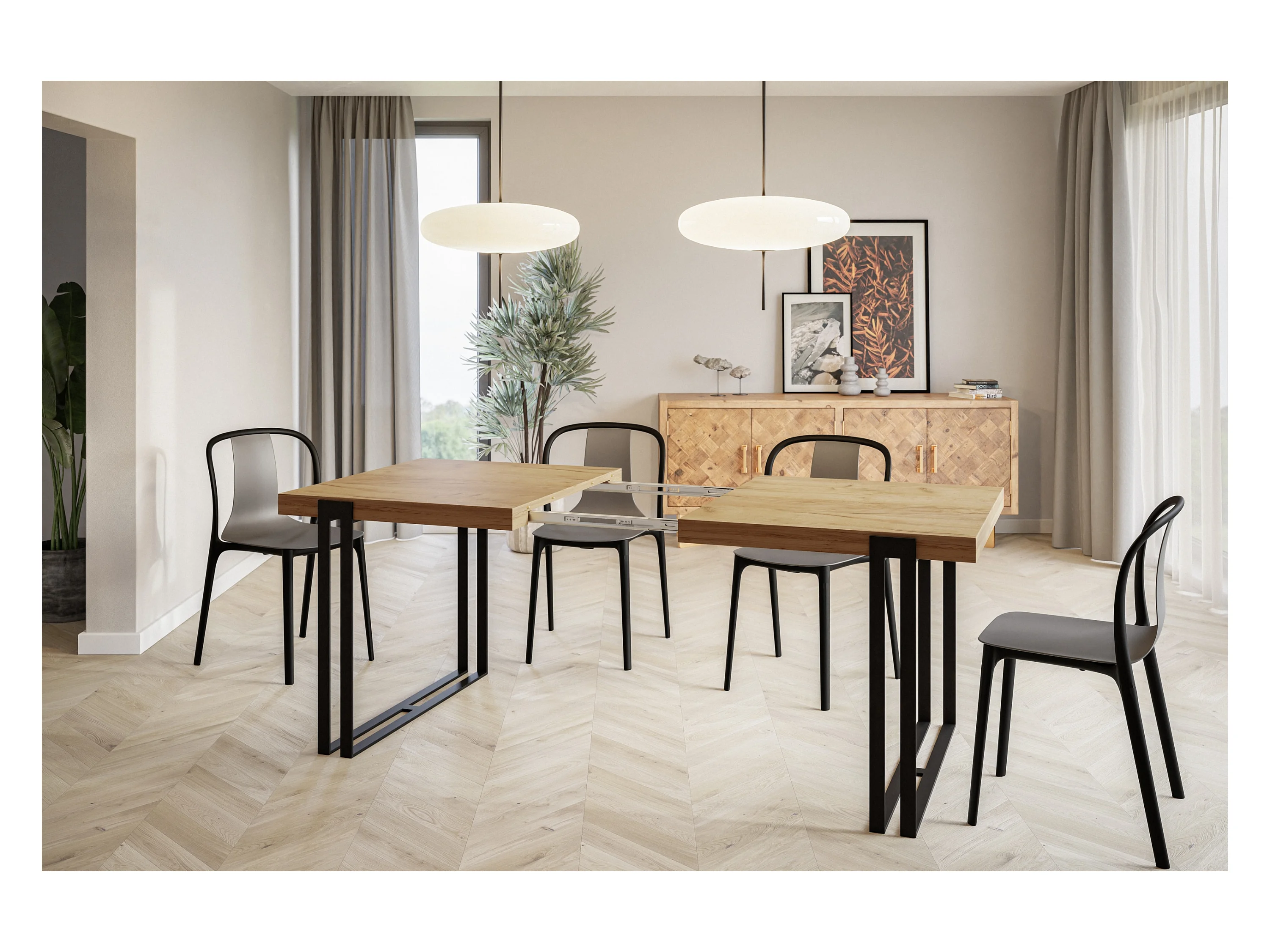 Table de salle à manger rectangulaire ROSA, table à rallonges, dimensions: 120-220X80X77 cm,couleur: CRAFT, avec pieds métalliques de couleur noire
