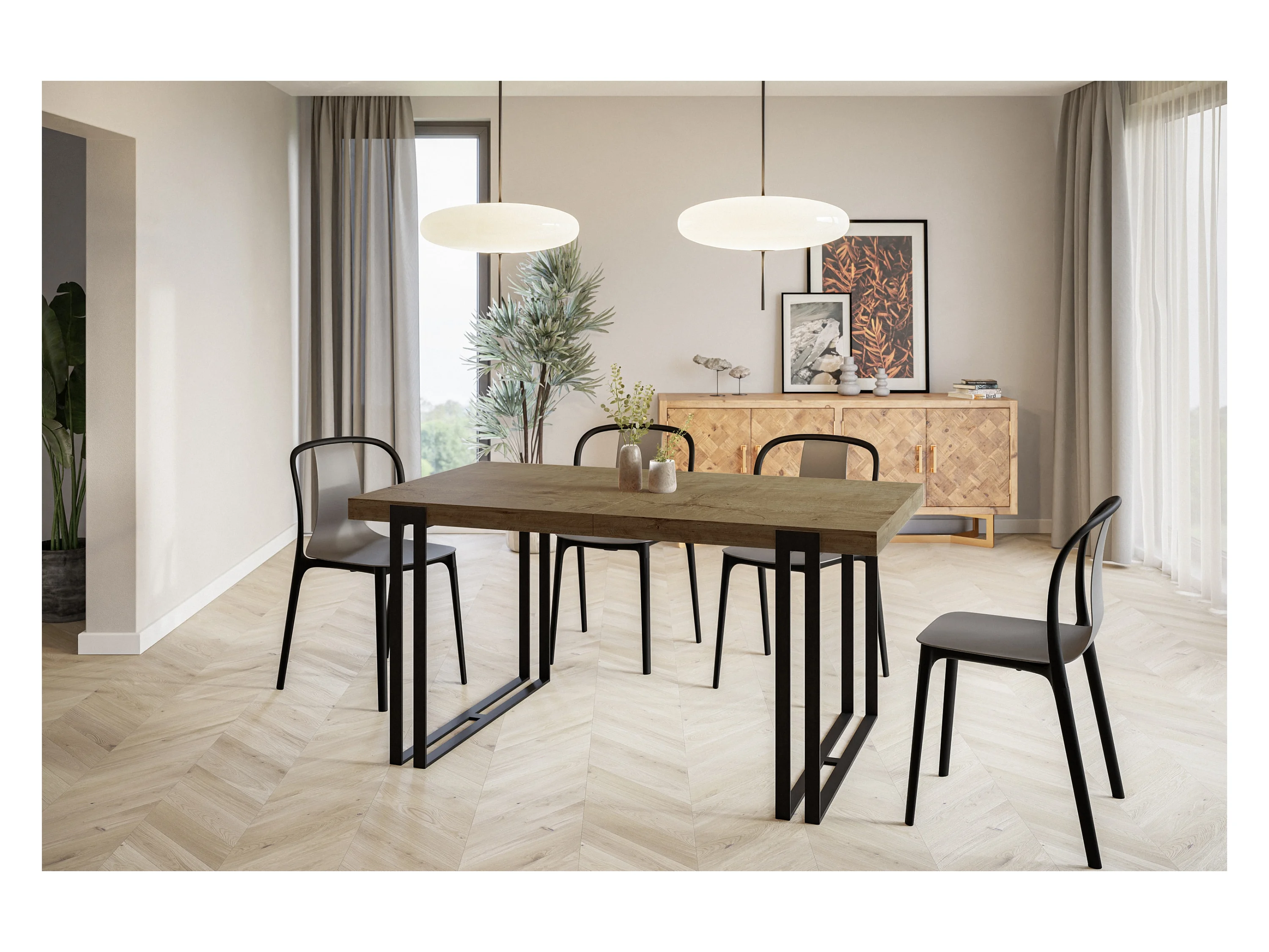 Table de salle à manger rectangulaire ROSA, table à rallonges, dimensions: 120-220X80X77 cm,couleur: LEFKAS, avec pieds métalliques de couleur noire