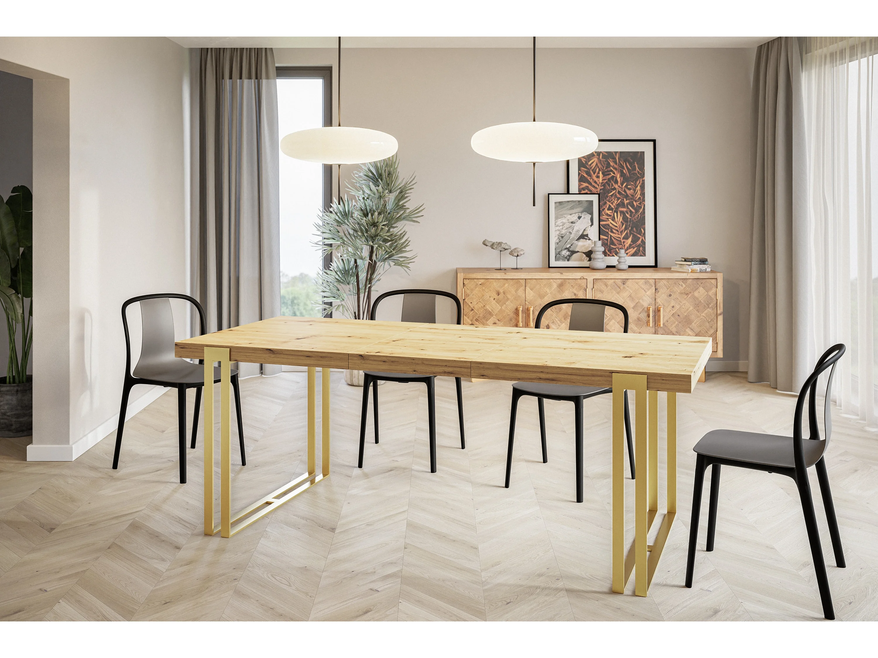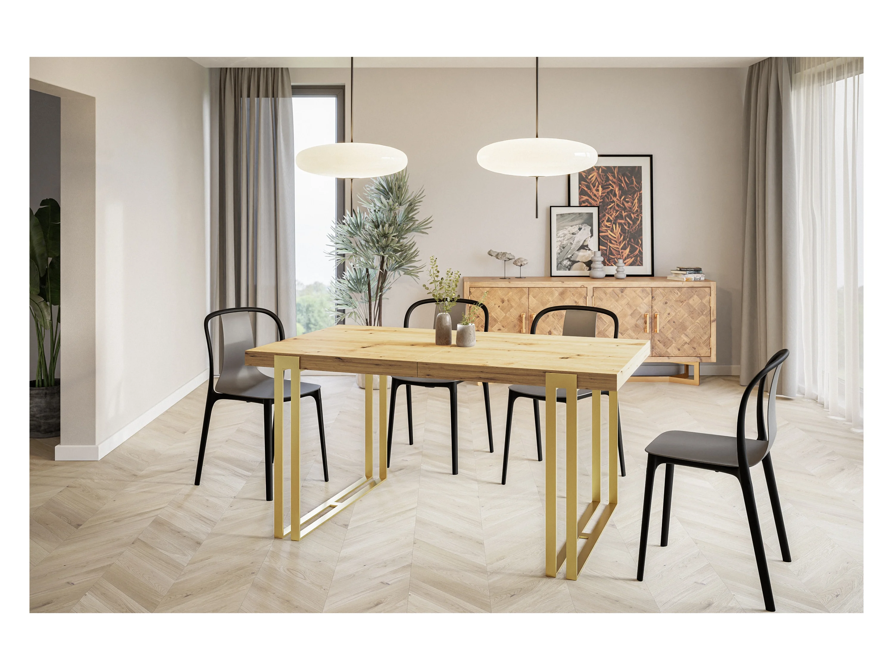 Table de salle à manger rectangulaire ROSA, table à rallonges, dimensions: 140-240X80X77 cm,couleur: ARTISAN, avec pieds métalliques couleur or