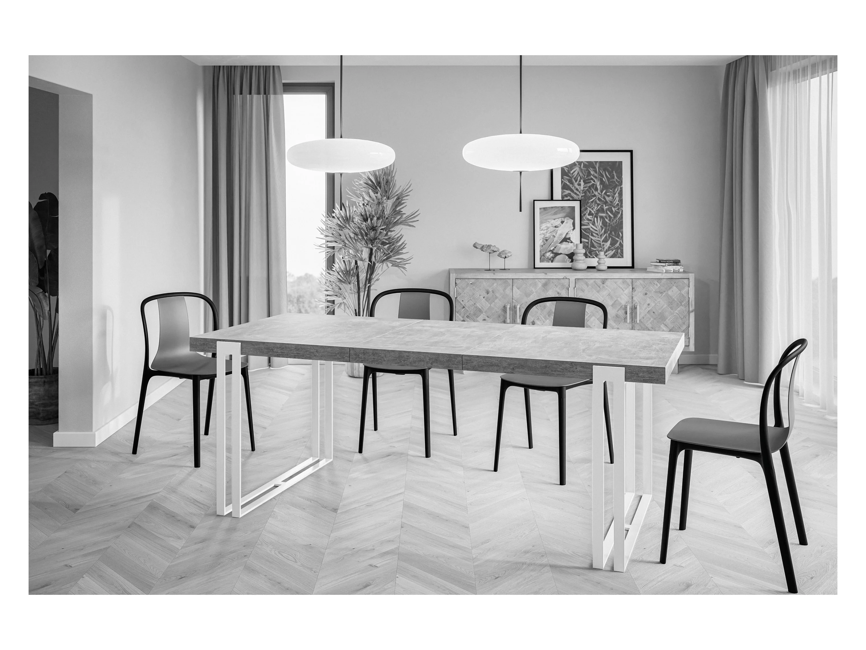 Table de salle à manger rectangulaire ROSA, table à rallonges, dimensions: 140-240X80X77 cm,couleur: gris foncé, avec pieds métalliques de couleur blanche