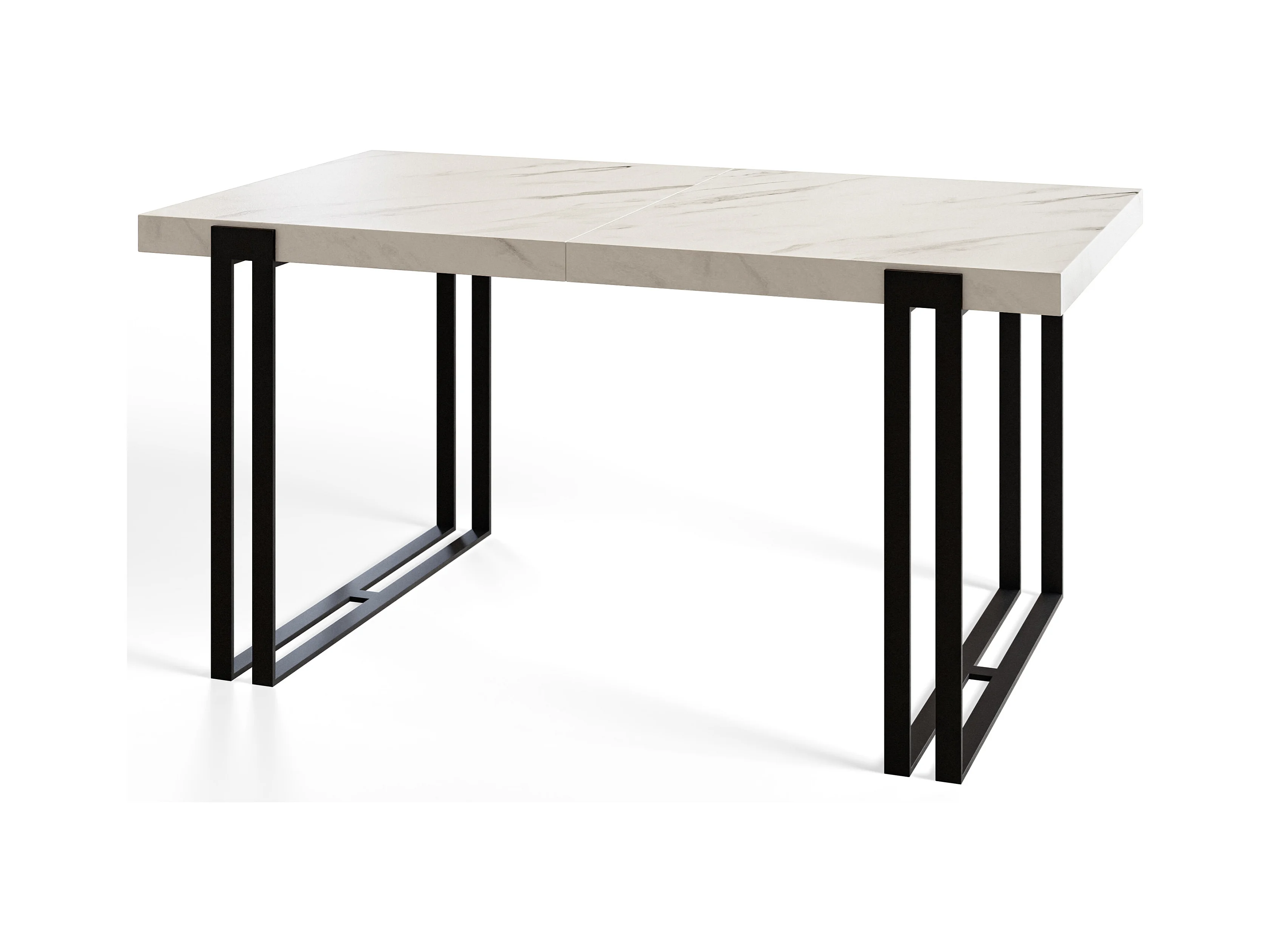 Table de salle à manger rectangulaire ROSA, table à rallonges, dimensions: 140-240X80X77 cm,couleur: MARMUR, avec pieds métalliques de couleur noire
