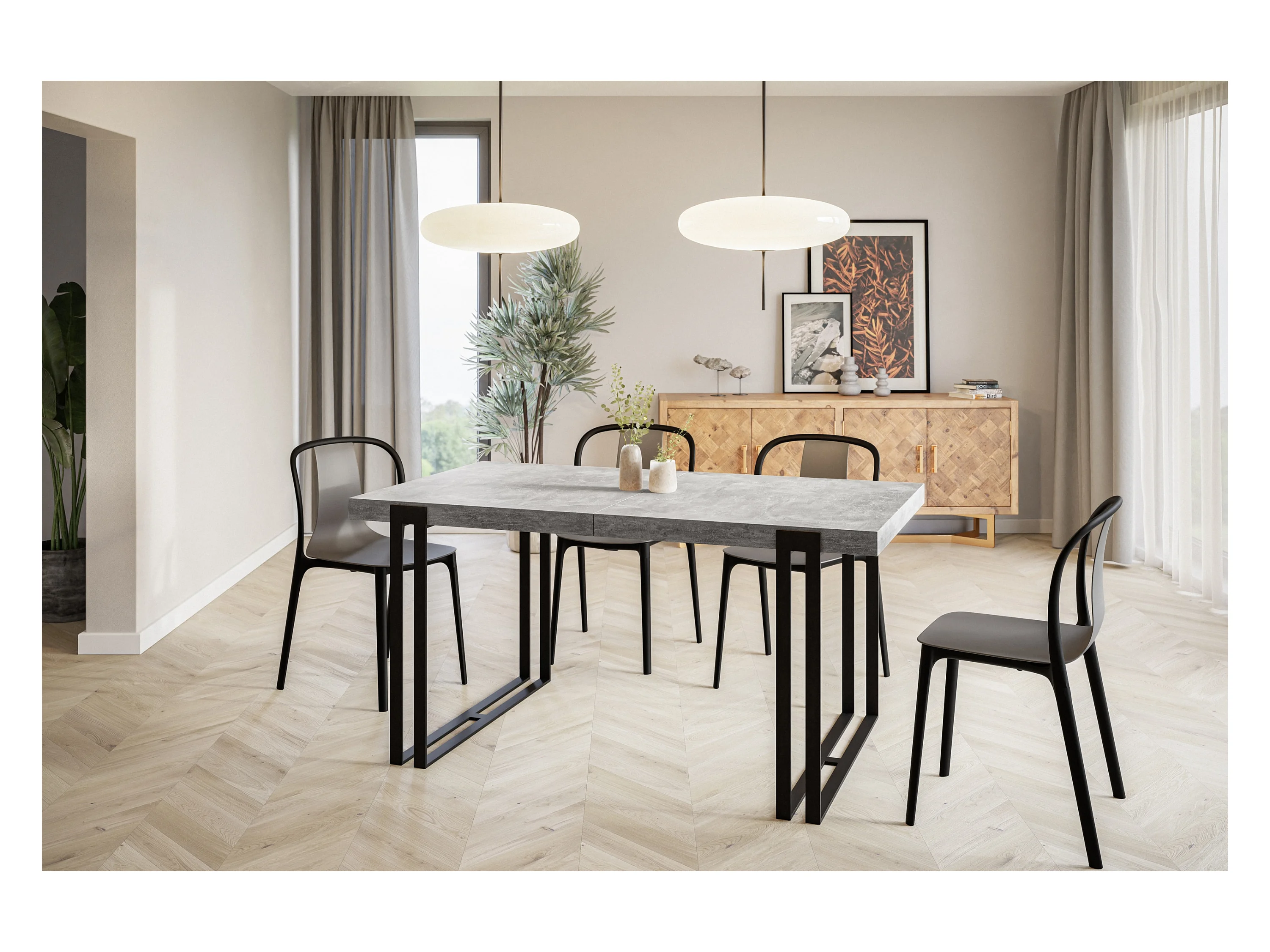 Table de salle à manger rectangulaire ROSA, table à rallonges, dimensions: 160-260X90X77 cm, couleur: gris clair, avec pieds métalliques de couleur noire