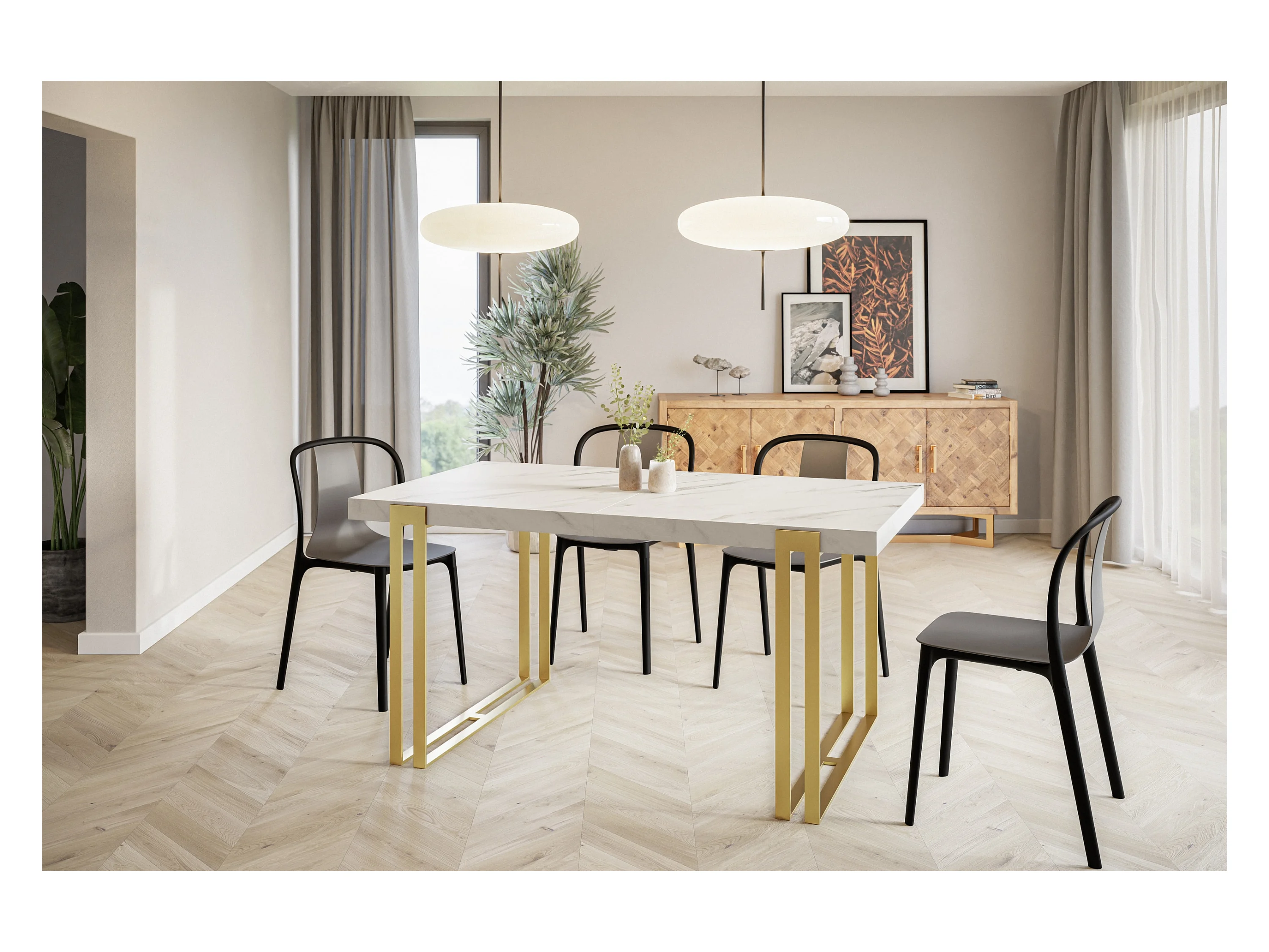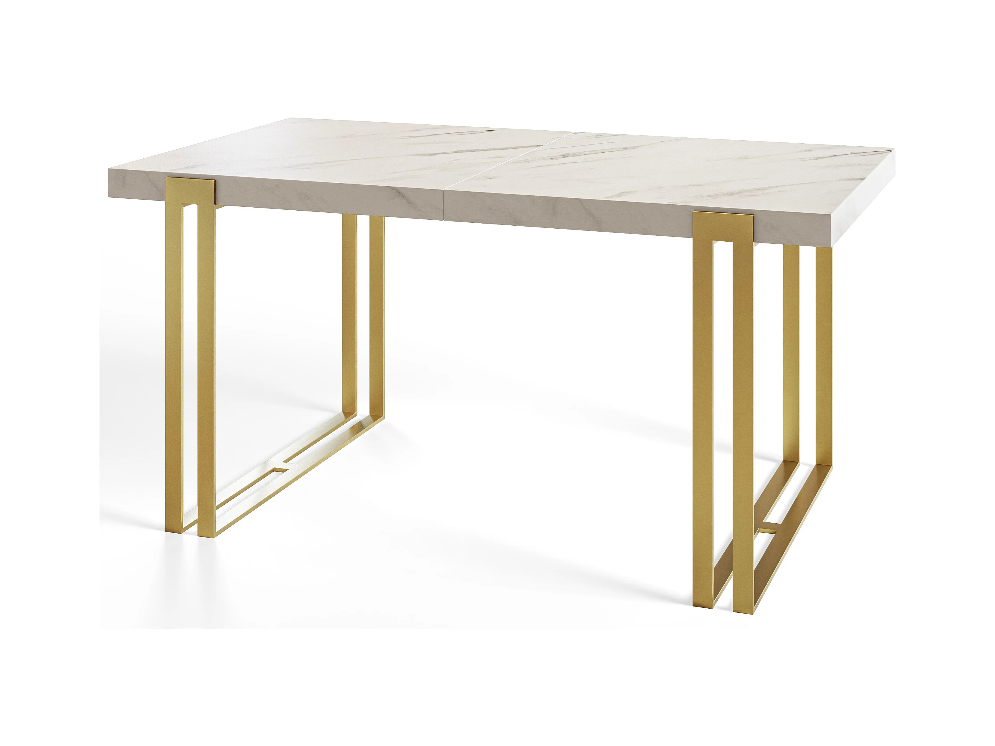 Table de salle à manger rectangulaire ROSA, table à rallonges, dimensions: 160-260X90X77 cm,couleur: MARBRE, avec pieds métalliques couleur or