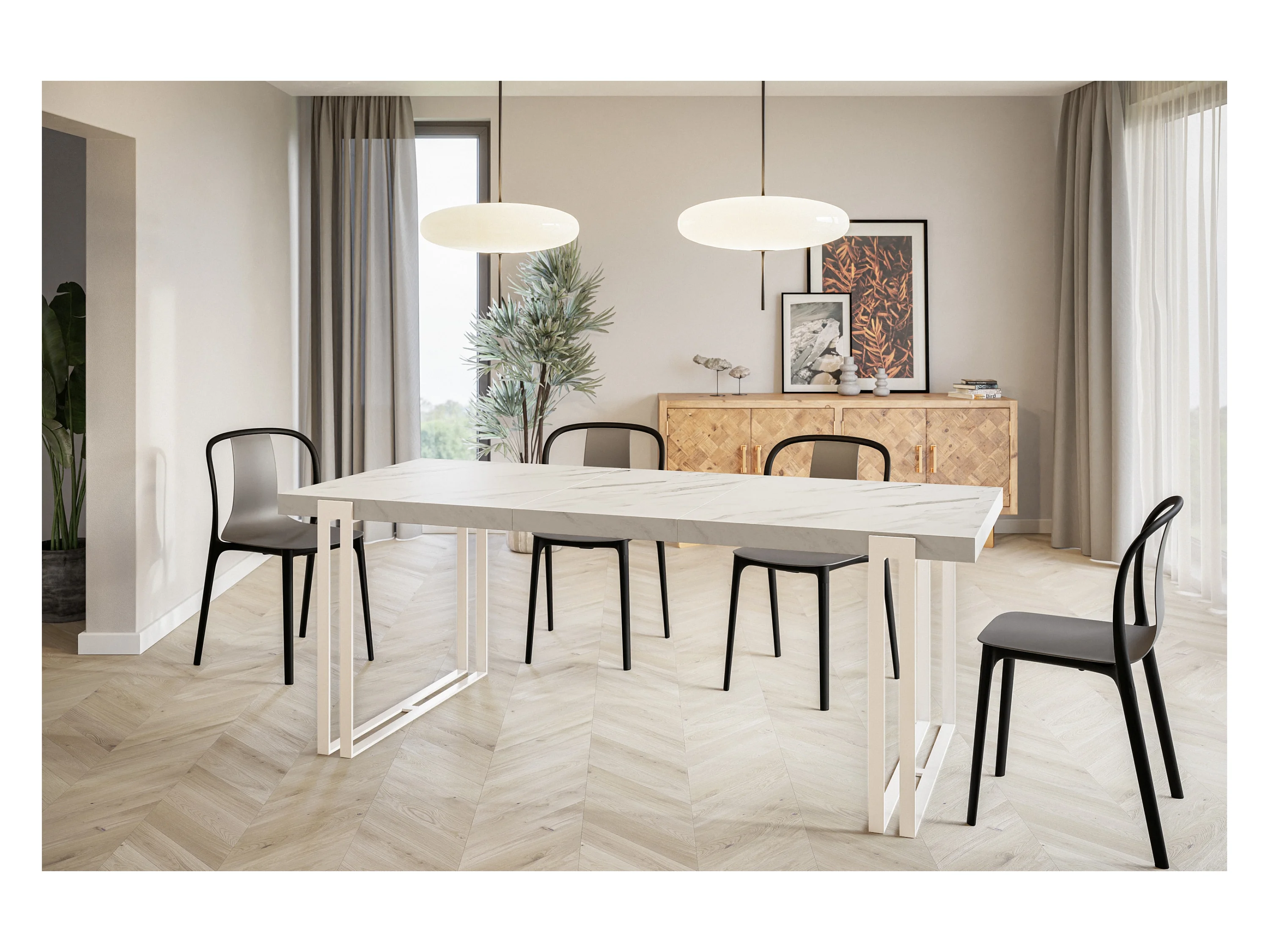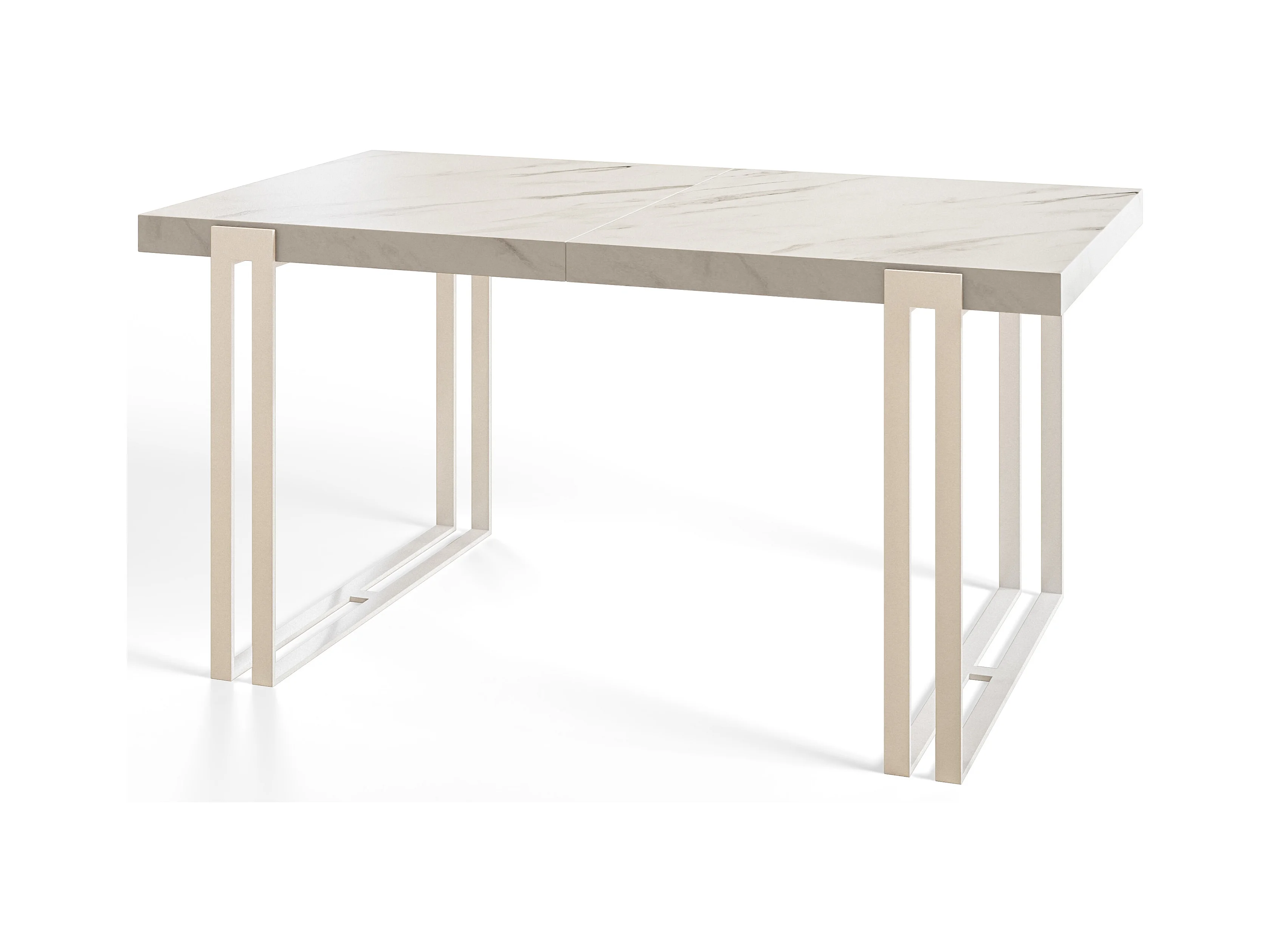 Table de salle à manger rectangulaire ROSA, table à rallonges, dimensions: 160-260X90X77 cm,couleur: MARBRE, avec pieds métalliques de couleur blanche