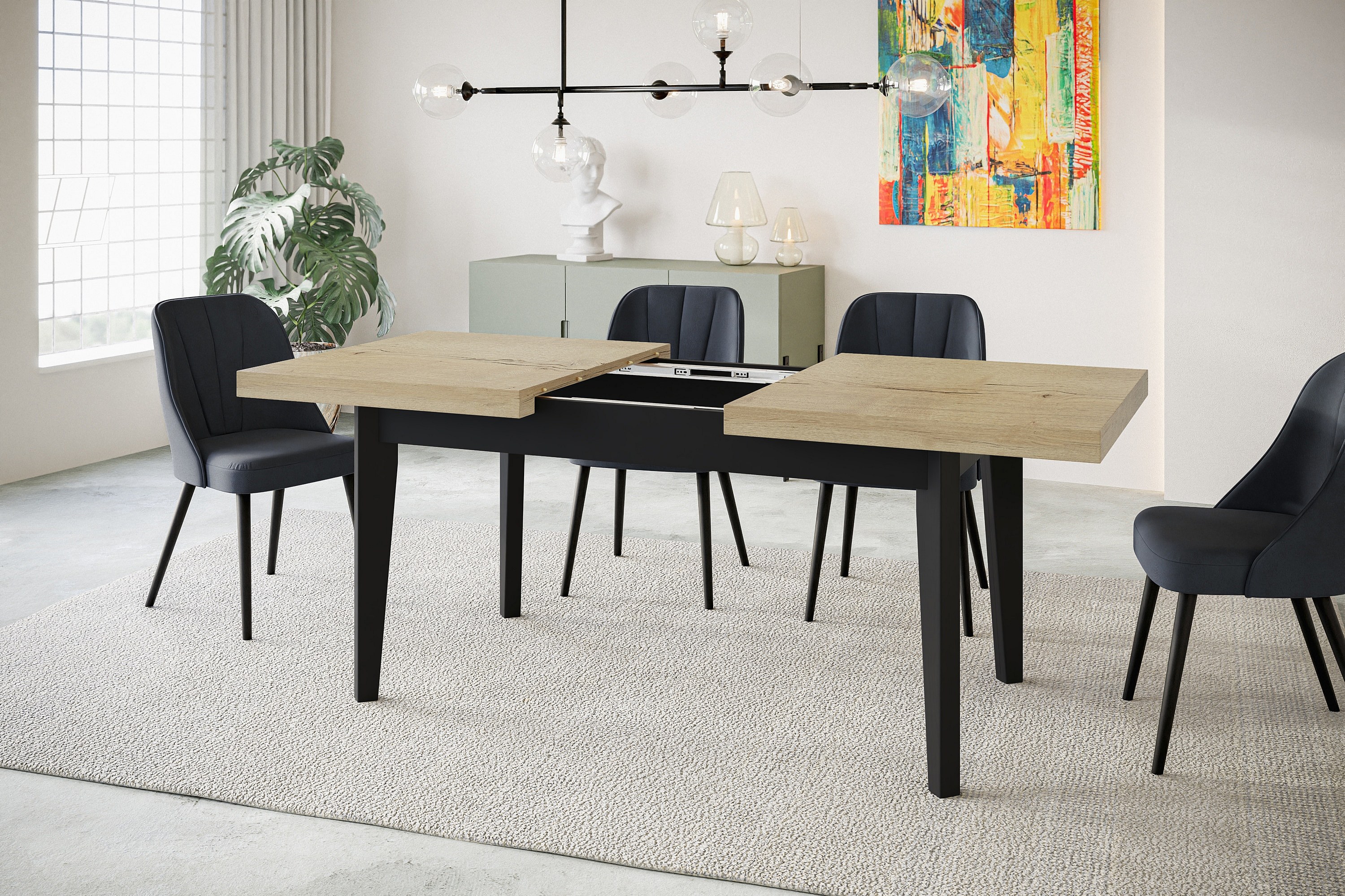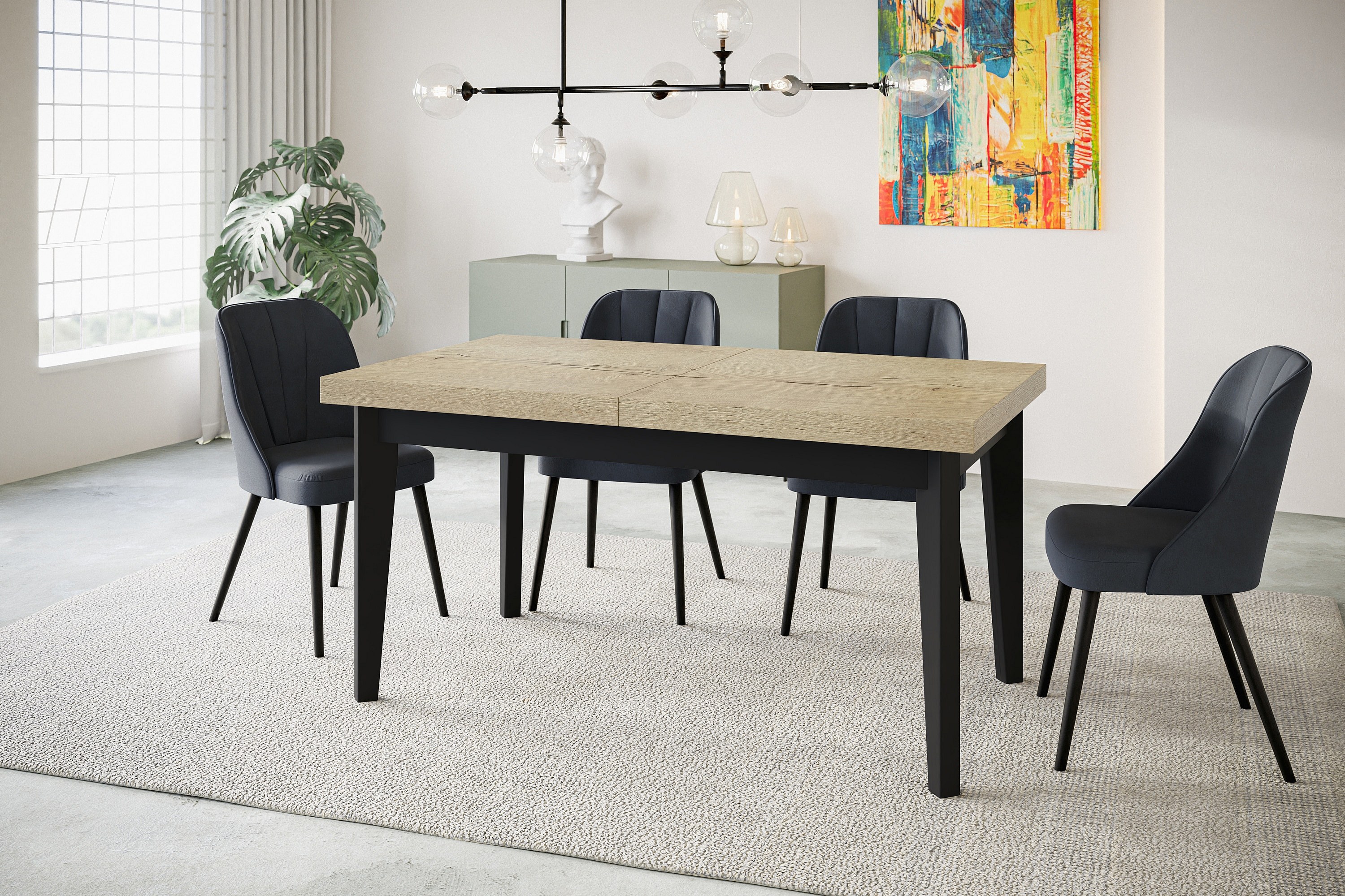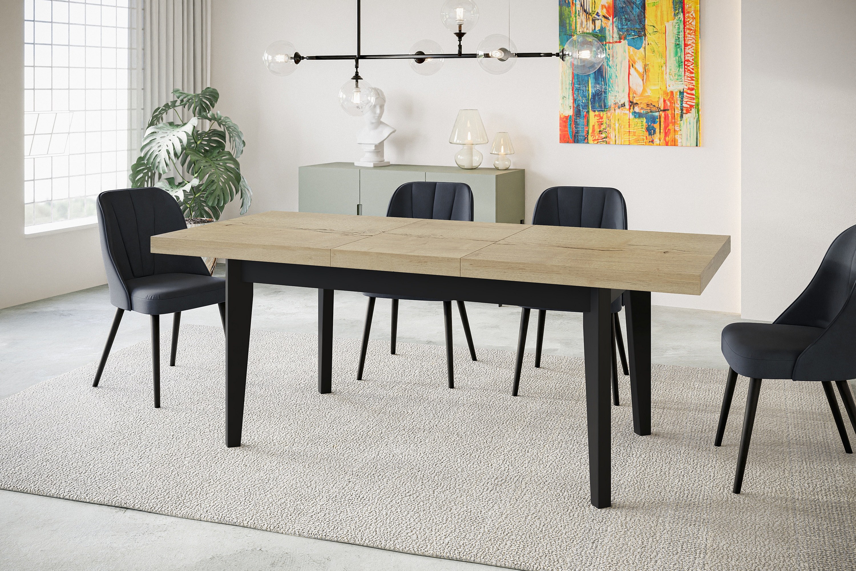 Table de salle à manger rectangulaire SKANDI, table à rallonges, dimensions: 140-180X80X78 cm, couleur: HALIFAX, avec pieds en bois de couleur noire
