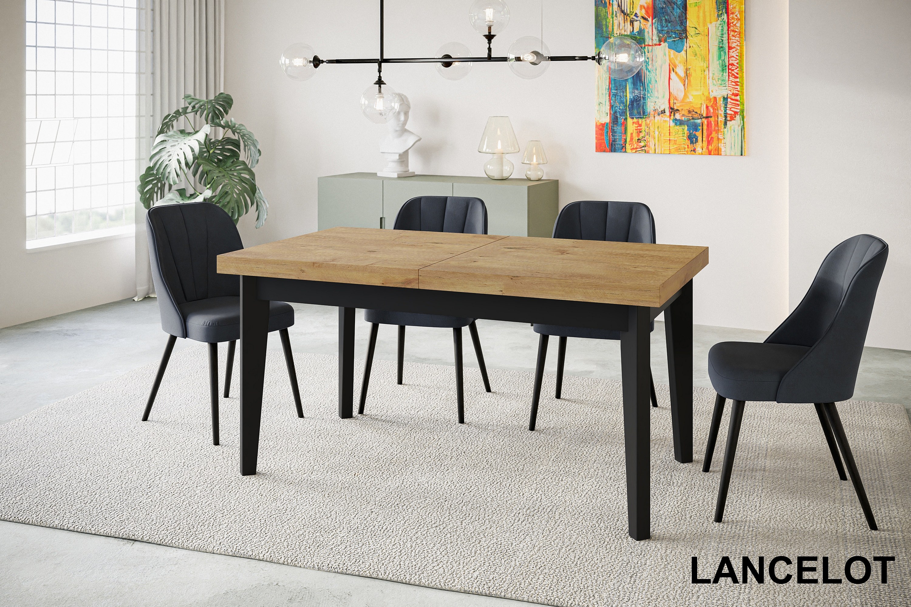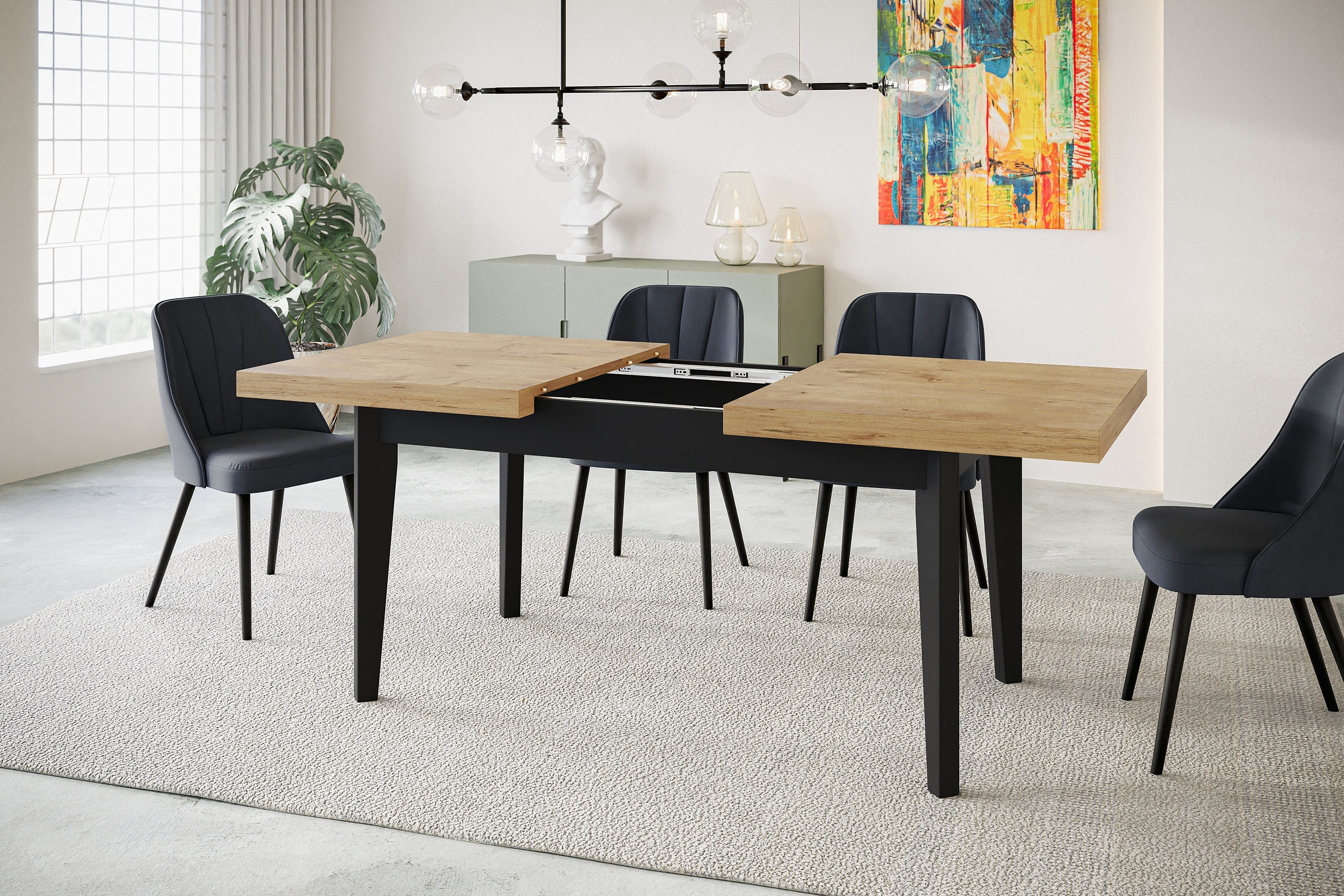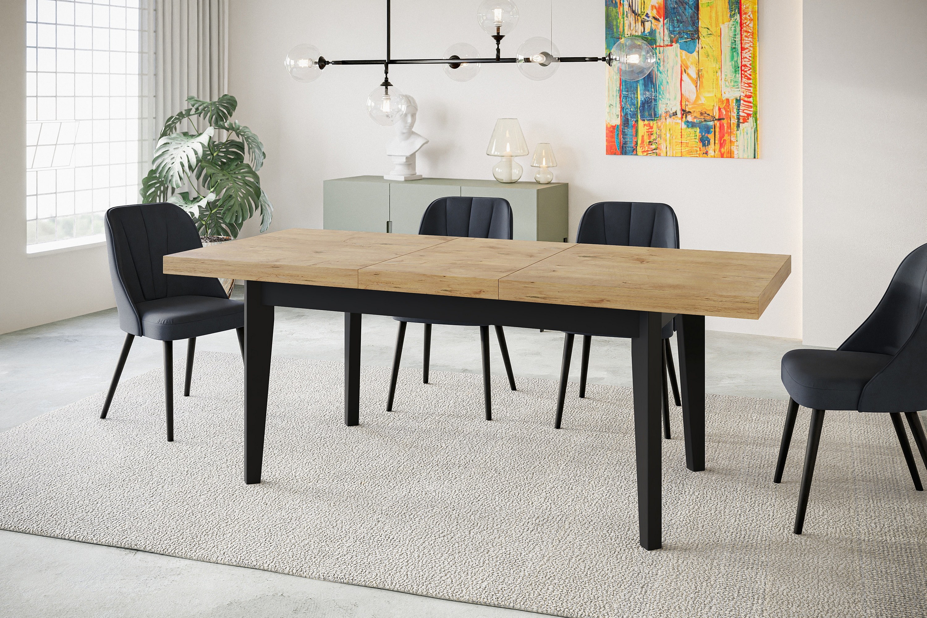 Table de salle à manger rectangulaire SKANDI, table à rallonges, dimensions: 140-180X80X78 cm, couleur: LANCELOT, avec pieds en bois de couleur noire