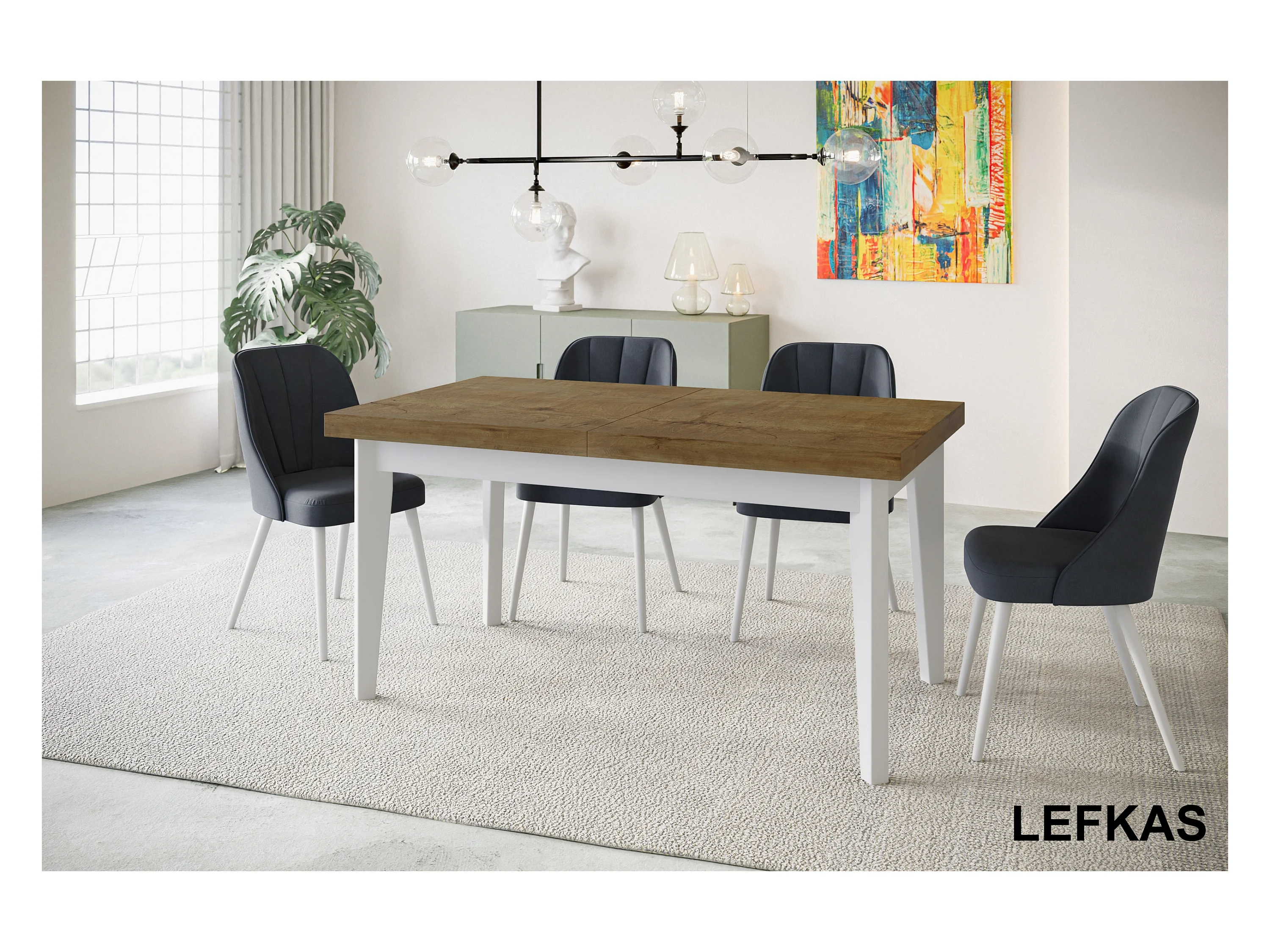 Table de salle à manger rectangulaire SKANDI, table à rallonges, dimensions: 140-180X80X78 cm, couleur: LEFKAS, avec pieds en bois blanc