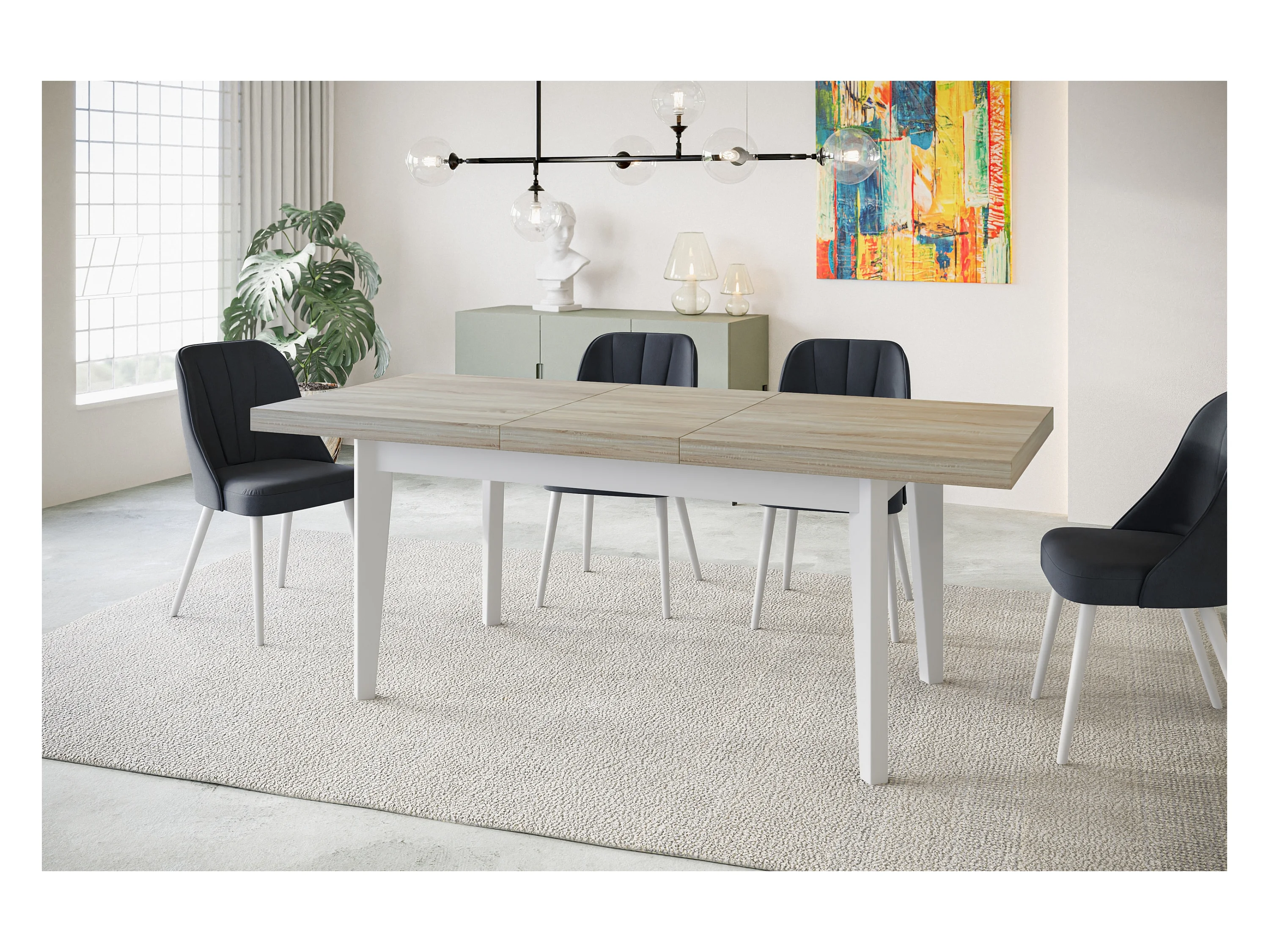 Table de salle à manger rectangulaire SKANDI, table à rallonges, dimensions: 140-180X80X78 cm, couleur: SONOMA, avec pieds en bois de couleur blanche