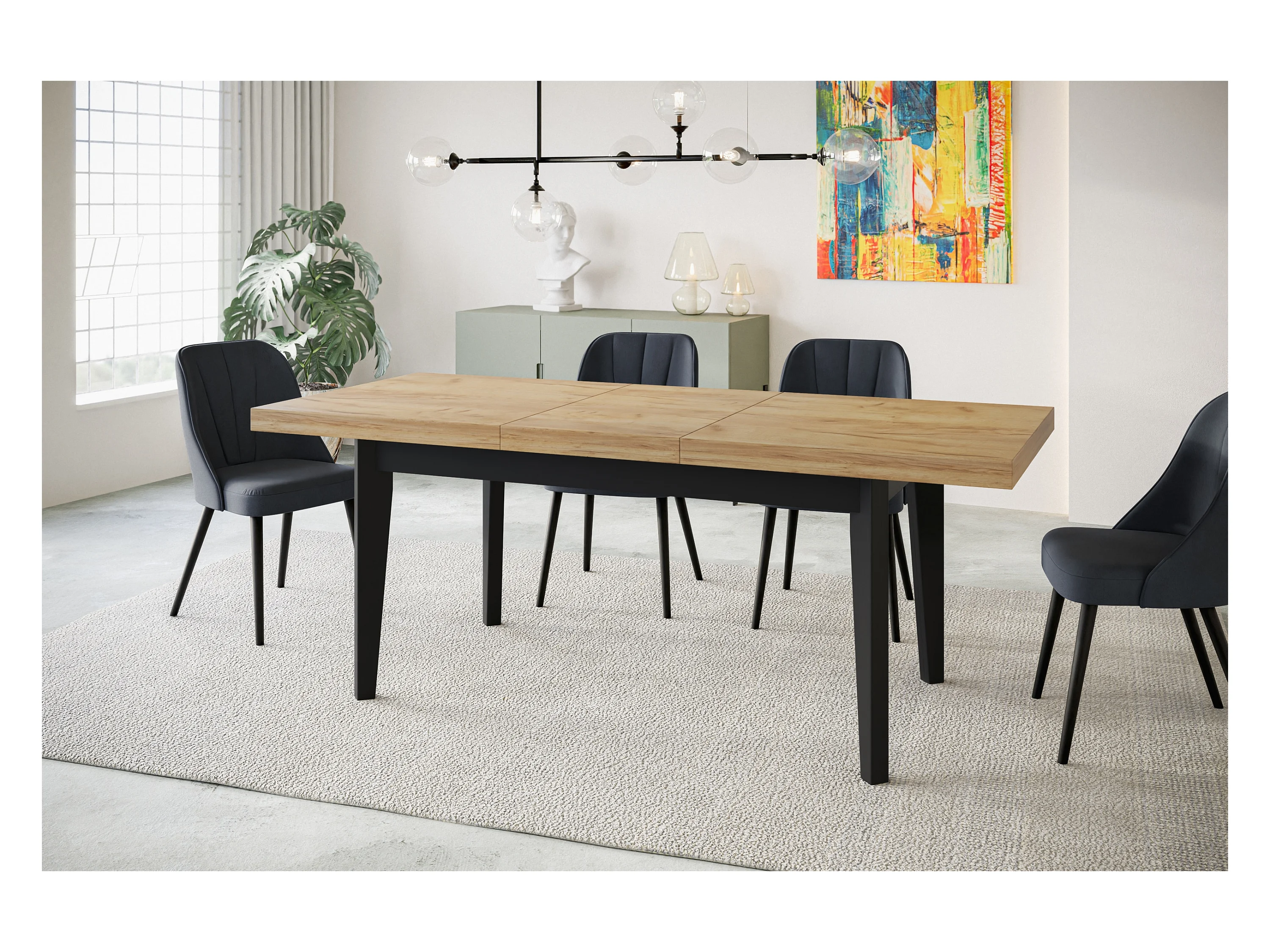 Table de salle à manger rectangulaire SKANDI, table à rallonges, dimensions: 160-210X90X78 cm, couleur: CRAFT, avec pieds en bois de couleur noire
