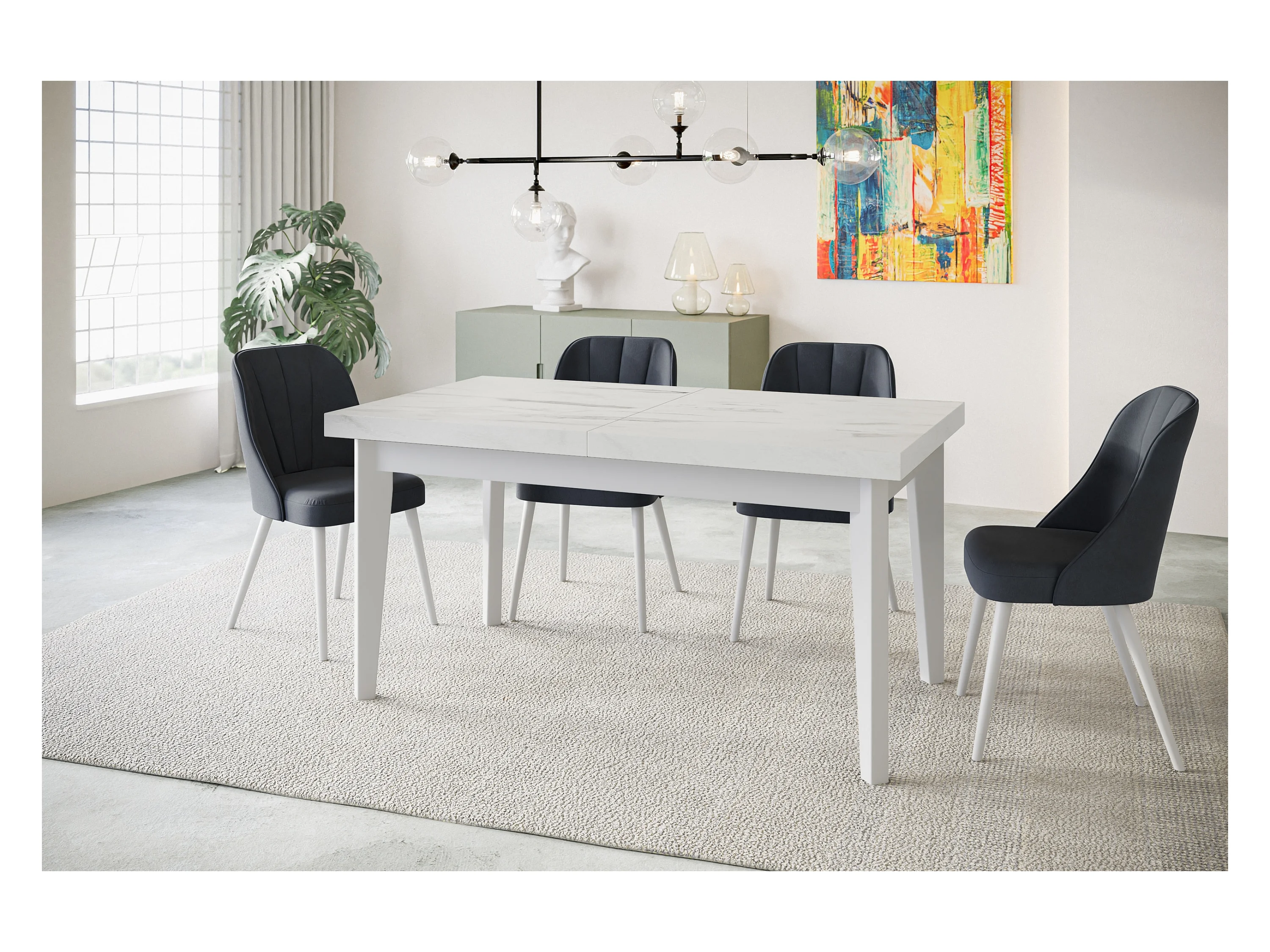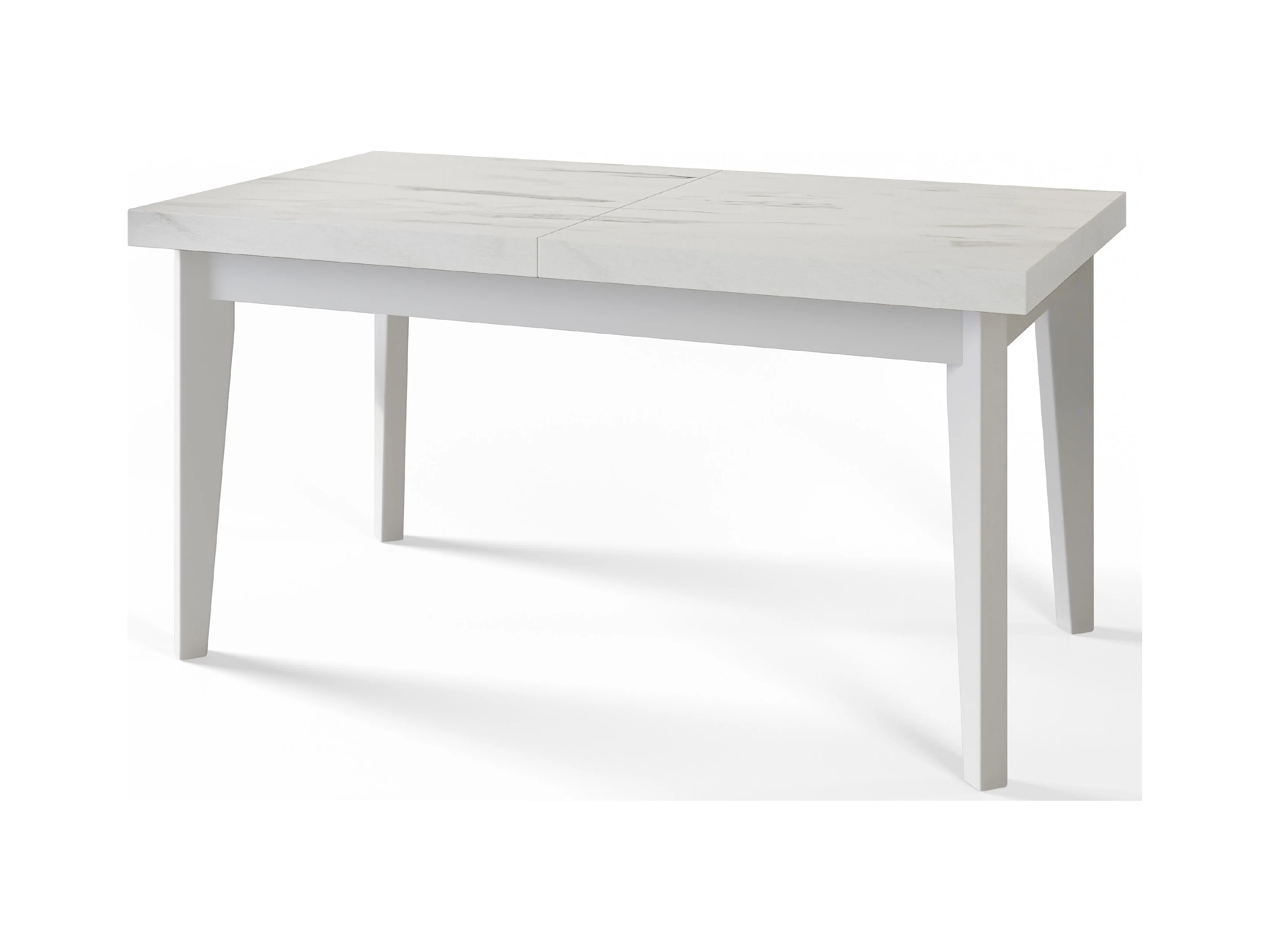 Table de salle à manger rectangulaire SKANDI, table à rallonges, dimensions: 200-300X100X78 cm, couleur: MARBRE, avec pieds en bois de couleur blanche