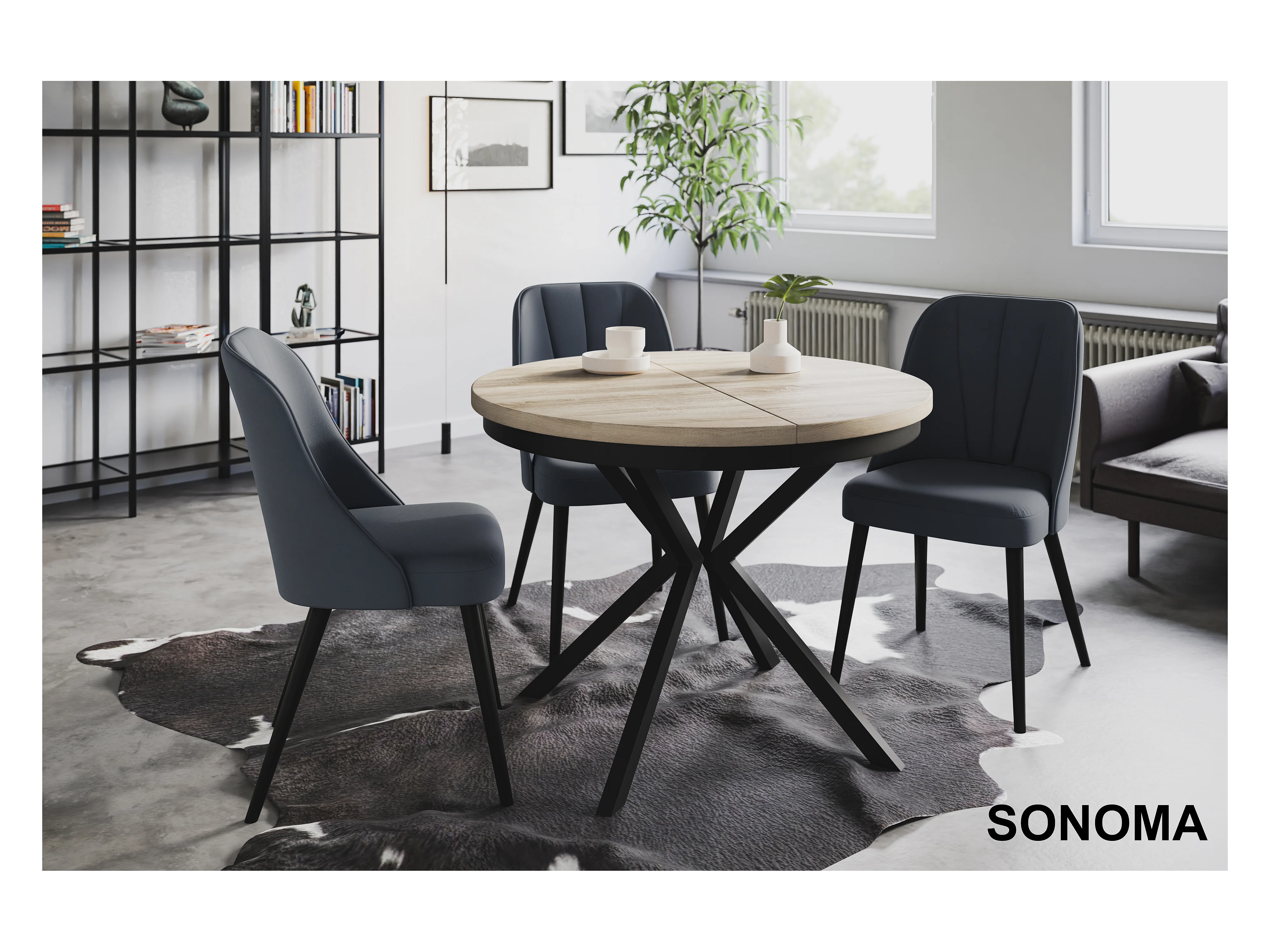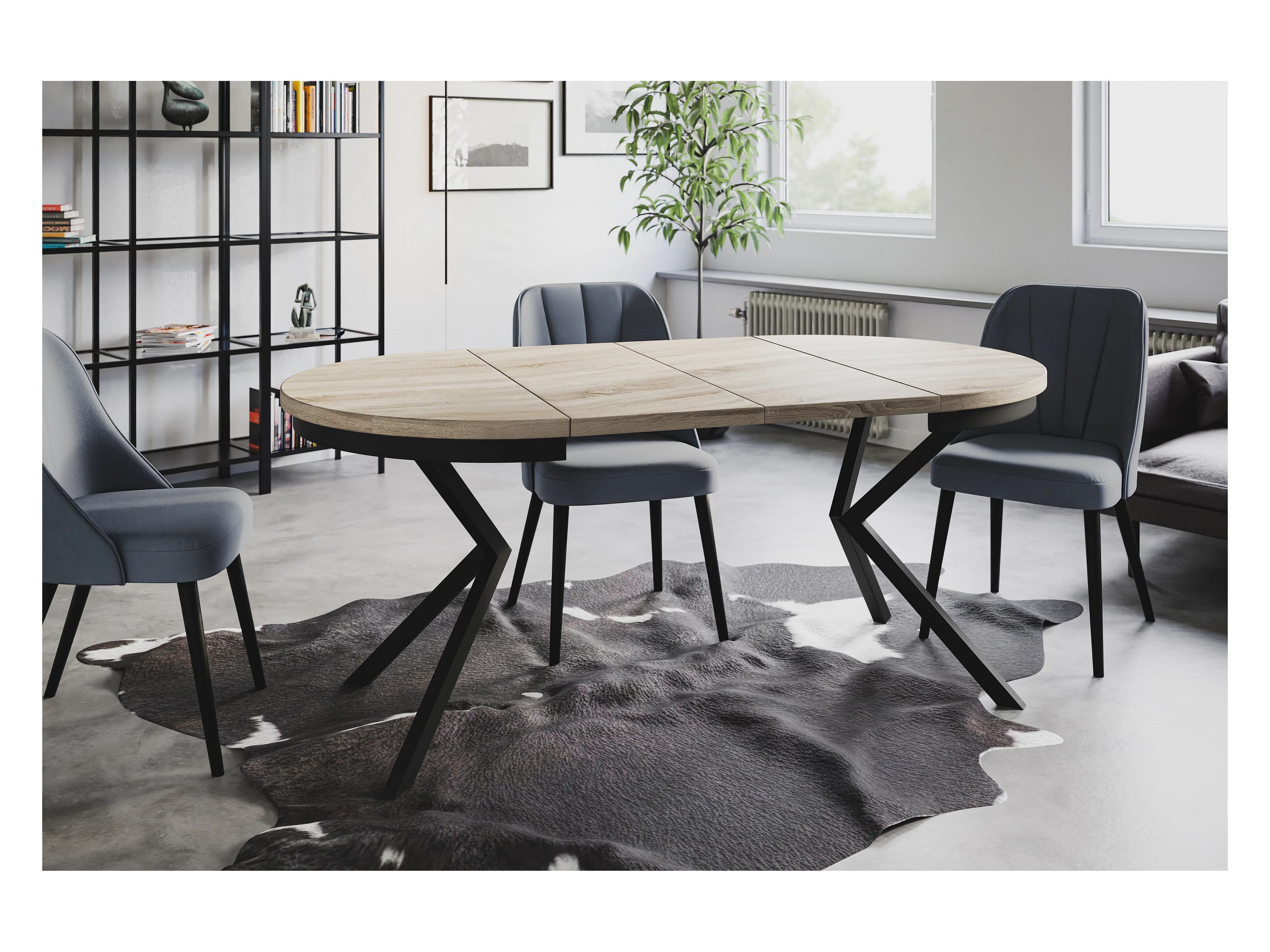 Table de salle à manger ronde BERGO, table à rallonges Diamètre : 100 cm/180 cm, couleur de la table basse : beige, avec pieds métalliques de couleur noire