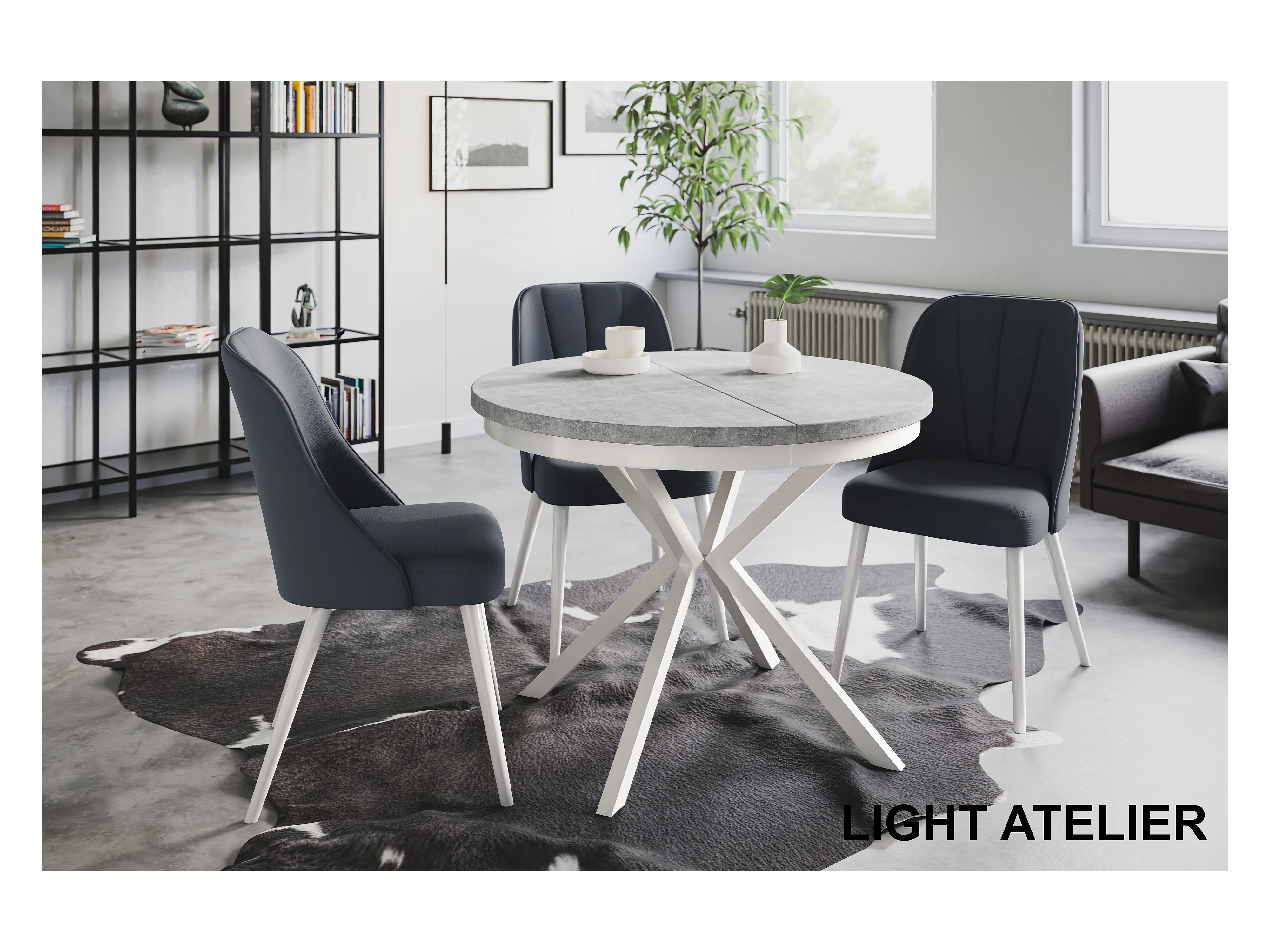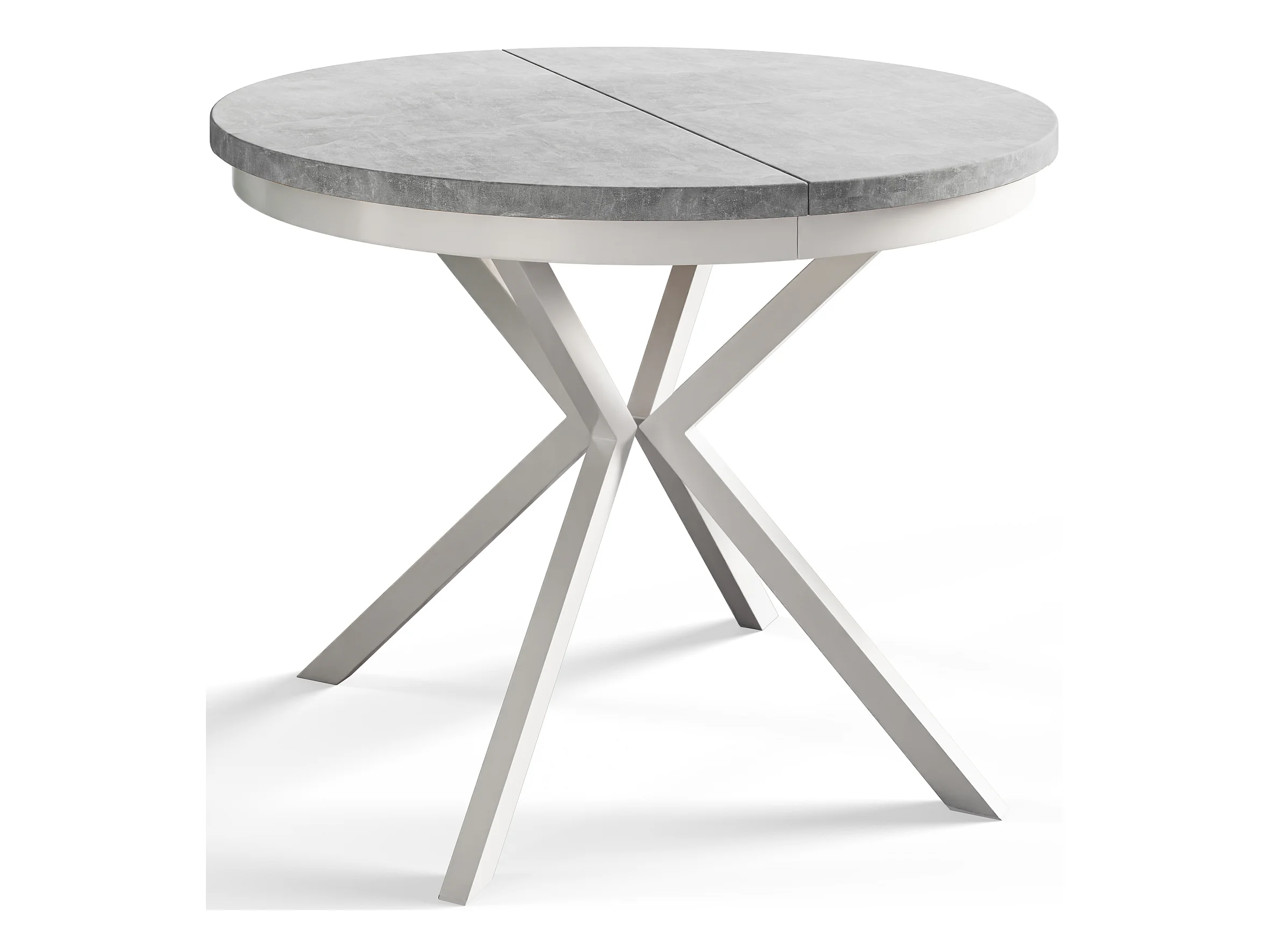 Table de salle à manger ronde BERGO, table à rallonges Diamètre : 90 cm/170 cm, couleur de la table basse : gris clair, avec pieds métalliques de couleur blanche