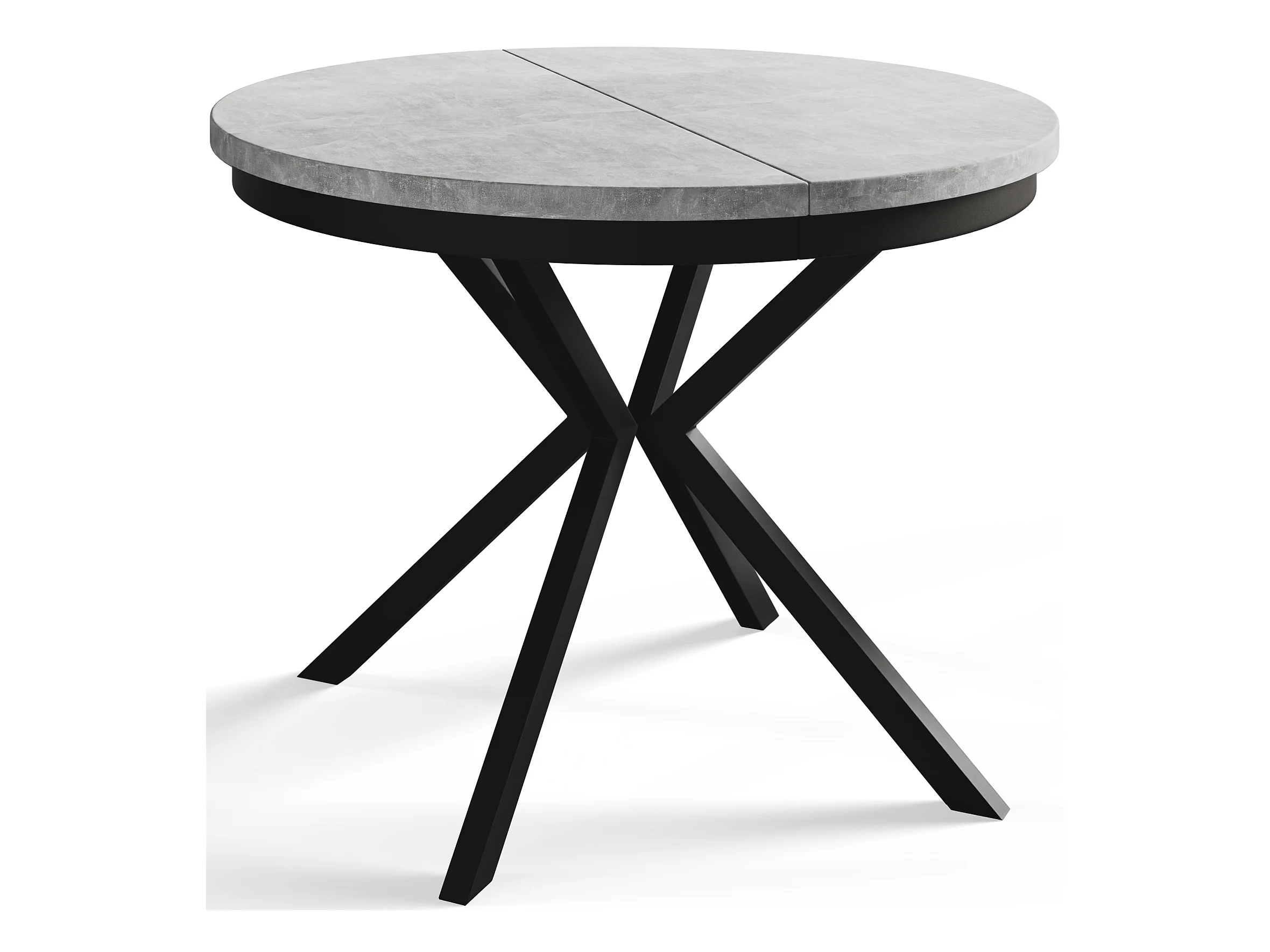 Table de salle à manger ronde BERGO, table à rallonges Diamètre : 90 cm/170 cm, couleur de la table basse : gris clair, avec pieds métalliques de couleur noire