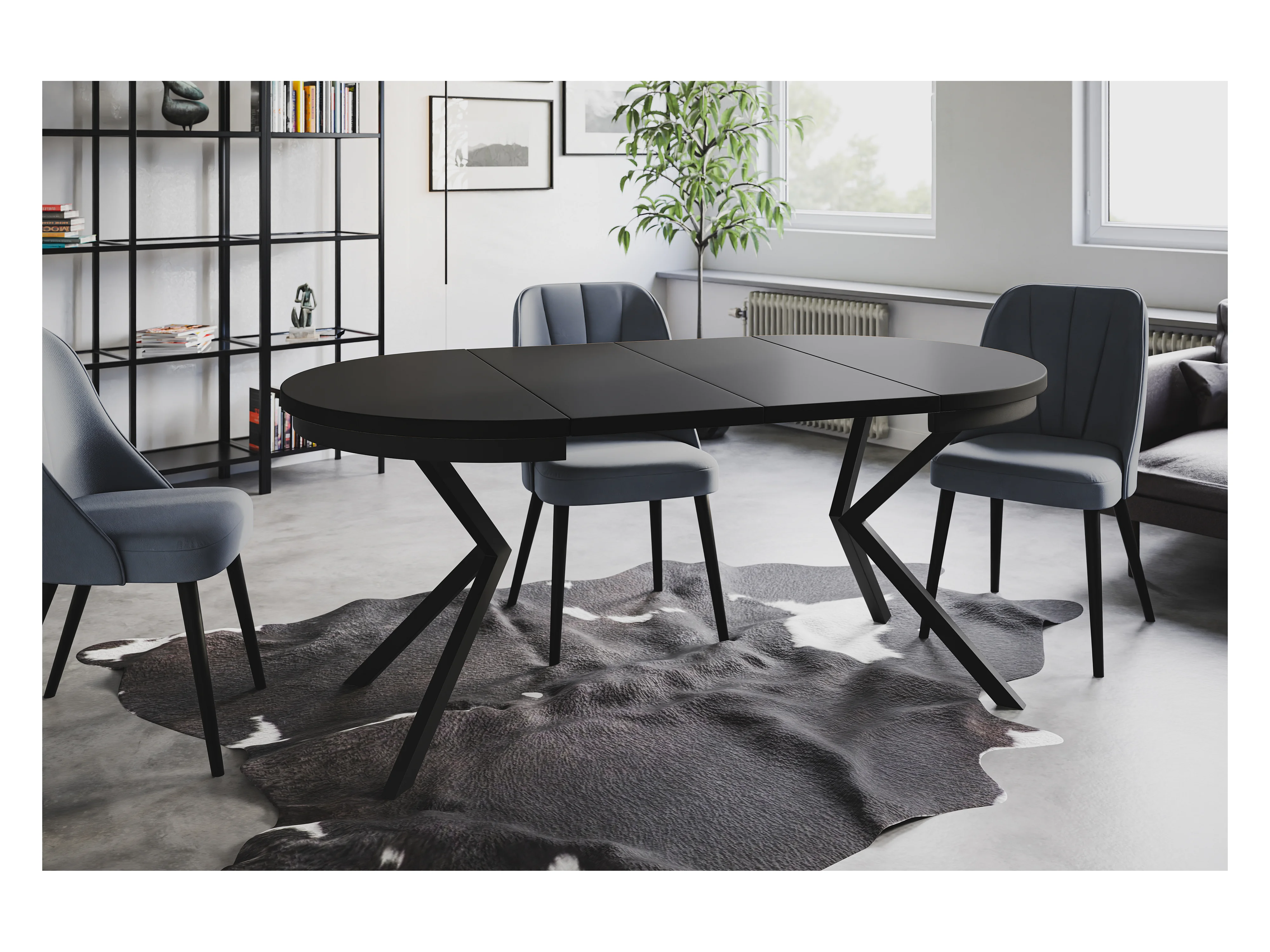 Table de salle à manger ronde BERGO, table à rallonges Diamètre : 90 cm/170 cm, couleur de la table basse : noir, avec pieds métalliques de couleur noire