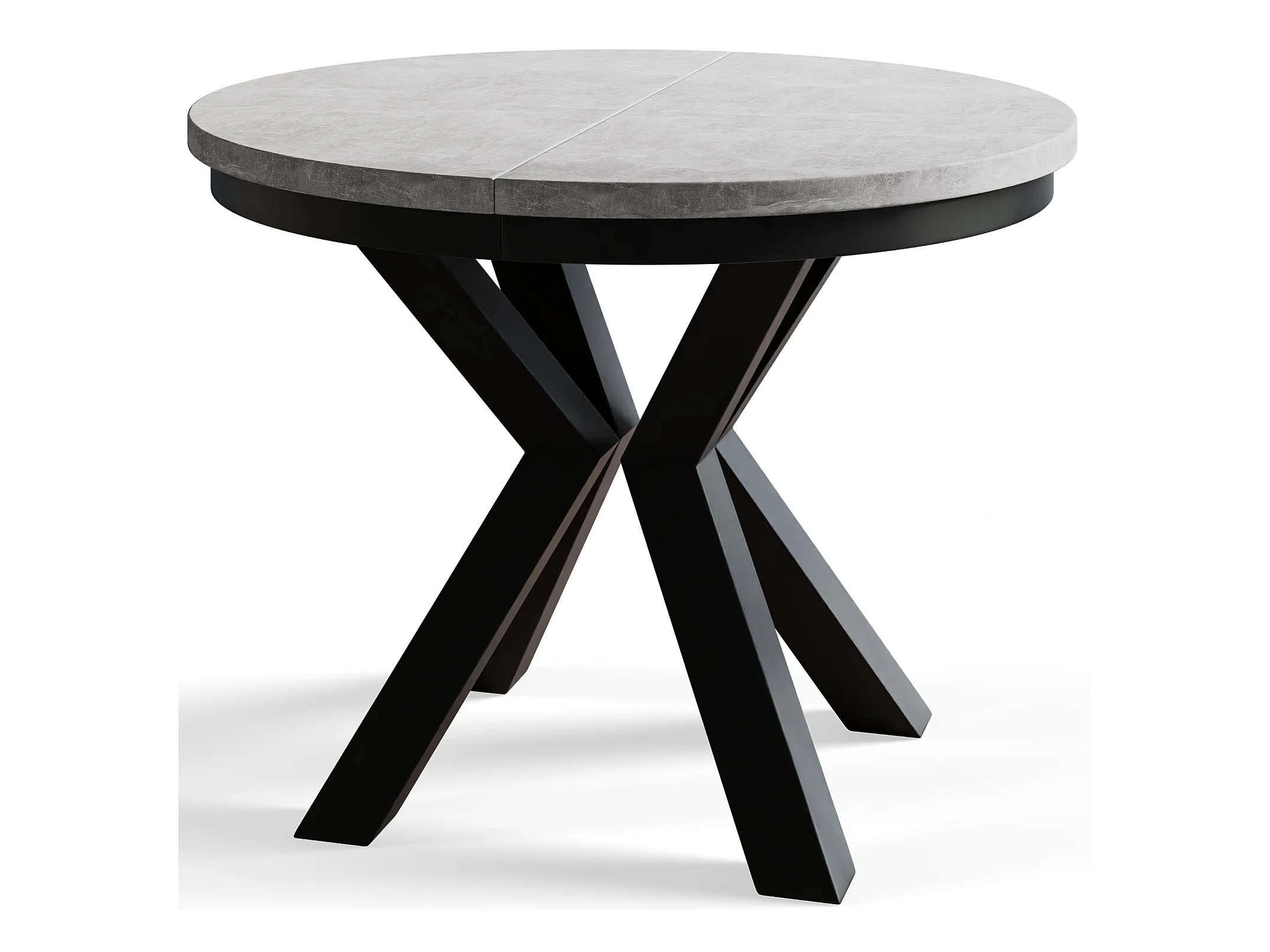 Table de salle à manger ronde LOFT, table à rallonges Diamètre : 100 cm/180 cm, couleur de la table basse : gris, avec pieds métalliques de couleur noire