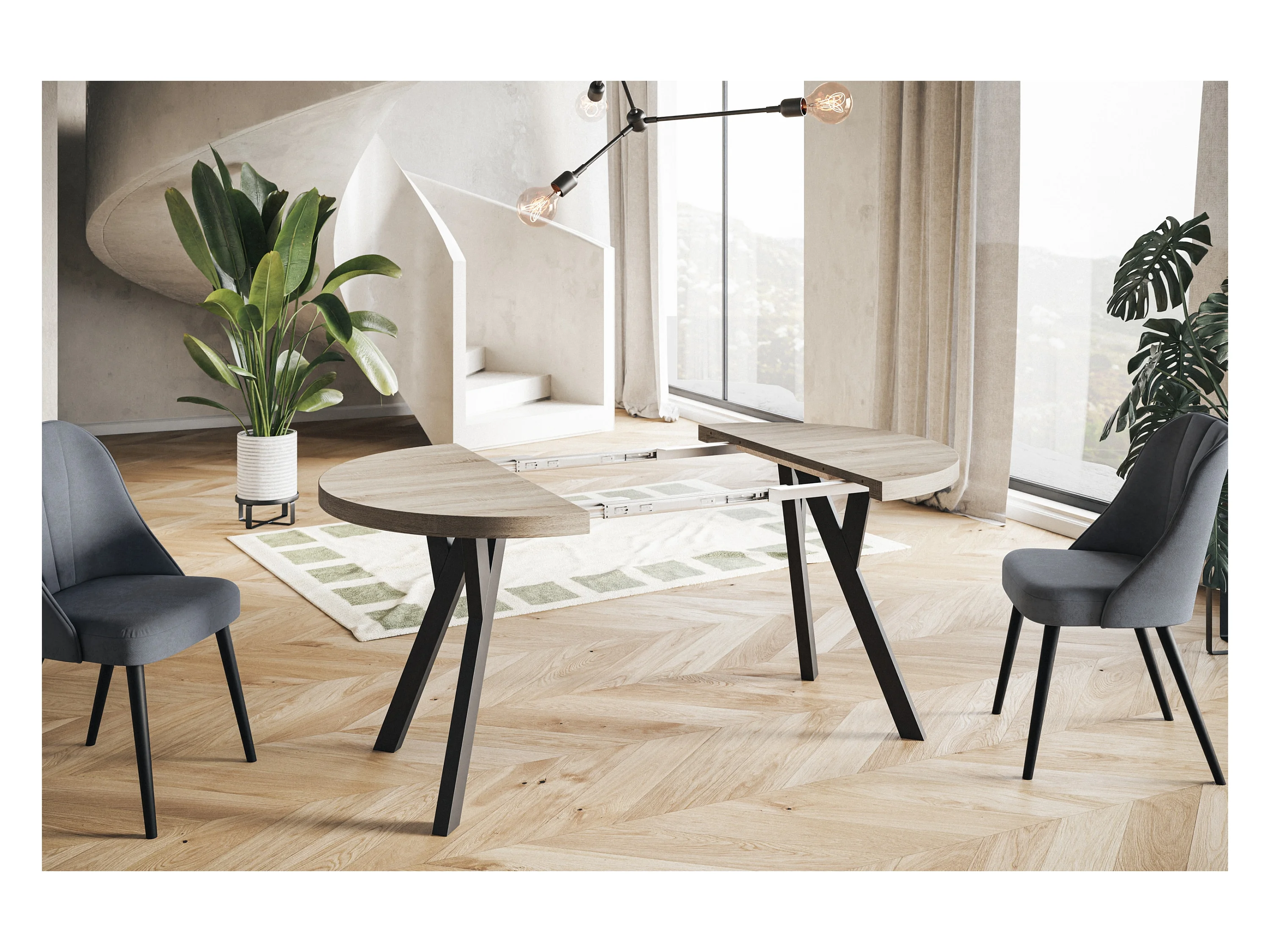 Table de salle à manger ronde OVO, table à rallonges Diamètre : 100 cm à 200 cm, couleur de la table basse : SONOMA, avec pieds en bois couleur noir