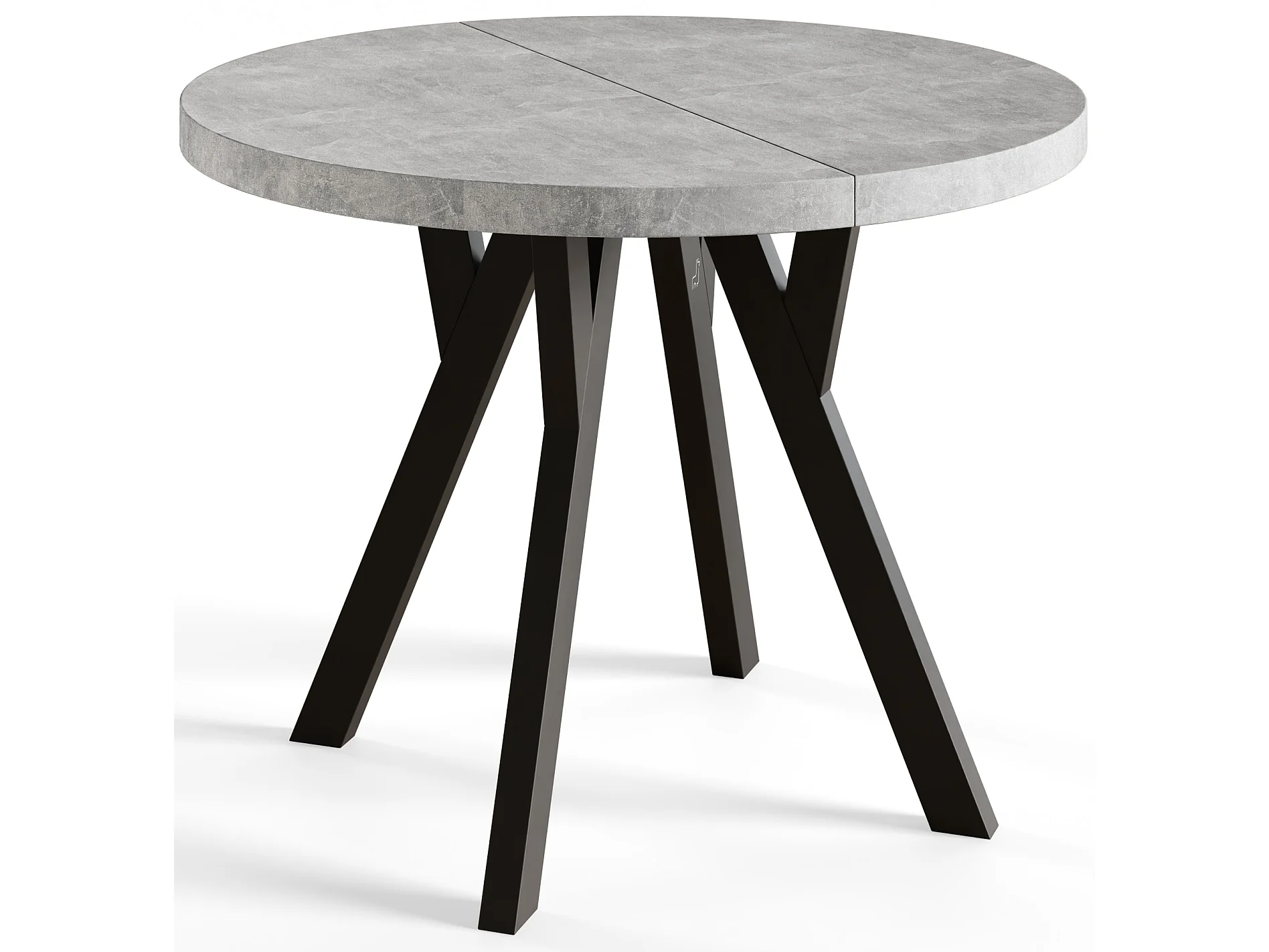 Table de salle à manger ronde OVO, table à rallonges Diamètre : 80 cm à 130 cm, couleur de la table basse : gris, avec pieds en bois de couleur noir