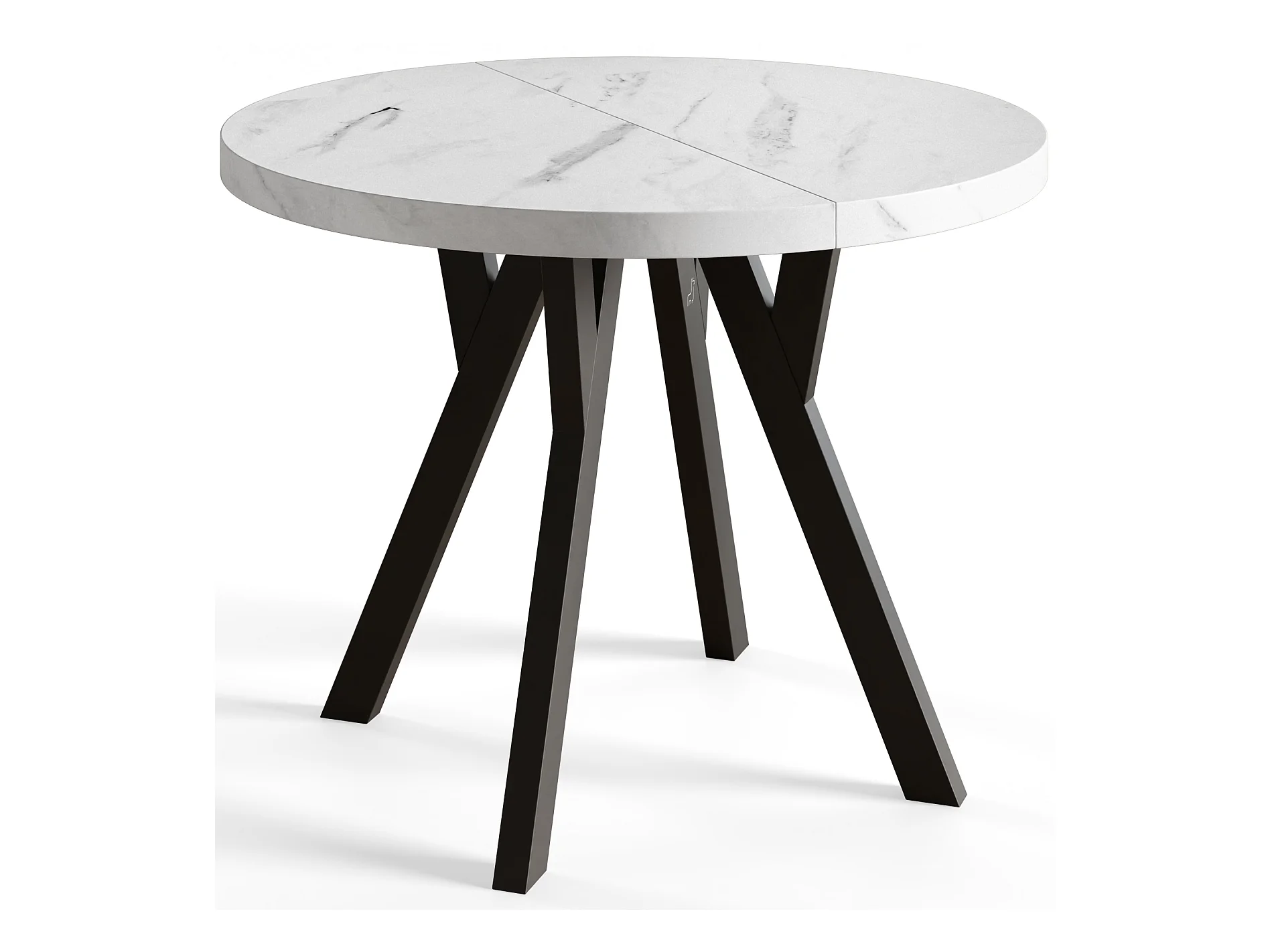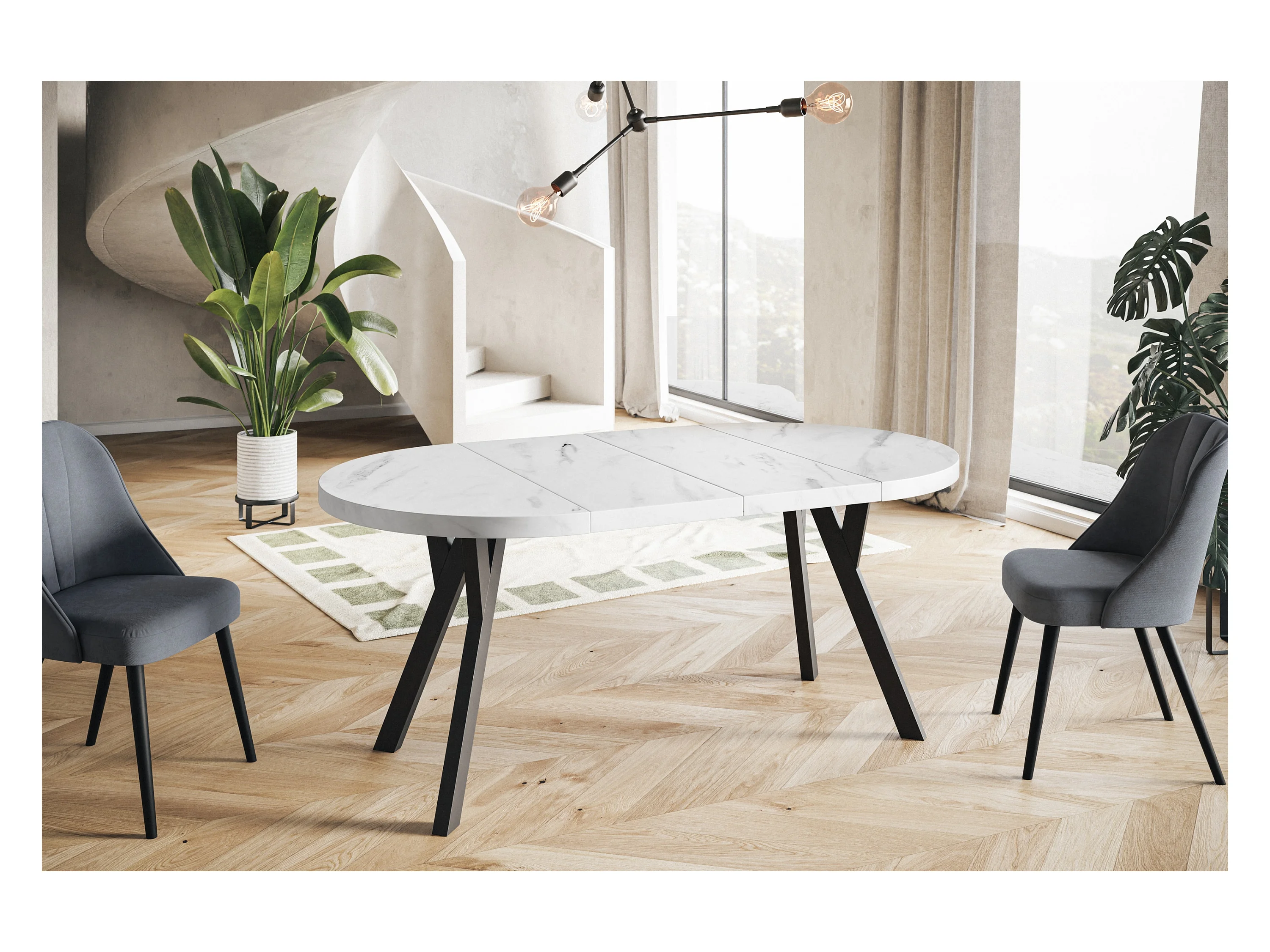 Table de salle à manger ronde OVO, table à rallonges Diamètre : 90 cm à 190 cm, couleur de la table basse : MARMUR, avec pieds en bois couleur noir