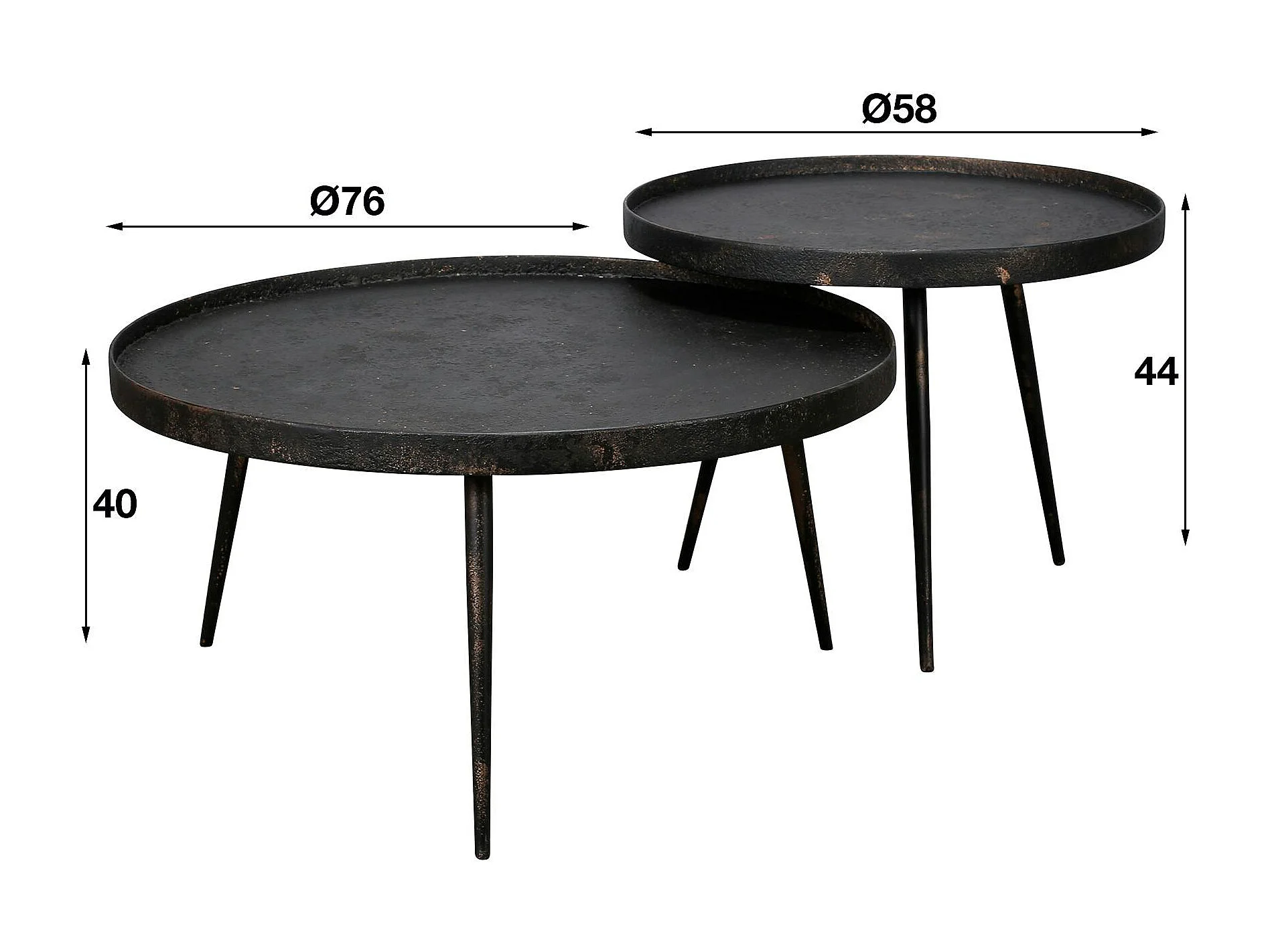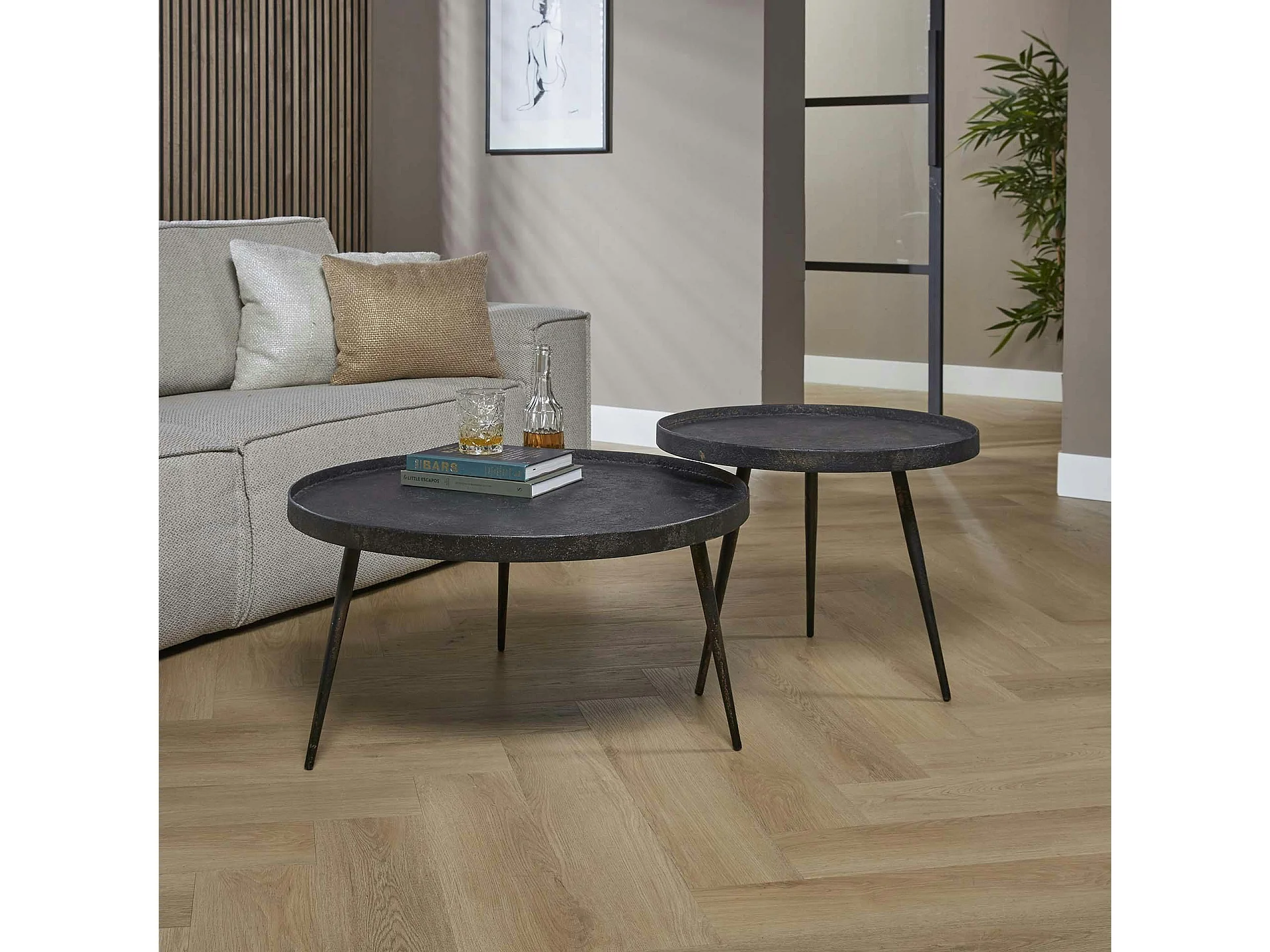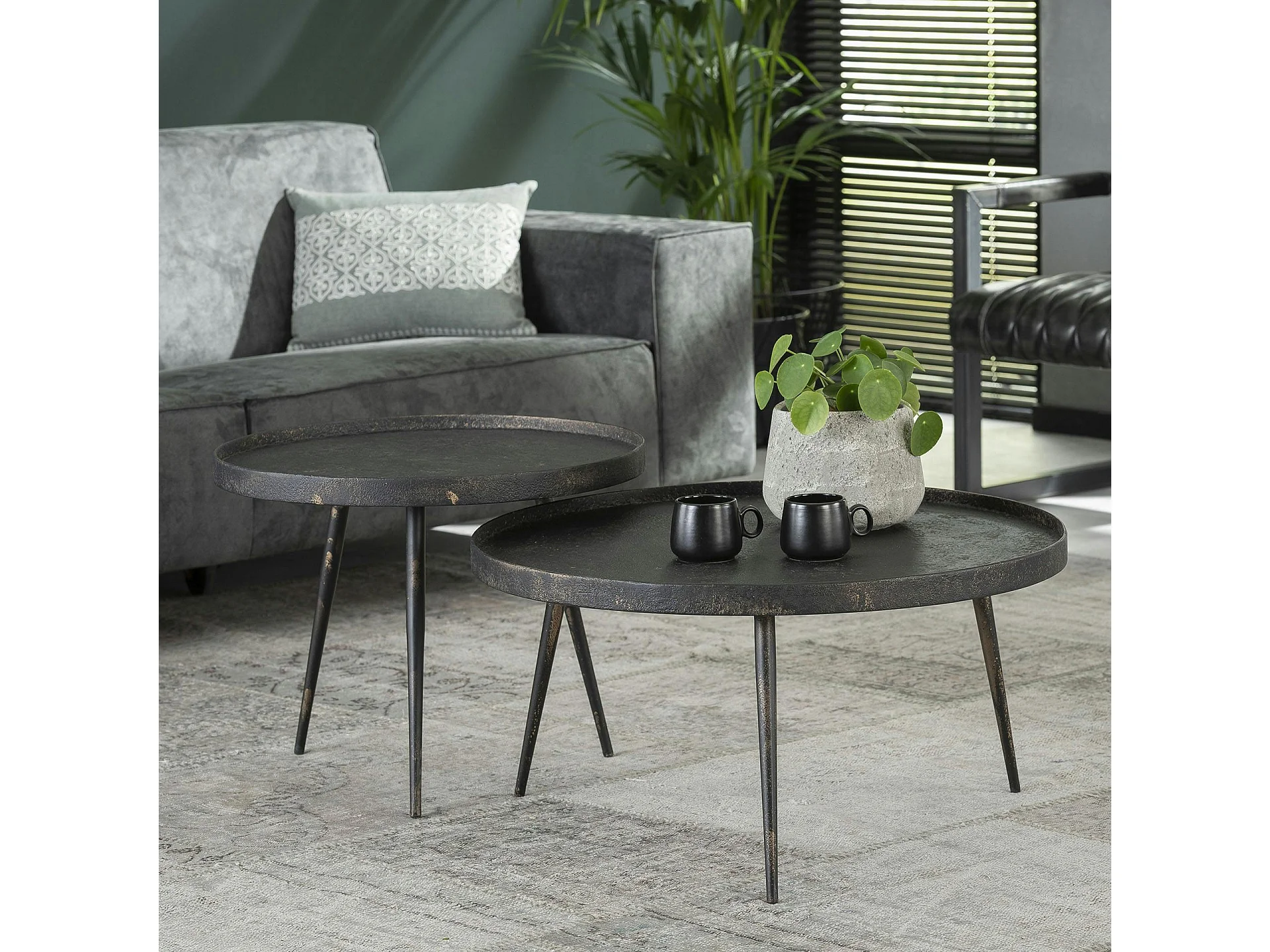 Table de salon ronde effet métal vieilli (2 pièces) RALF