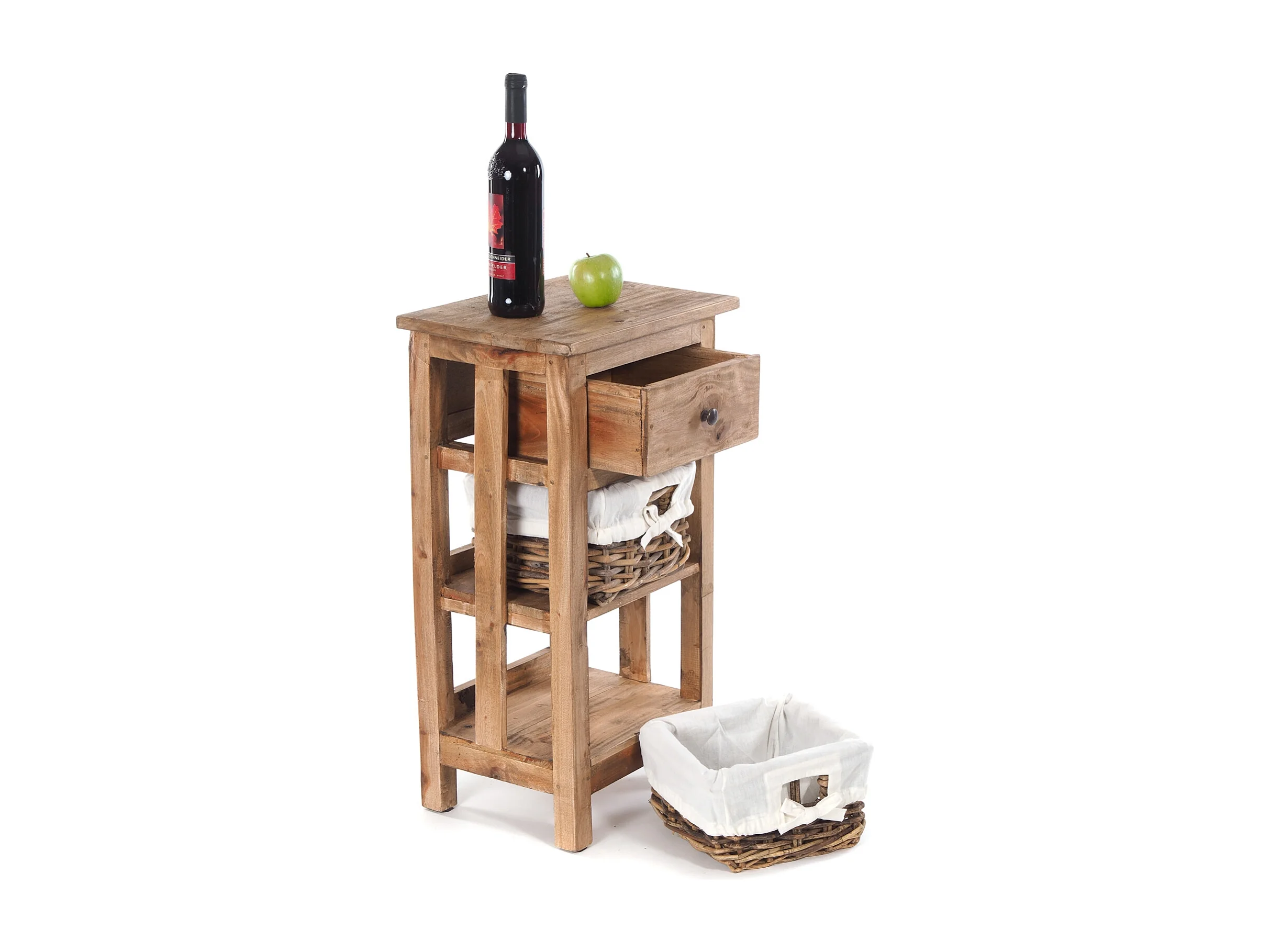 TABLE DE TÉLÉPHONE RATTAN 70 avec 2 paniers en rotin et tiroir, en acajou massif 01 natur-vintage