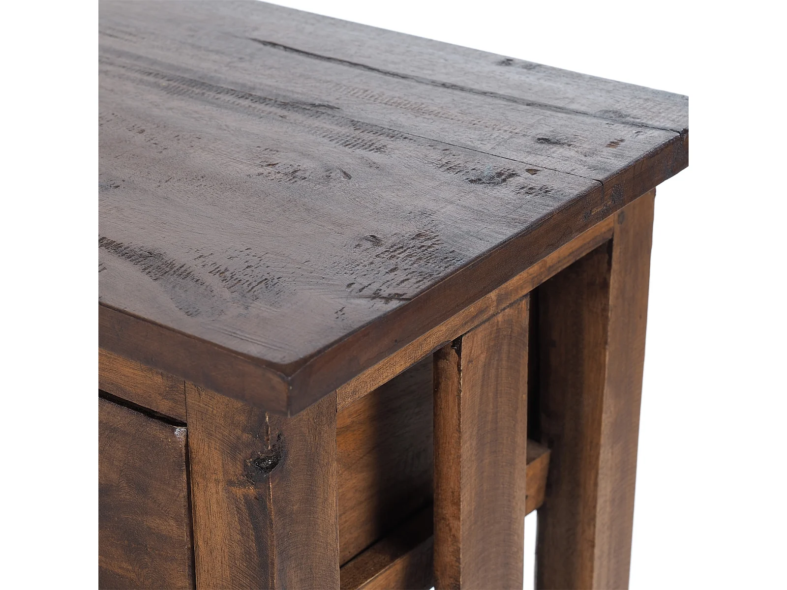 TABLE DE TÉLÉPHONE RATTAN 70 avec 2 paniers en rotin et tiroir, en acajou massif 03 dunkelbraun