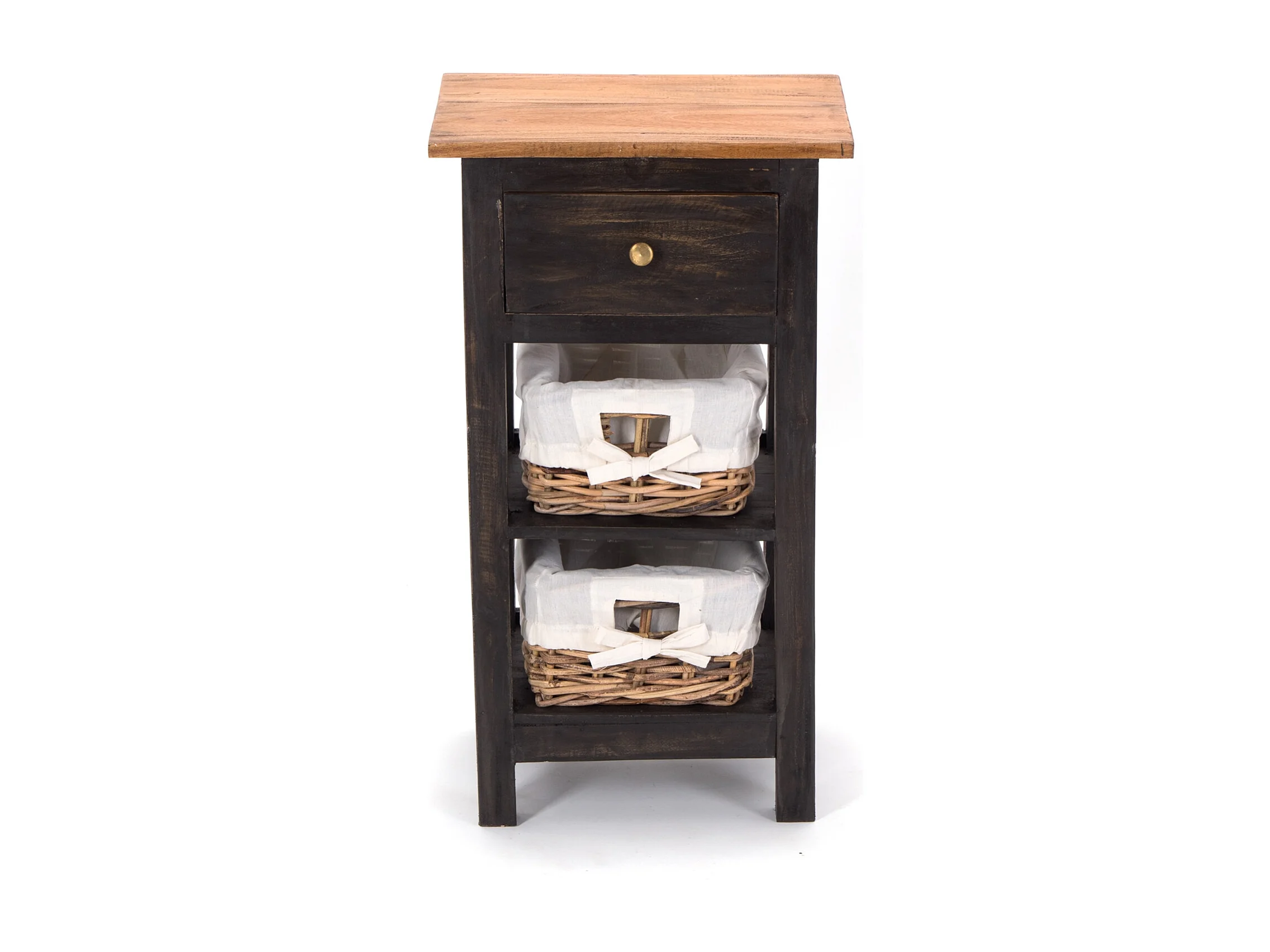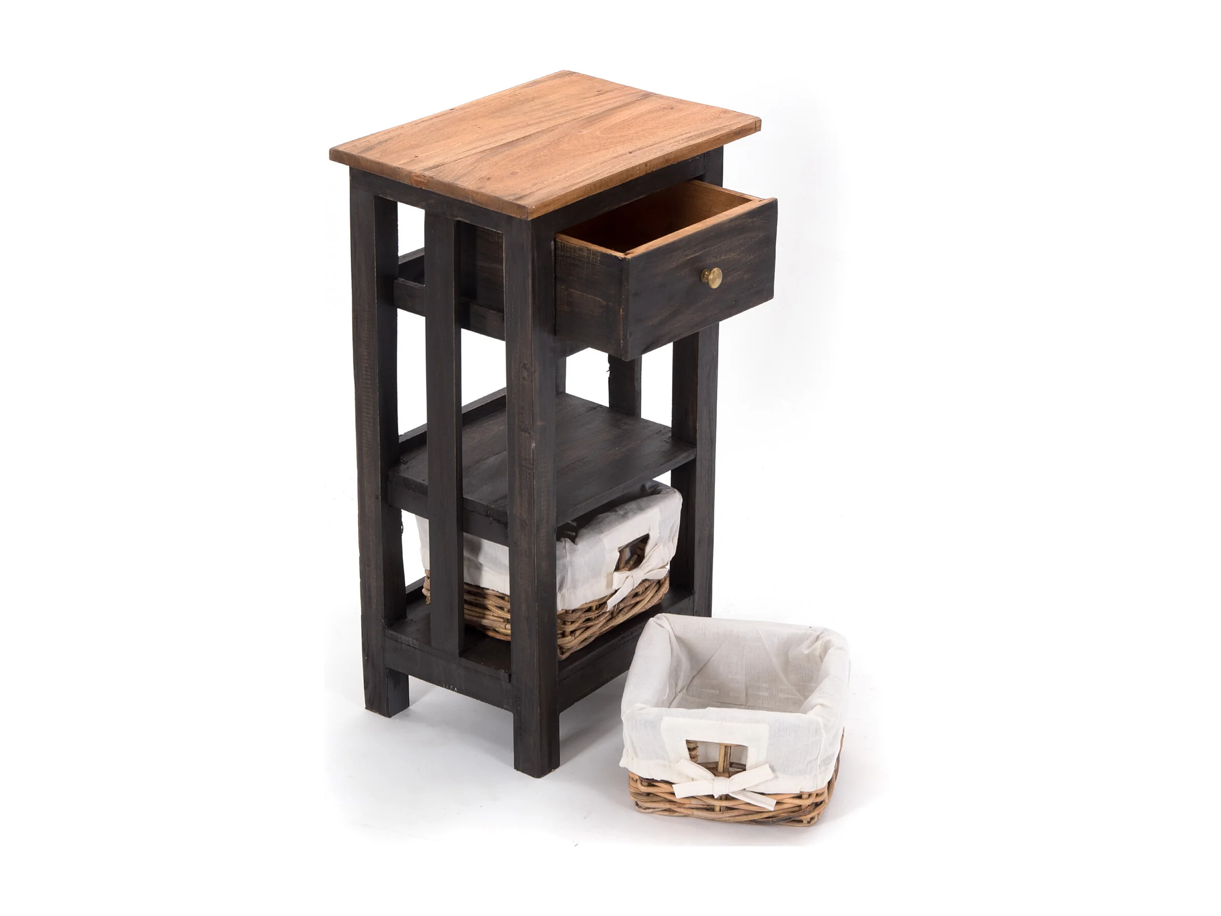 TABLE DE TÉLÉPHONE RATTAN 70 avec 2 paniers en rotin et tiroir, en acajou massif 04 schwarz-natur