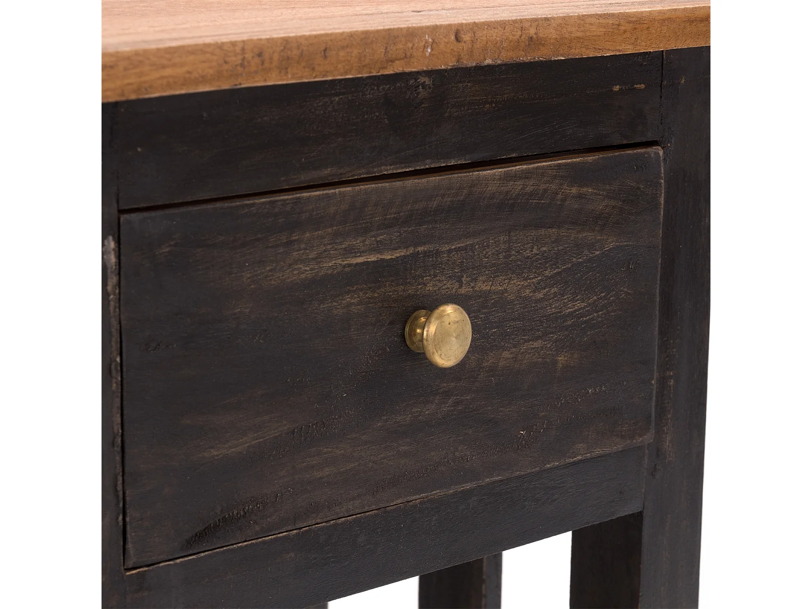 TABLE DE TÉLÉPHONE TIROIR 65 Bois de recyclage en acajou, avec tiroir 04 schwarz-natur