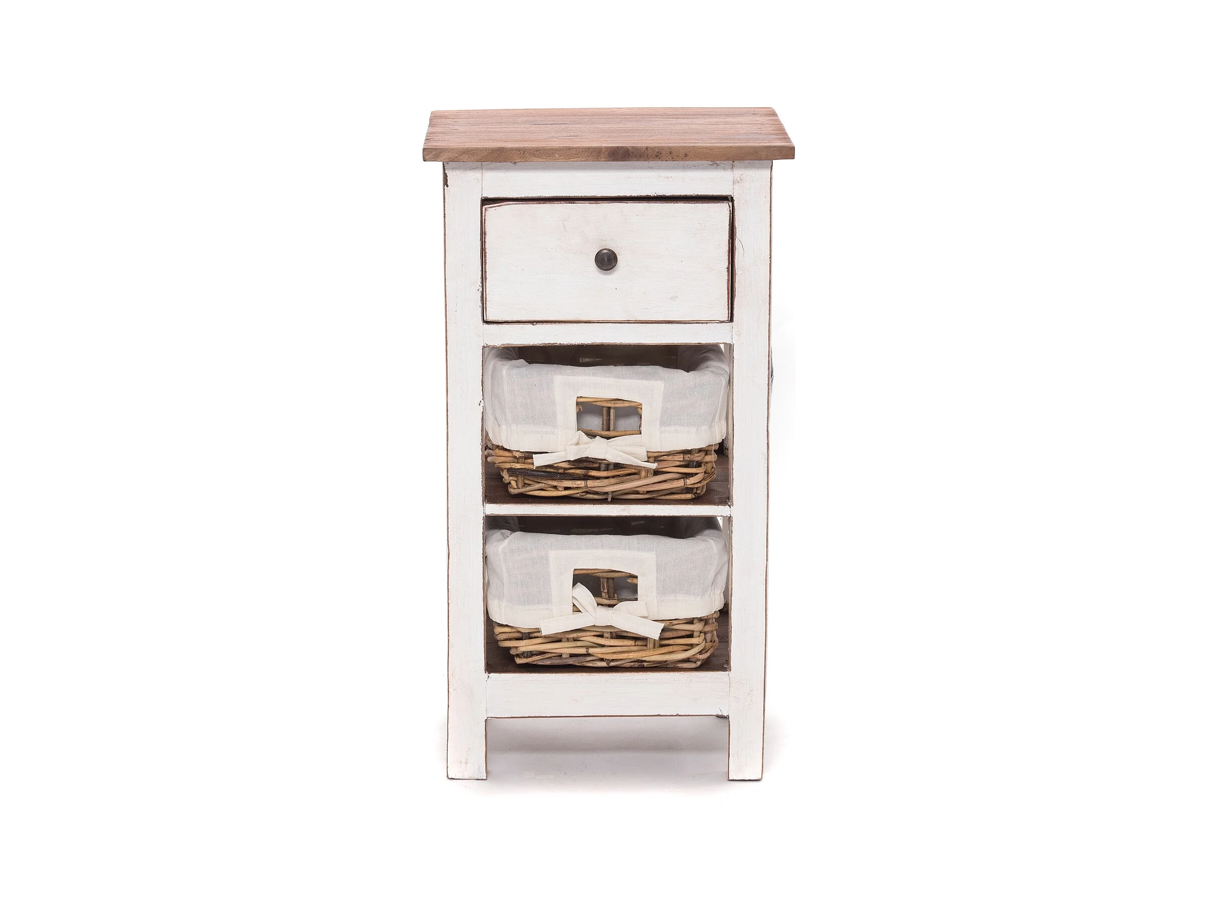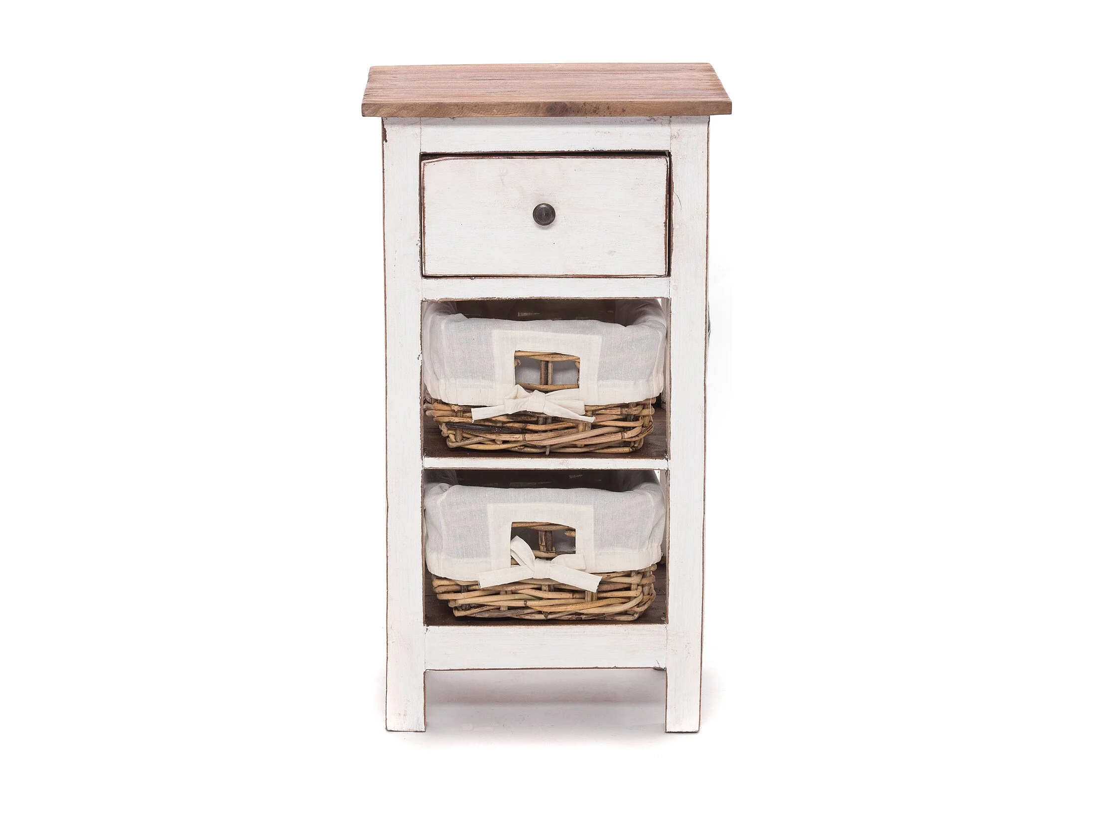 TABLE DE TÉLÉPHONE RATTAN 70 avec 2 paniers en rotin et tiroir, en acajou massif 06 weiß-landhaus