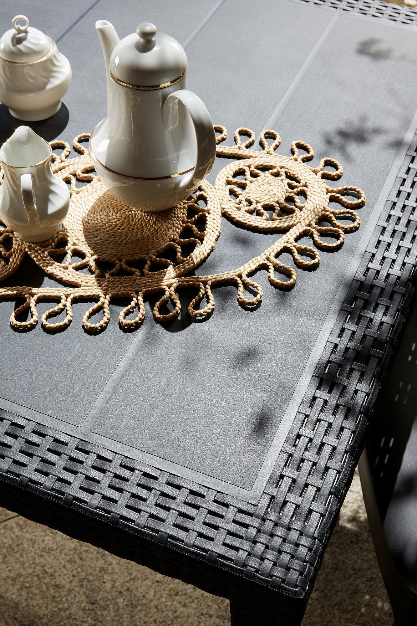 Table d'extérieur Portici, Étagère à manger rectangulaire, Table de jardin polyvalente effet rotin, 100% Made in Italy, 150x90h72 cm, Anthracite