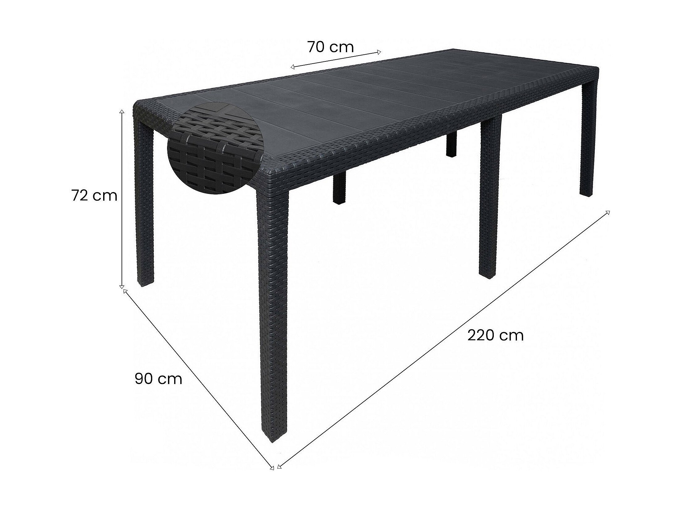 Table d'extérieur Portici, Étagère à manger rectangulaire, Table de jardin polyvalente effet rotin, 100% Made in Italy, 150x90h72 cm, Anthracite