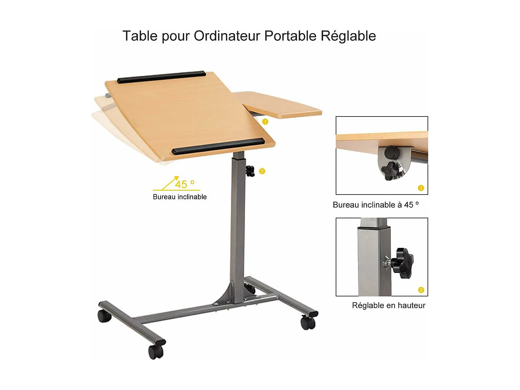 Table d’Ordinateur à roulettes Portable en MDF+Fer Hauteur Réglable 71-93 cm avec 4 roulettes (Noyer)