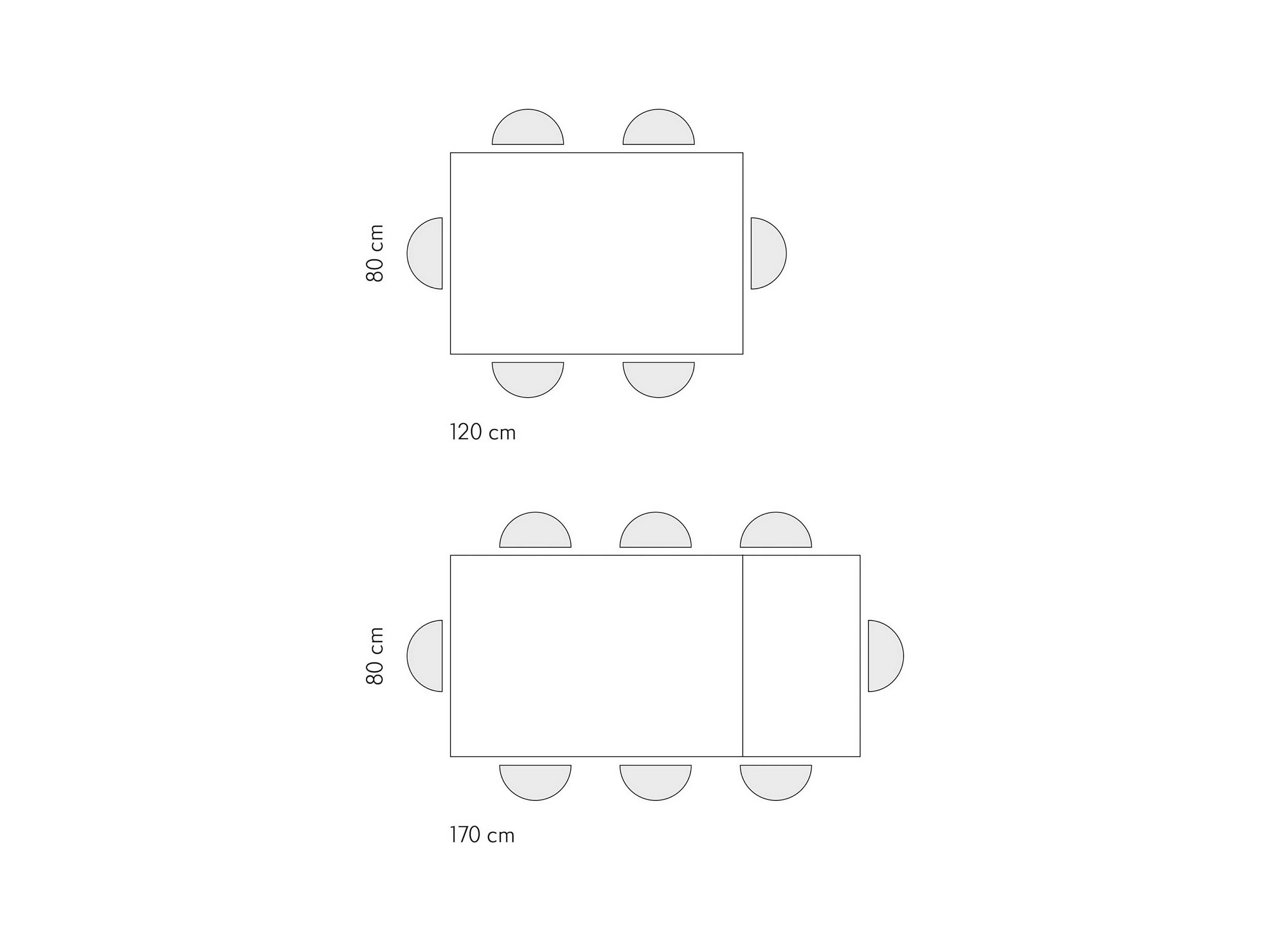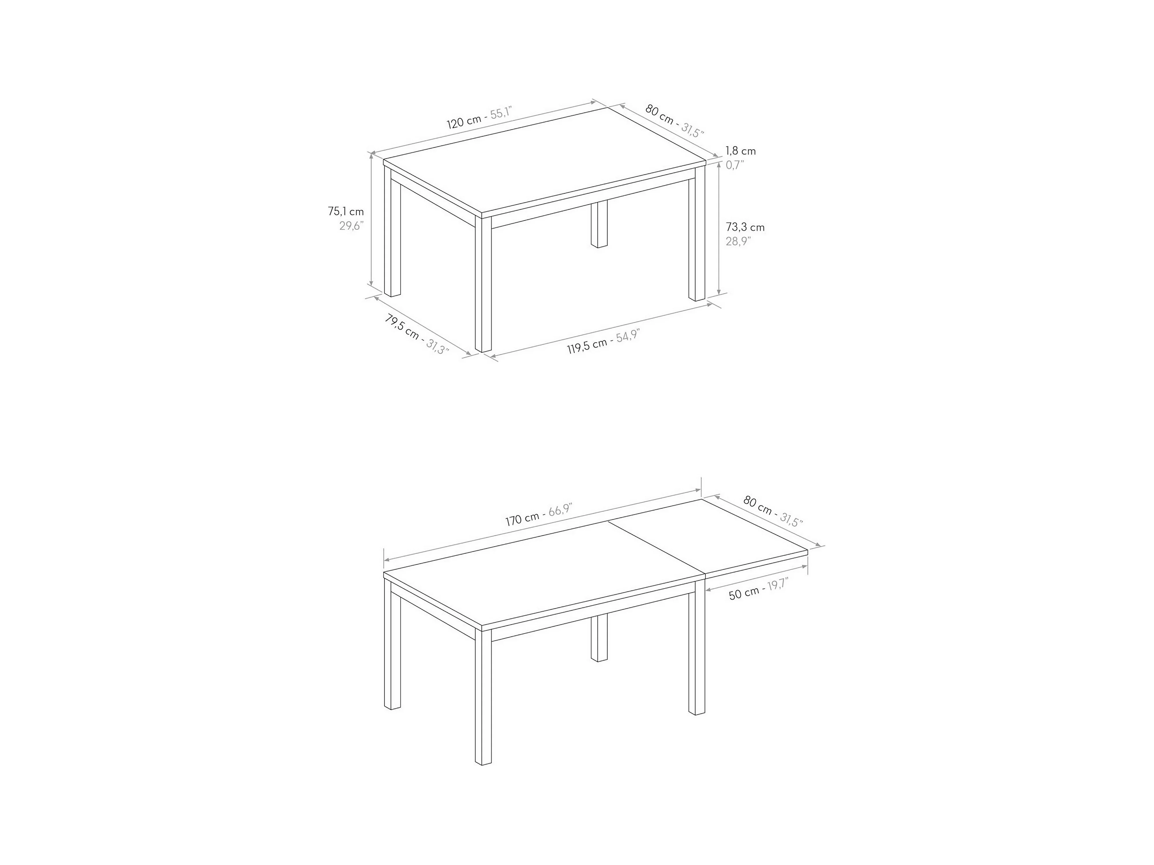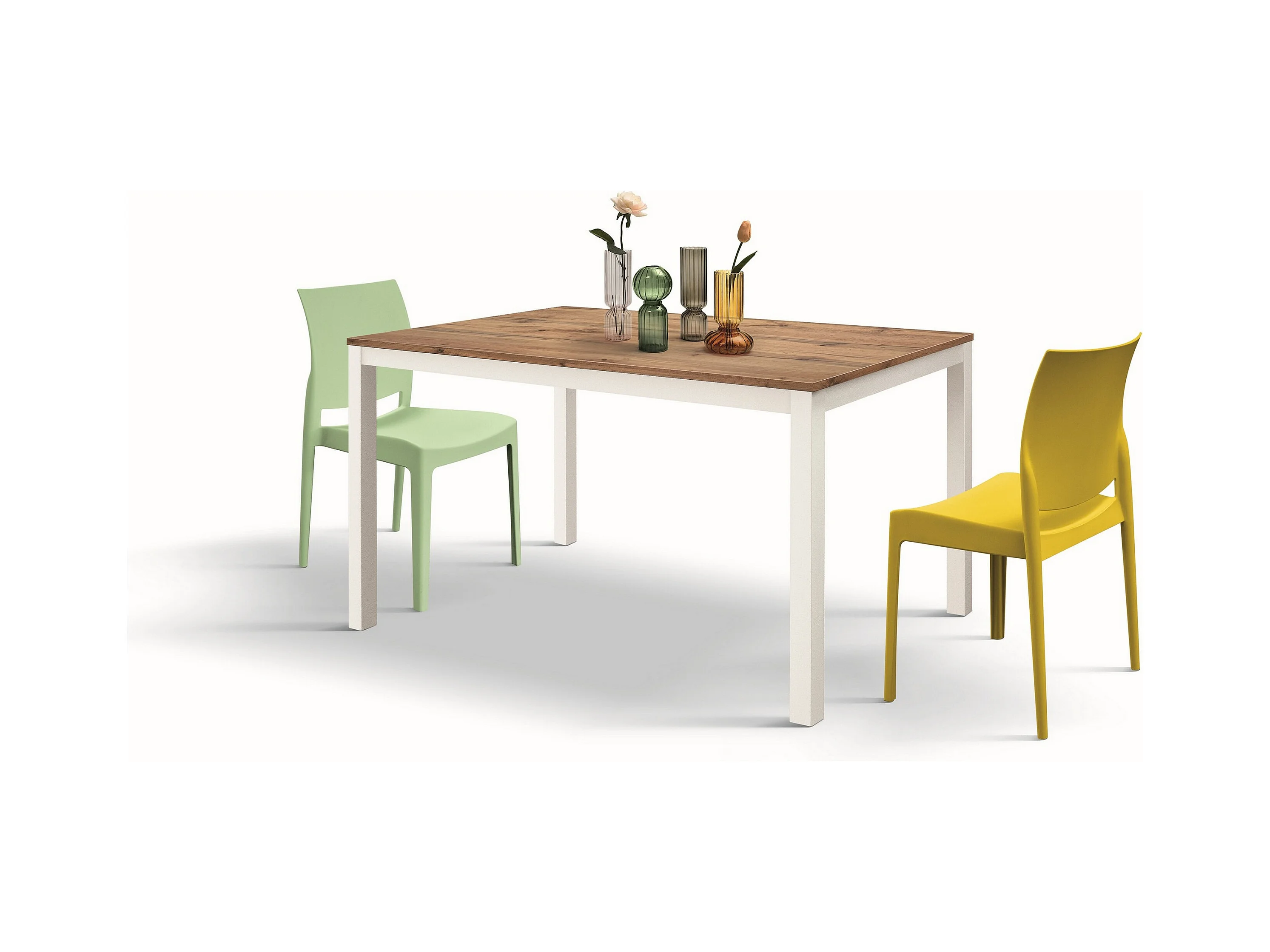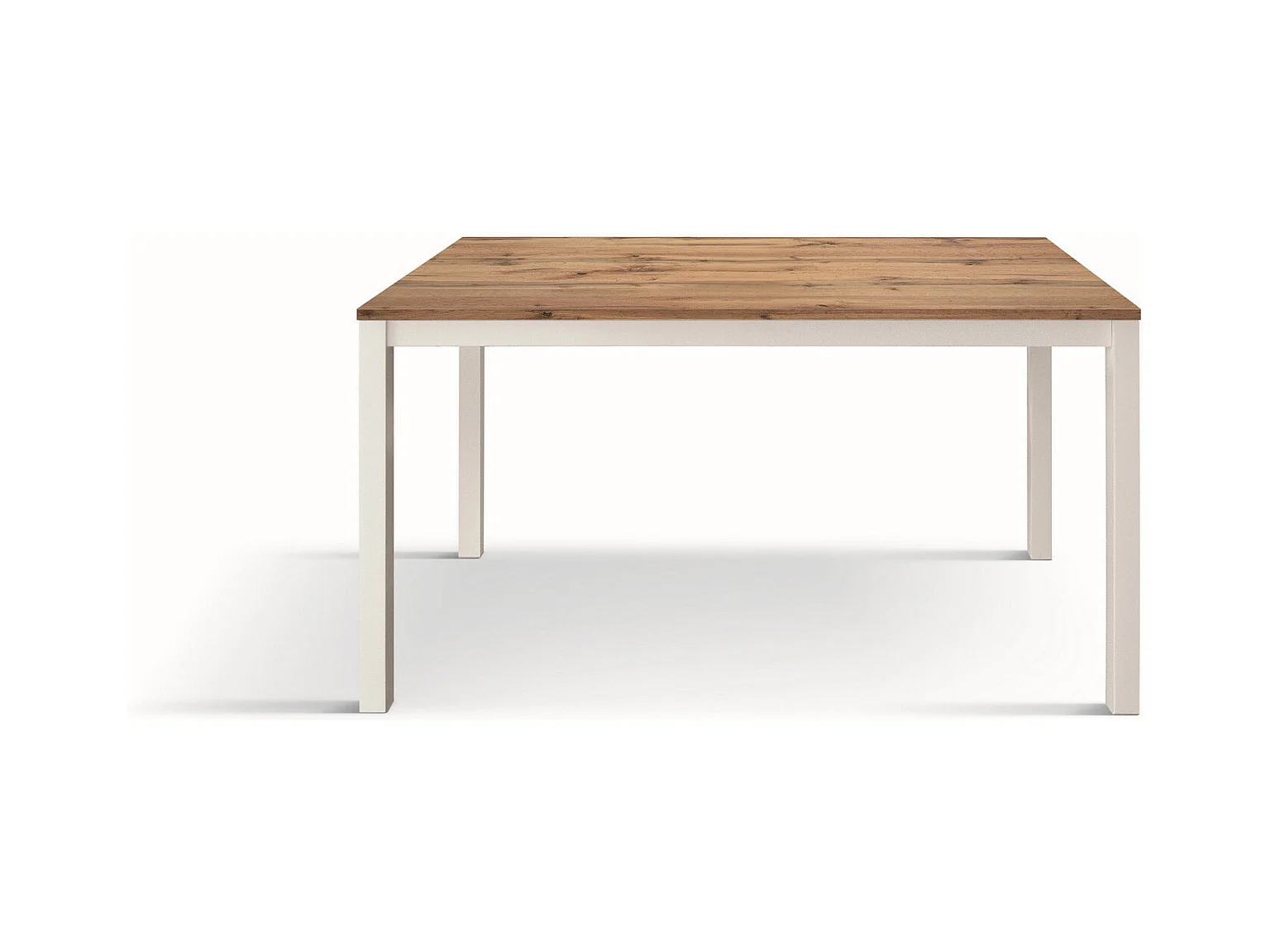 Table en bois, effet chêne, base blanche, ext.120x80-170x80cm - TROPEA