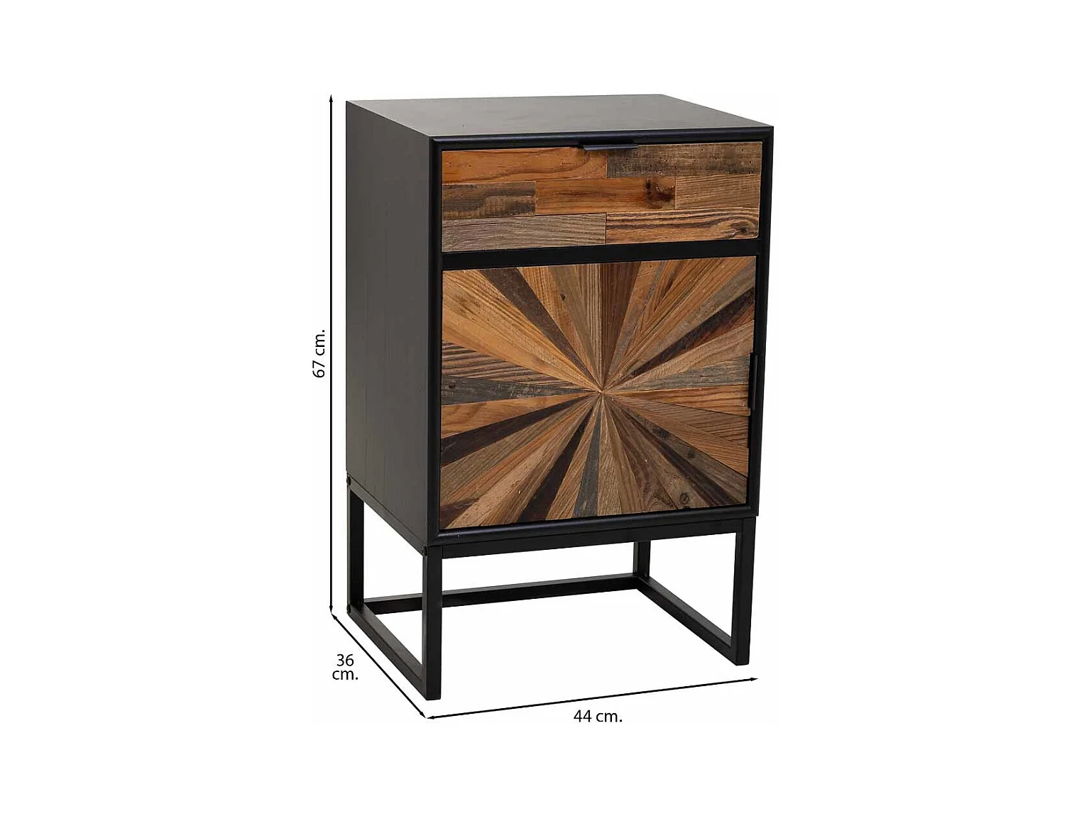 Table de chevet en bois et métal, 1 tiroir et 1 porte marron 44x36x67