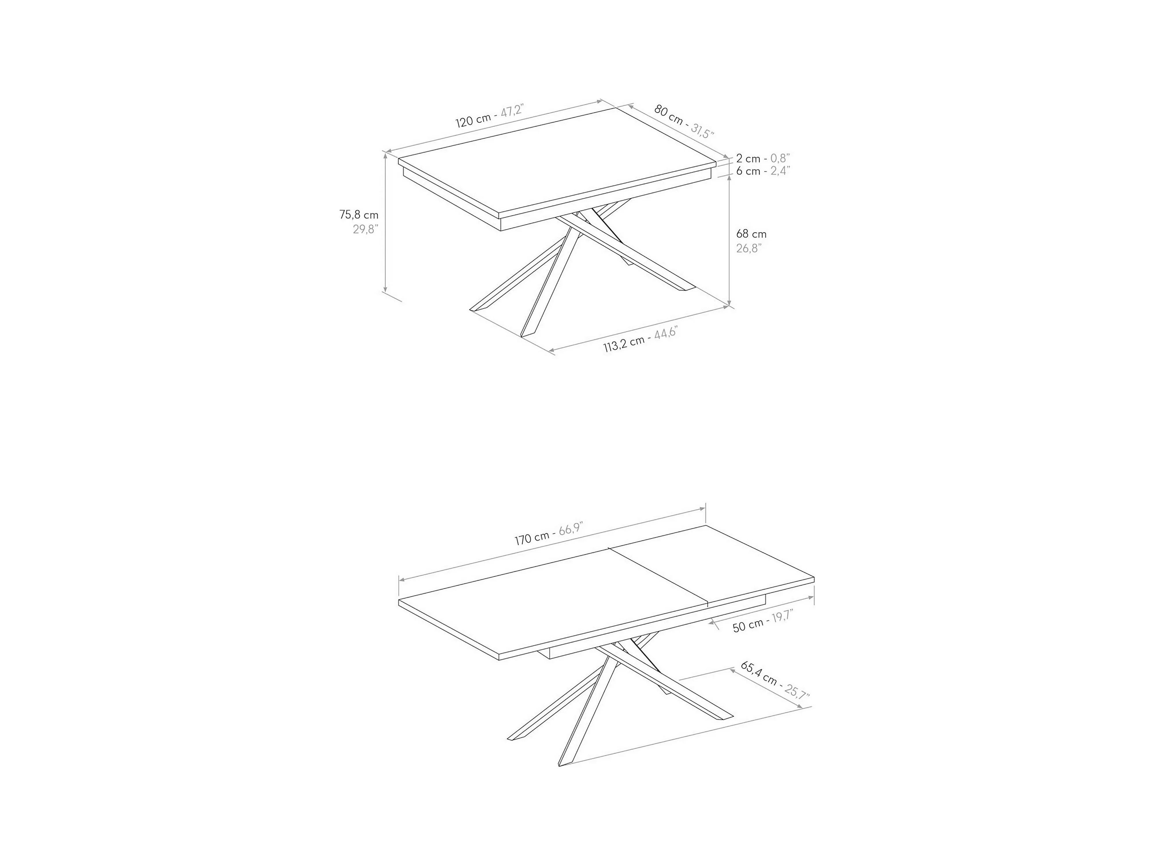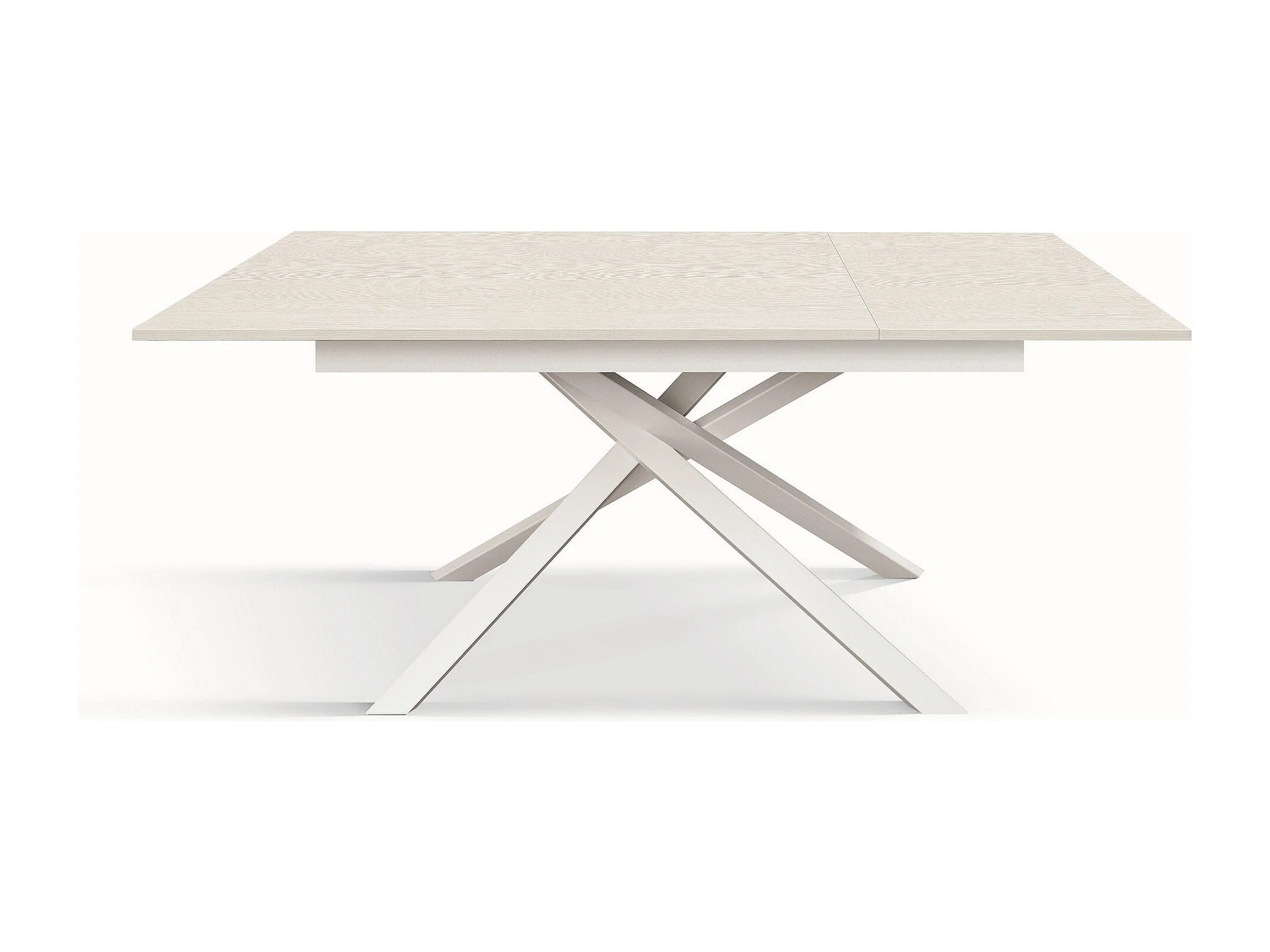 Table en bois, frêne blanc, base blanche, ext.120x80-170x80cm - VOLPAIA