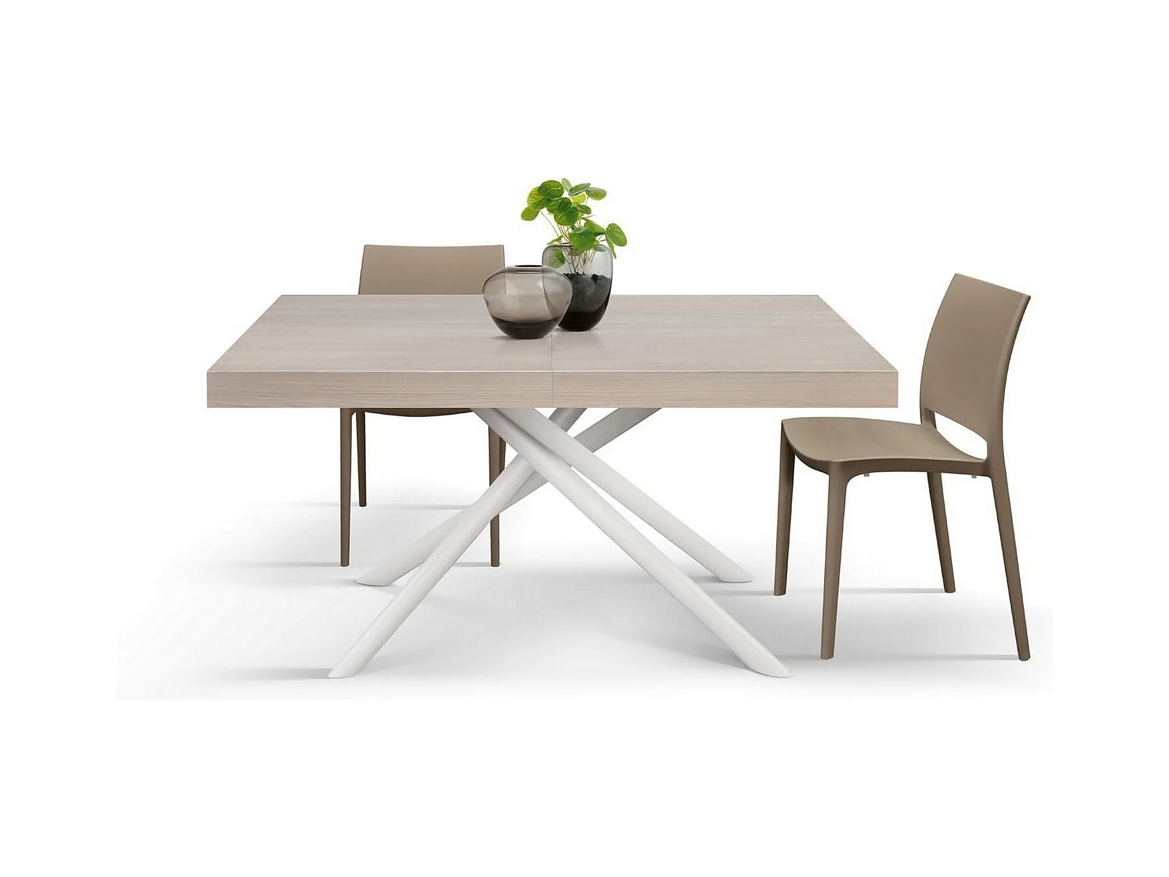 Table en bois, orme perlé, base blanche, ext.160x90-240x90cm - CARRARA