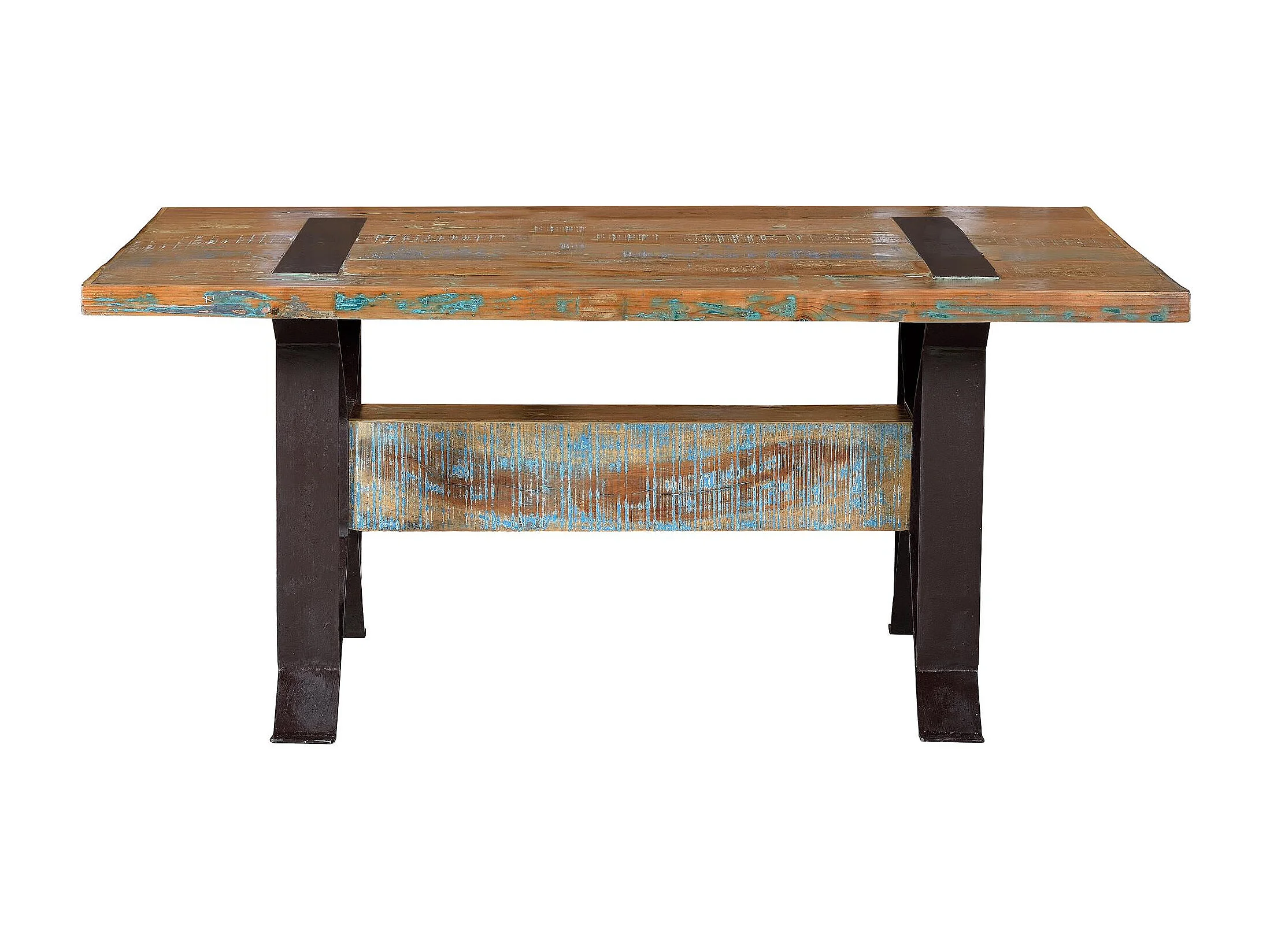 Table exclusive en bois recyclé et piètement en métal